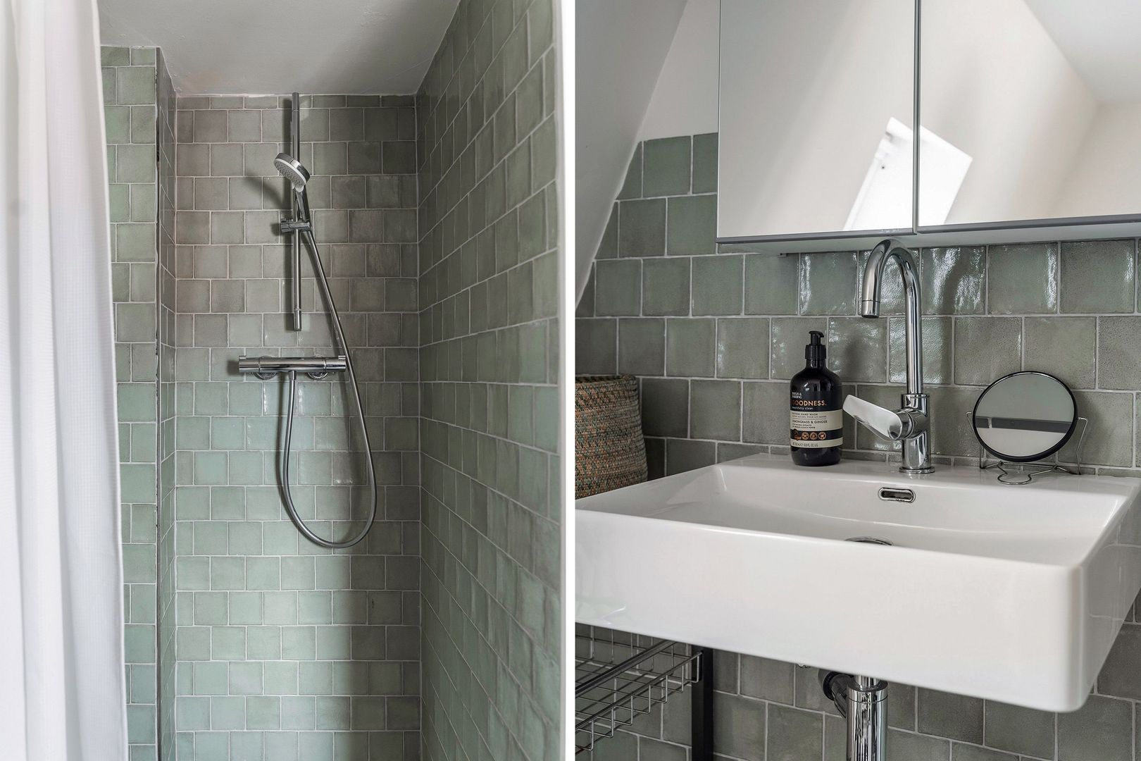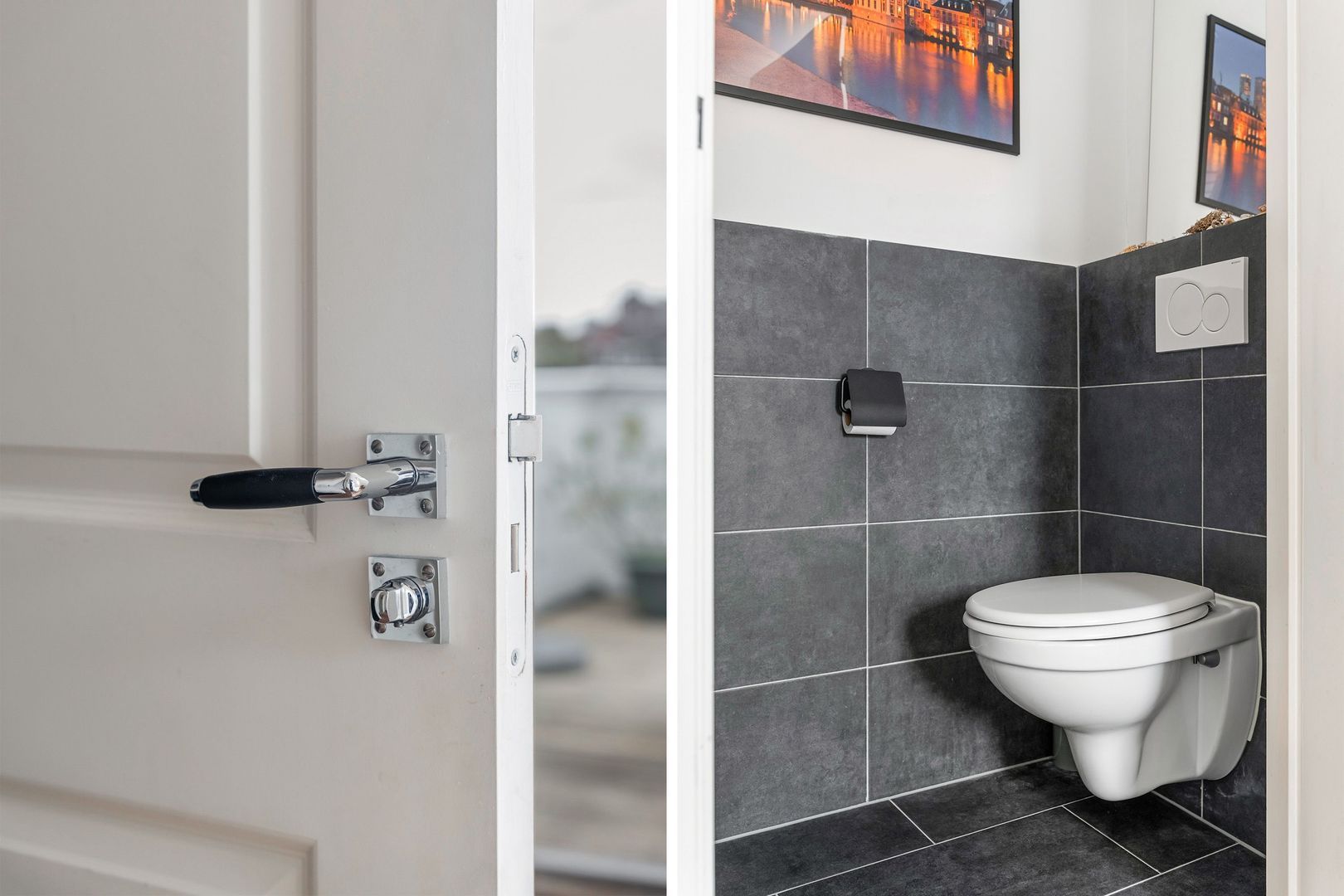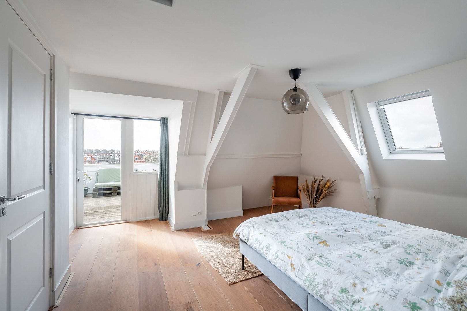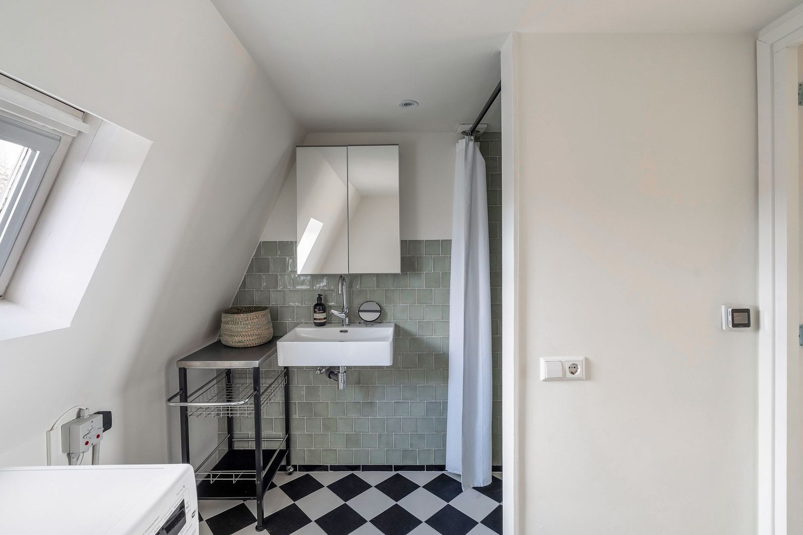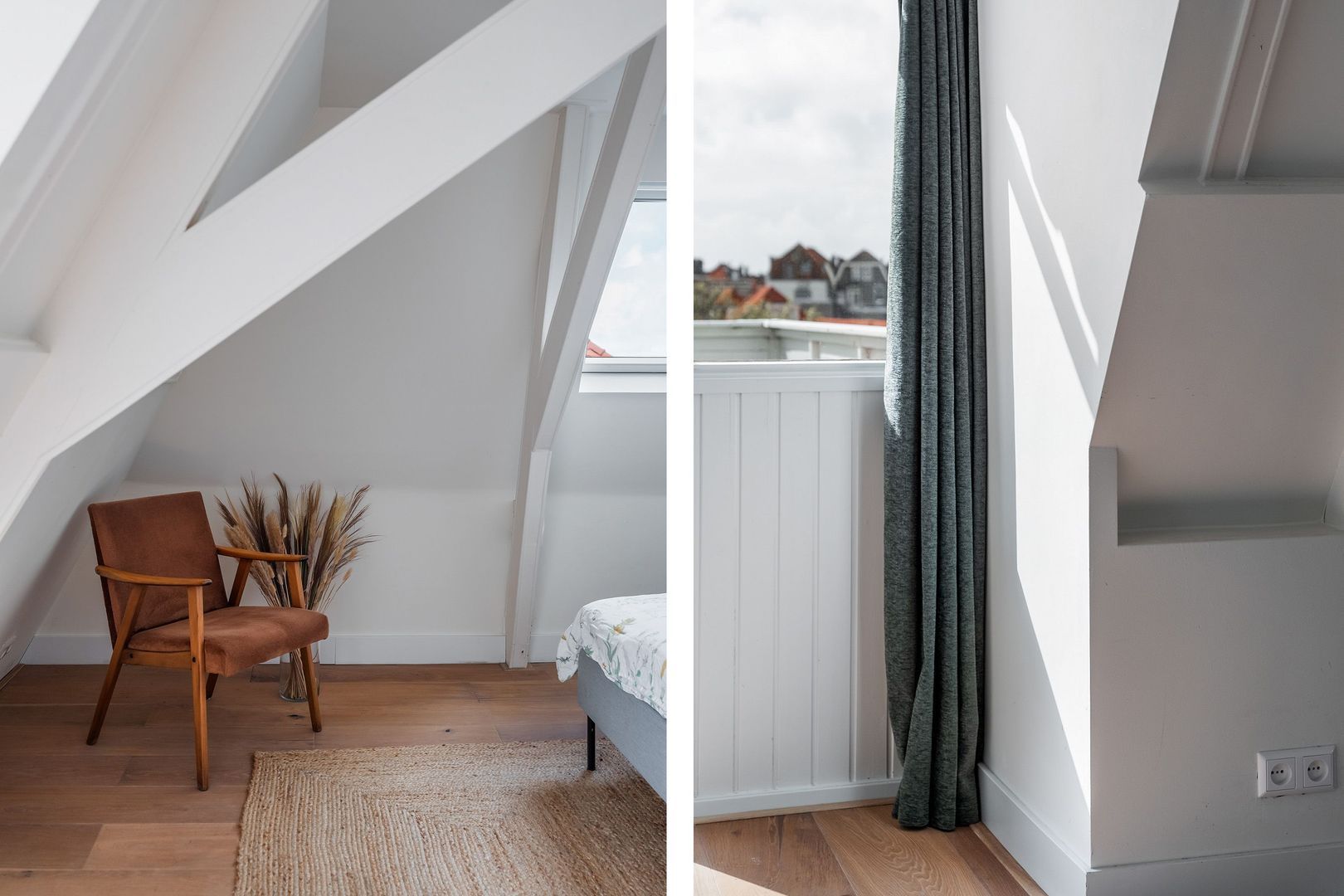 Overloop met toegang tot de tweede slaapkamer aan de achterzijde, voorzien van dakraam, vaste kast en toegang tot het zonnige terras; de derde slaapkamer ligt aan de voorzijde; tweede badkamer met wastafelmeubel, douche en wasmachineaansluiting; daarnaast is er een separaat tweede toilet.