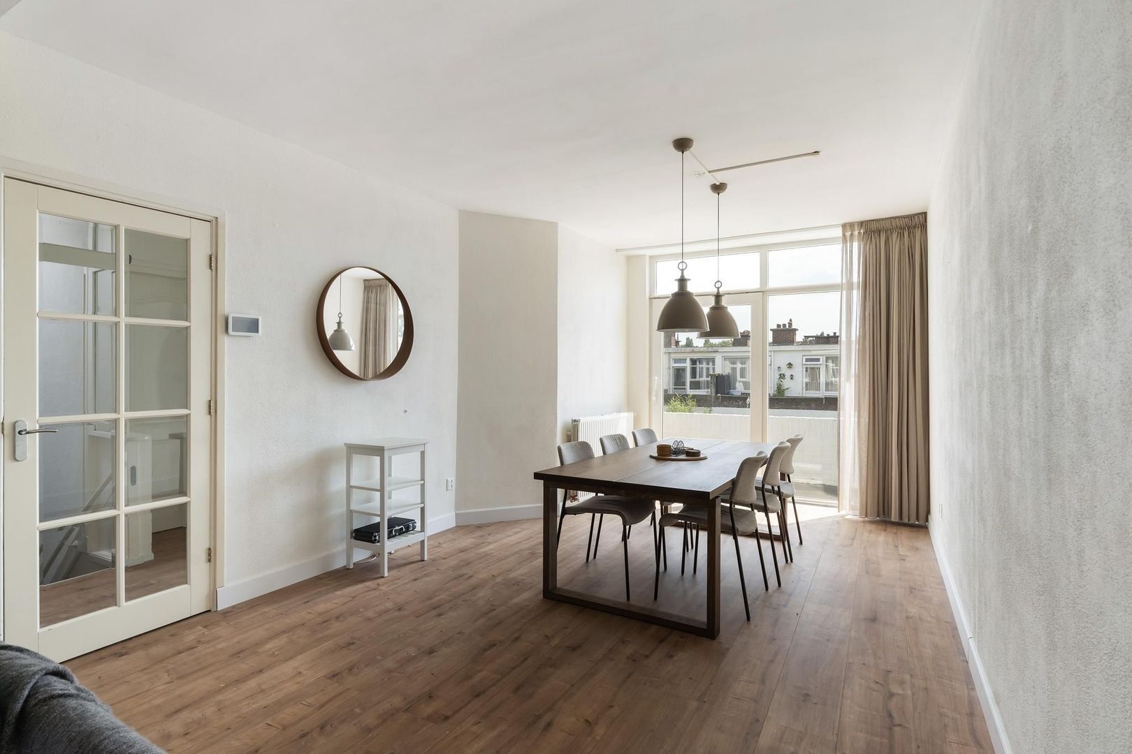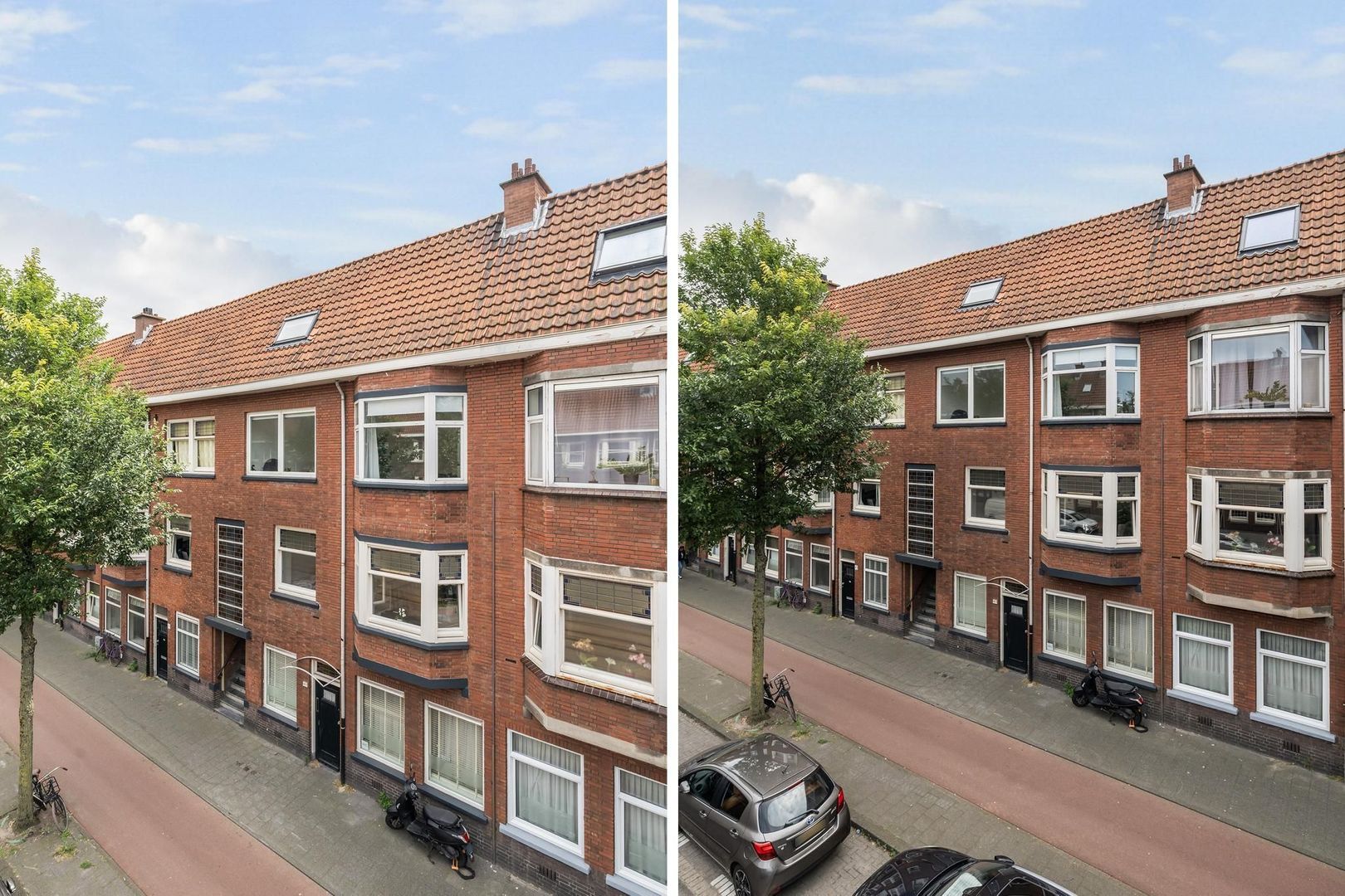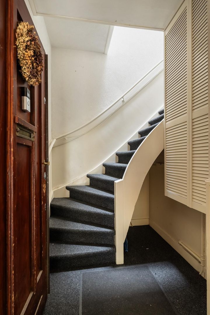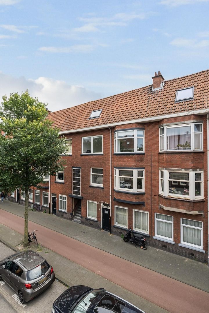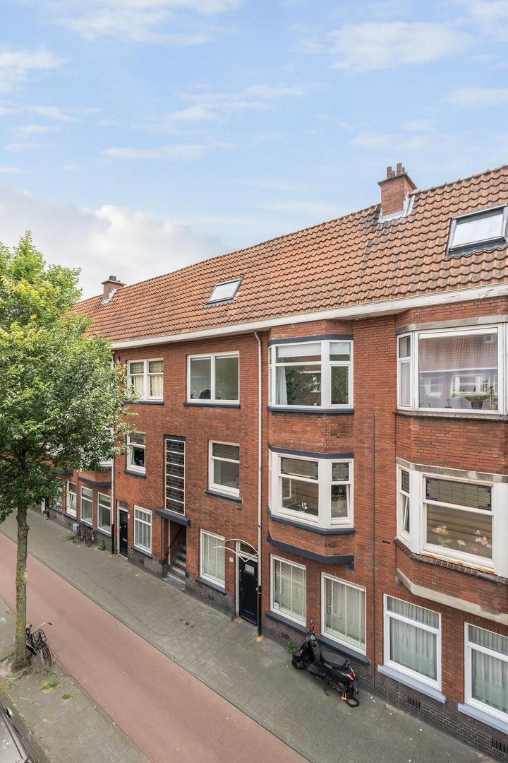 Laakkwartier. Goed bemeten en degelijk verbouwd dubbel bovenhuis (ca 119m2) gelegen op de 2e etage met zolderverdieping, achterbalkon en riant groot dakterras, grotendeels voorzien van kozijnen met dubbele beglazing.