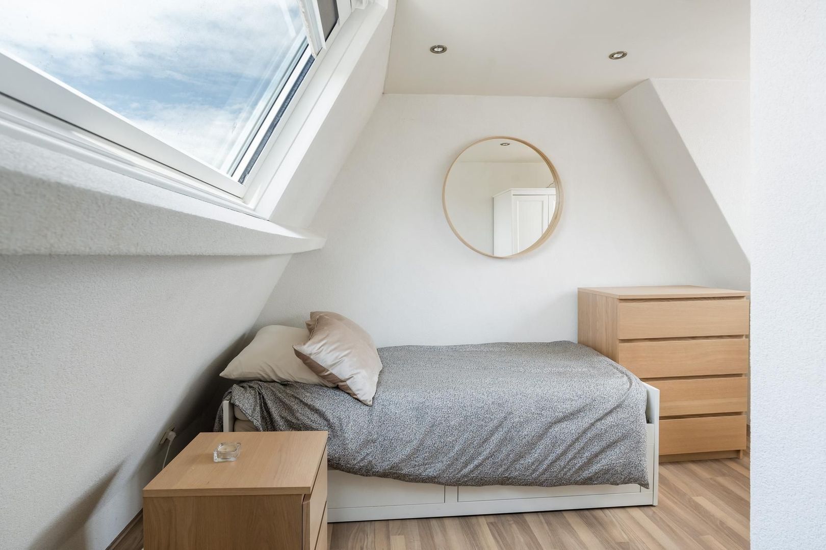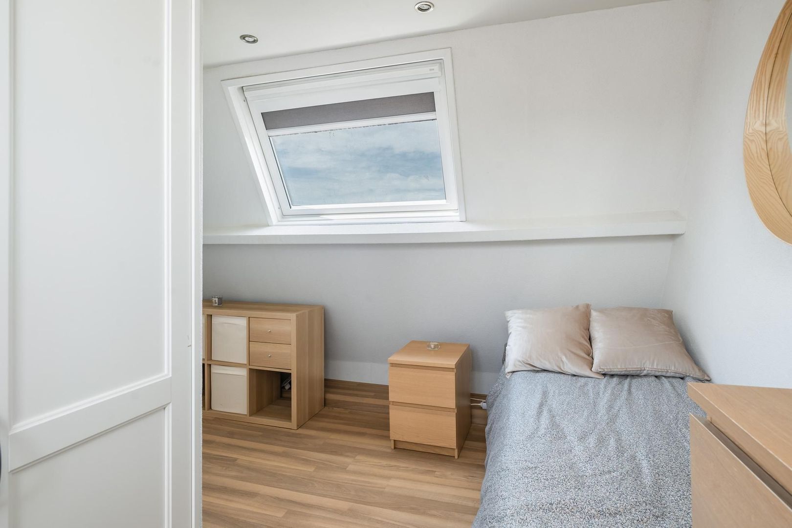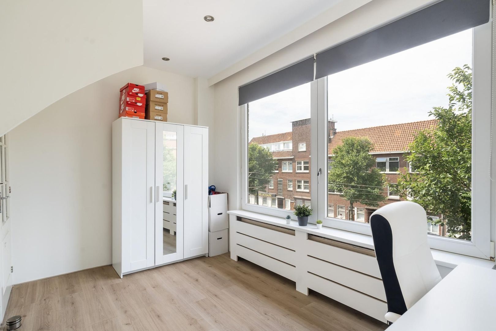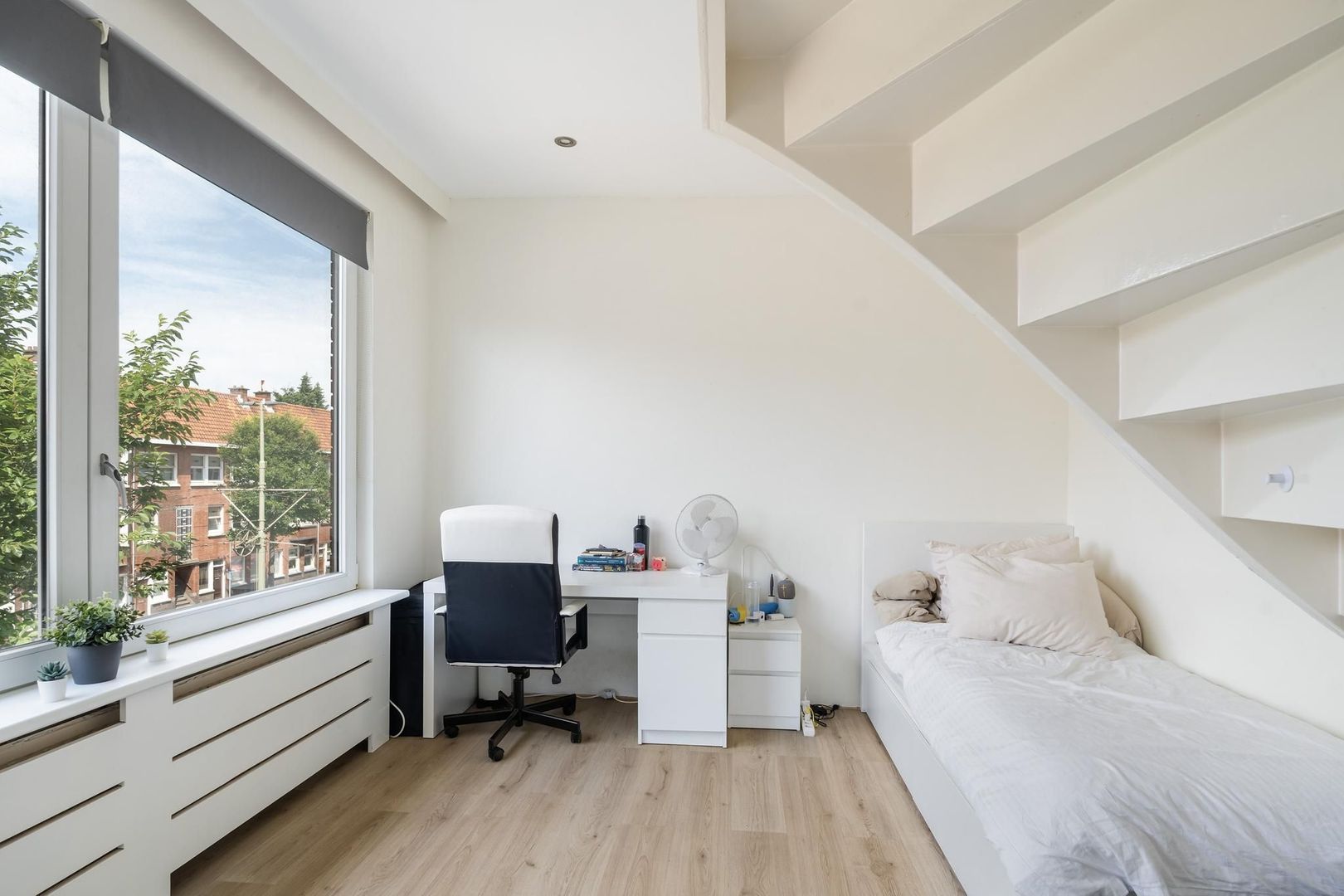 Laakkwartier. Goed bemeten en degelijk verbouwd dubbel bovenhuis (ca 119m2) gelegen op de 2e etage met zolderverdieping, achterbalkon en riant groot dakterras, grotendeels voorzien van kozijnen met dubbele beglazing.