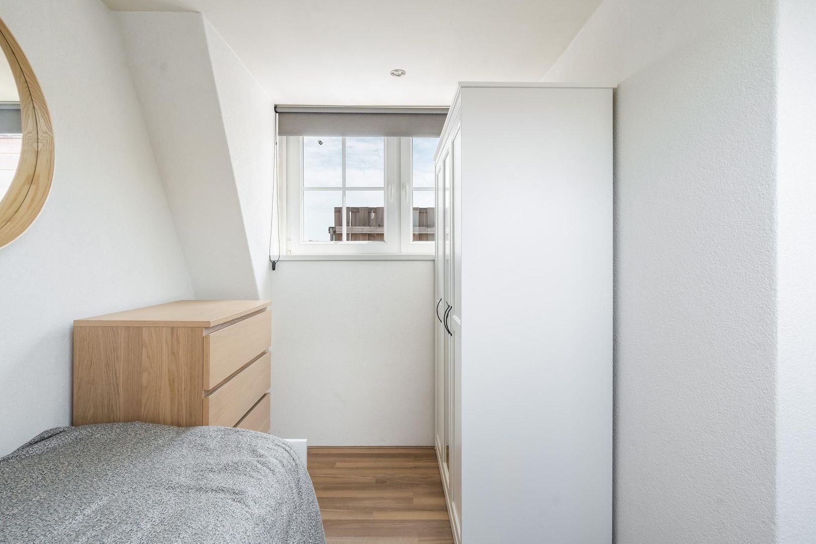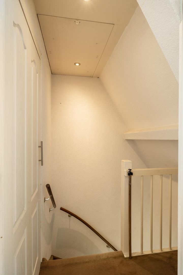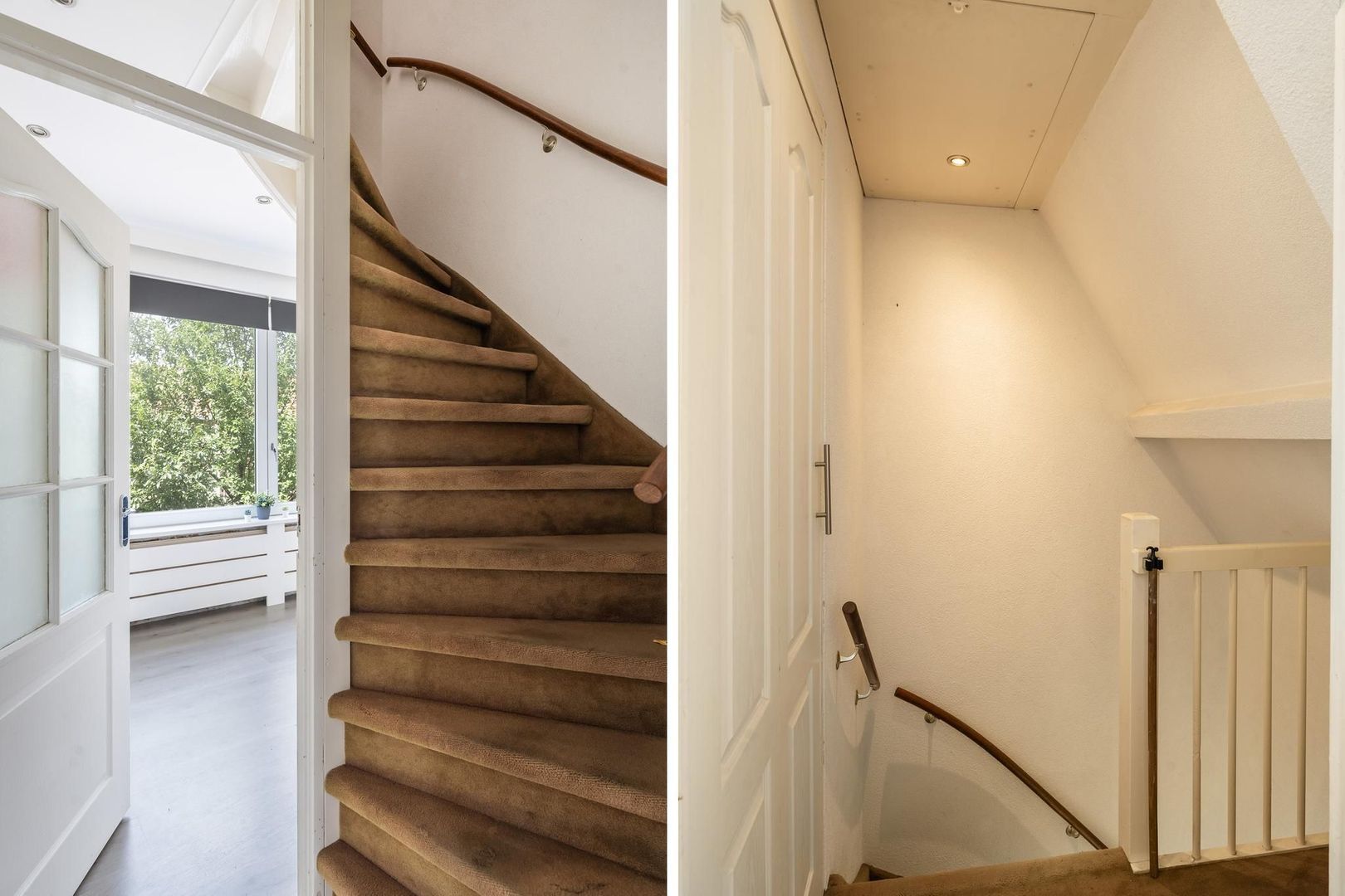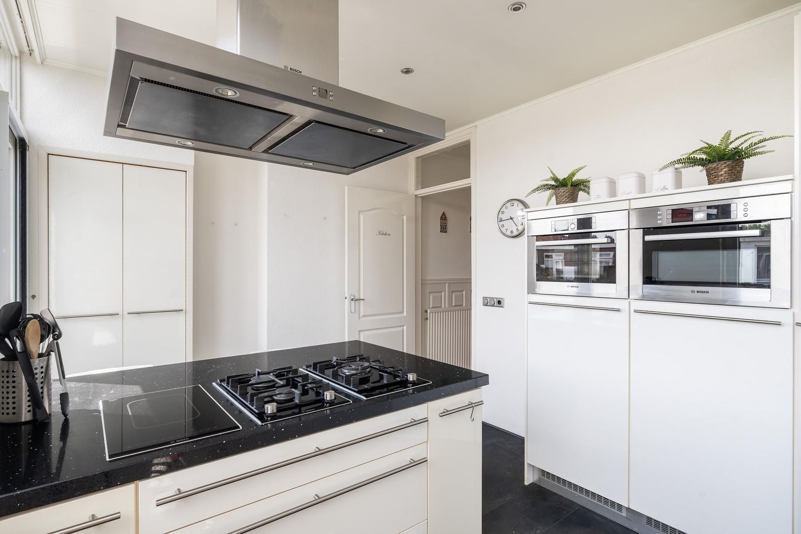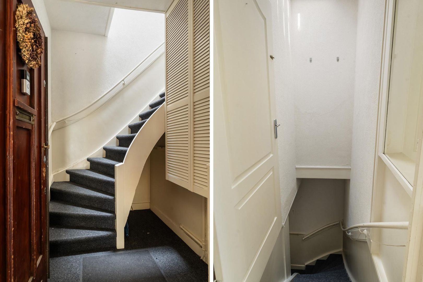 Entree op 1e etage via Haags portiek met bergruimte. Binnentrap naar 2e etage; overloop; grote berging met aansluiting voor wasmachine/droger; toilet met fonteintje; riante doorgebroken woonkamer ca. 10.91x3.51/3.34 met open haard partij, erker aan de voorzijde en schuifpui naar het balkon; grote luxe en moderne woonkeuken met blok in L-vorm opstelling en kookeiland met ingebouwde Bosch apparatuur zoals 2 gaskookplaten en een elektrische plaat, vlakscherm afzuigkap, oven, combi-oven/magnetron, koelkast, vriezer, vaatwasser, opstelplaats cv ketel en toegang tot het balkon over de gehele breedte van de woning; nette degelijke badkamer met regen- en handdouche, wastafel en handdoekradiator; grote slaapkamer aan de voorzijde ca. 4.12x3.47 met trap naar zolderetage: overloop; 2 slaapkamers resp. ca. 3.89/176x368/182 aan de voorzijde met dakraam en 1 van ca. 5.50x3.36 met kastenwand en schuifpui naar groot dakterras op het Zuiden georiënteerd ca. 7.03x3.69 met berging.