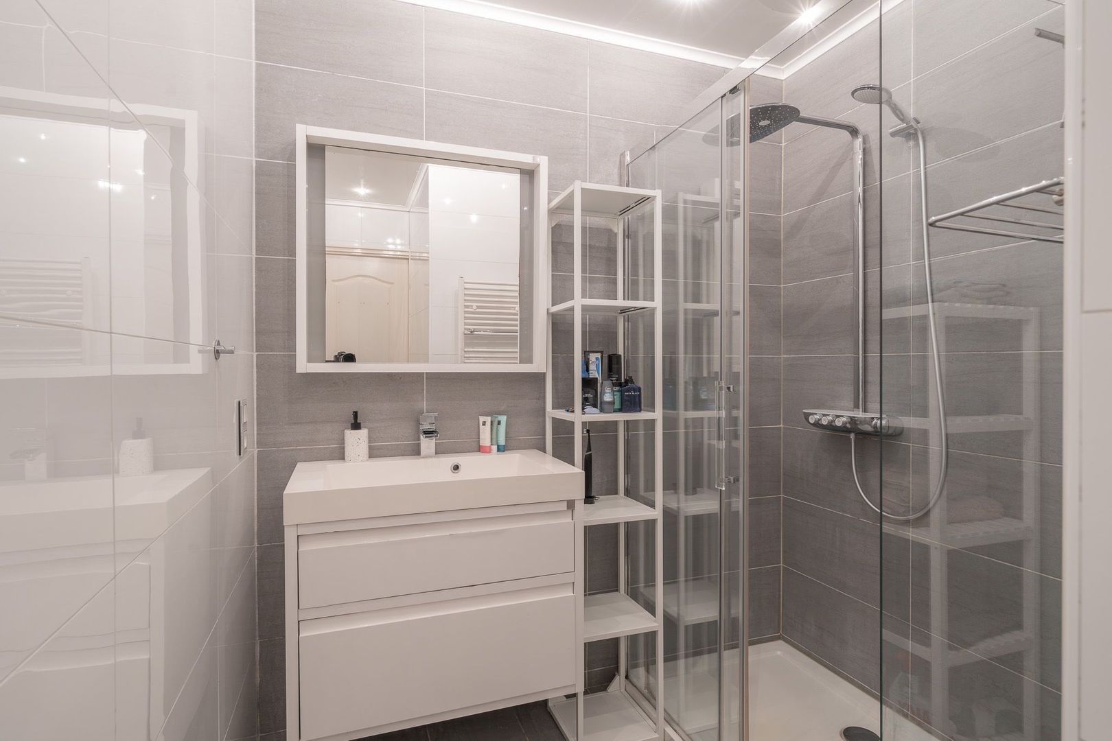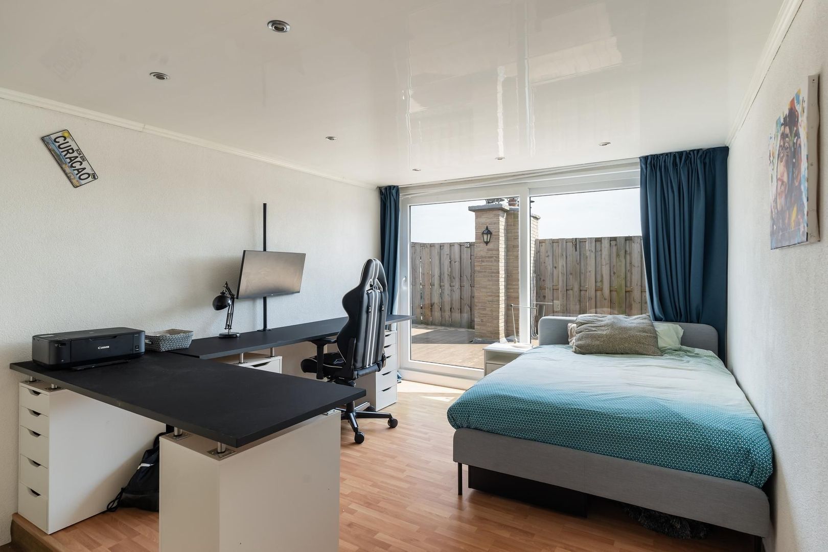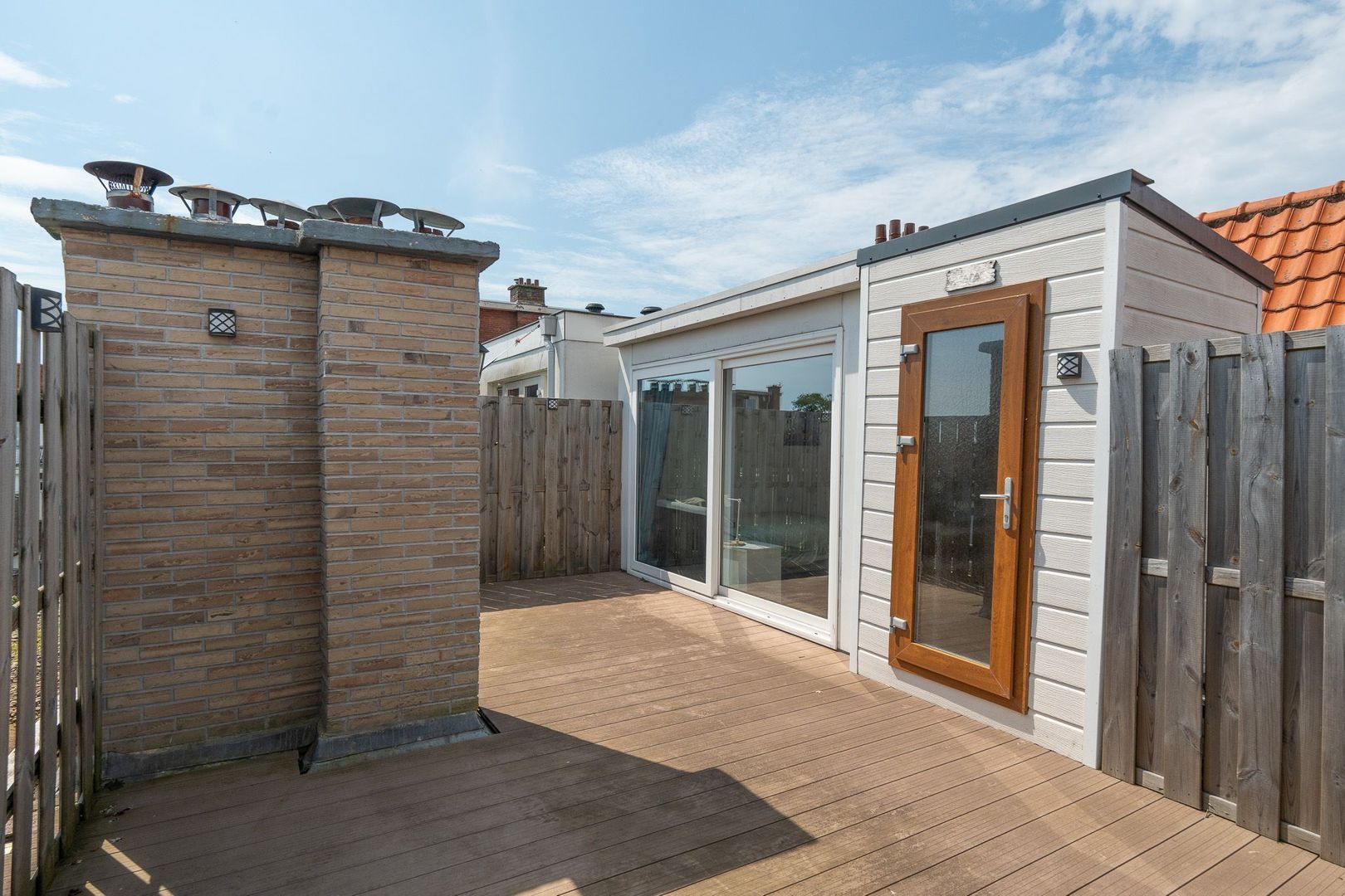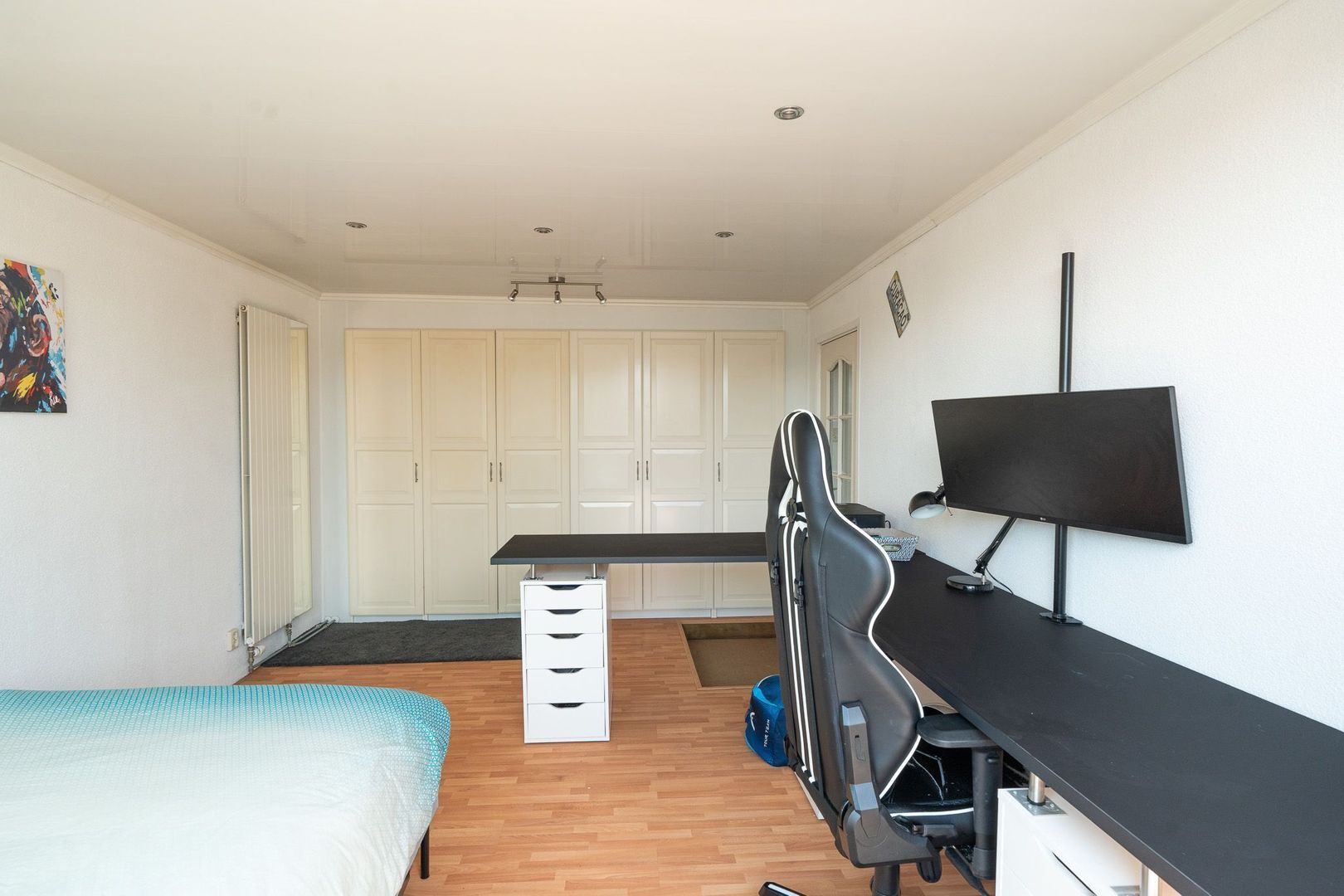 Entree op 1e etage via Haags portiek met bergruimte. Binnentrap naar 2e etage; overloop; grote berging met aansluiting voor wasmachine/droger; toilet met fonteintje; riante doorgebroken woonkamer ca. 10.91x3.51/3.34 met open haard partij, erker aan de voorzijde en schuifpui naar het balkon; grote luxe en moderne woonkeuken met blok in L-vorm opstelling en kookeiland met ingebouwde Bosch apparatuur zoals 2 gaskookplaten en een elektrische plaat, vlakscherm afzuigkap, oven, combi-oven/magnetron, koelkast, vriezer, vaatwasser, opstelplaats cv ketel en toegang tot het balkon over de gehele breedte van de woning; nette degelijke badkamer met regen- en handdouche, wastafel en handdoekradiator; grote slaapkamer aan de voorzijde ca. 4.12x3.47 met trap naar zolderetage: overloop; 2 slaapkamers resp. ca. 3.89/176x368/182 aan de voorzijde met dakraam en 1 van ca. 5.50x3.36 met kastenwand en schuifpui naar groot dakterras op het Zuiden georiënteerd ca. 7.03x3.69 met berging.