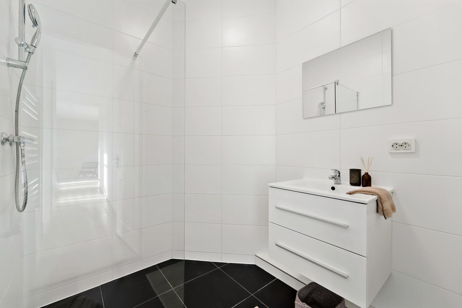 De entree van de woning geeft toegang aan de woonkamer. Waar vandaan ook de slaapkamer bereikbaar. De riante hoofdslaapkamer is aan de achterzijde van het appartement en daarmee rustig gelegen. De moderne badkamer is ook aan de woonkamer gelegen en is voorzien van van fijn wastafelmeubel, handdoekradiator en inloopdouche. Ook is er een seperaat toilet aanwezig. En is er een opslagruimte voor CV-ketel en ook was-/droogcombinatie.