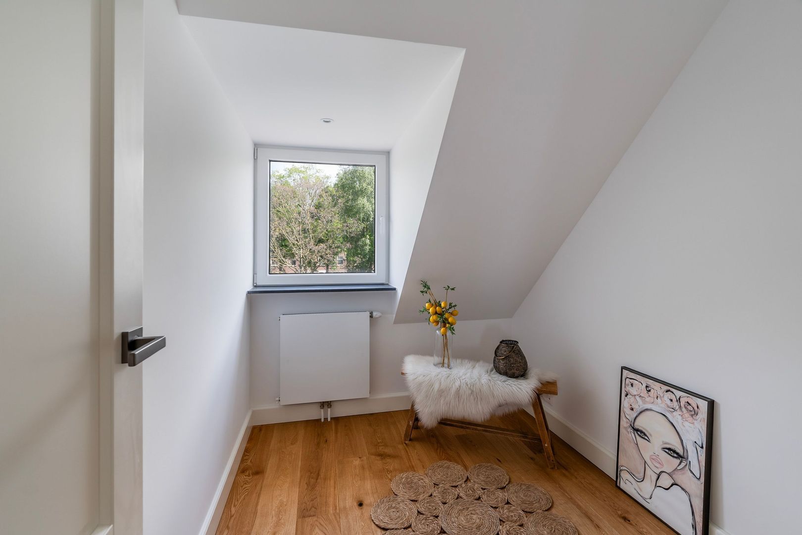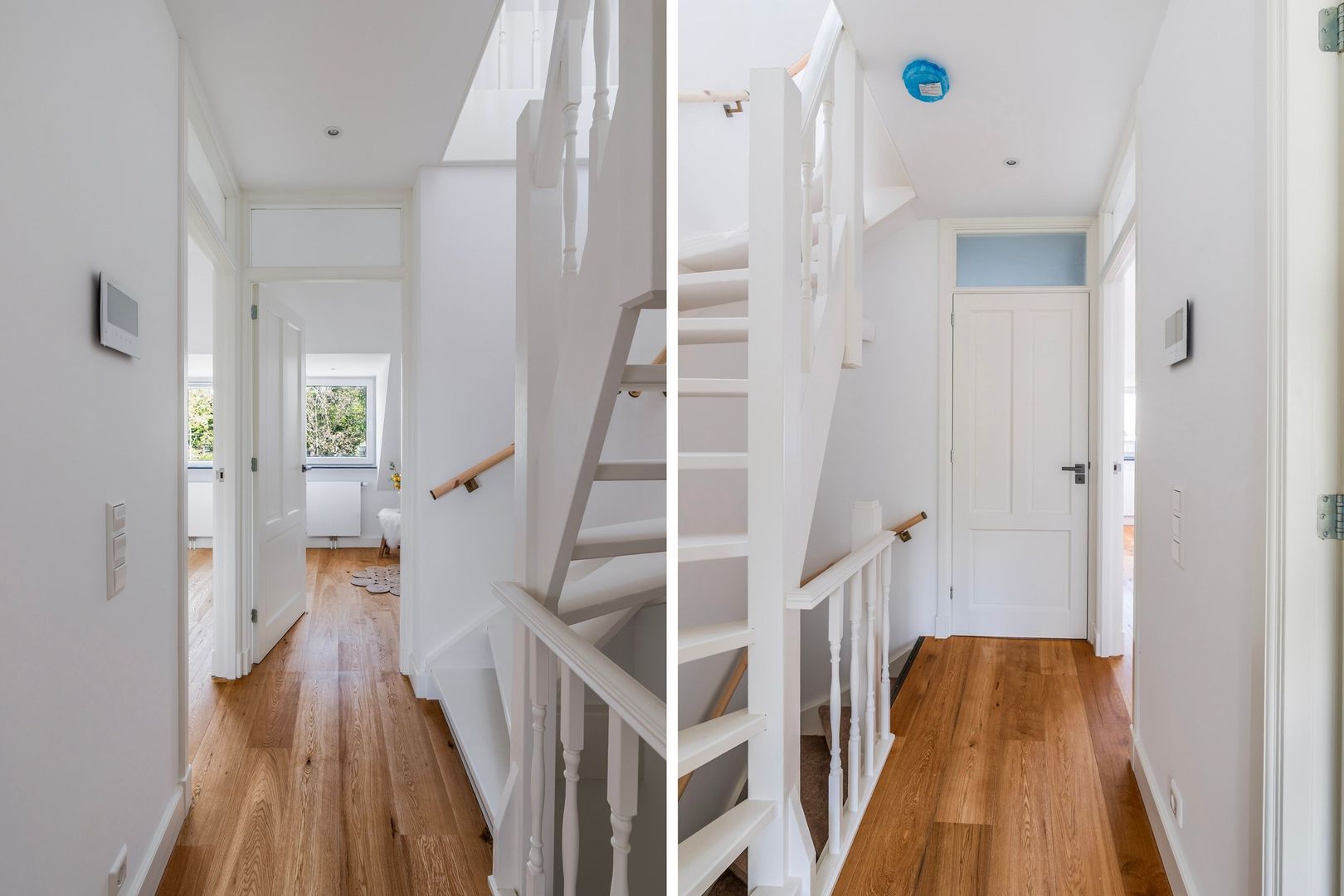 Trap vanaf de overloop naar de 2e etage; 1e slaapkamer aan de voorzijde met dakkapel; 2e slaapkamer aan de voorzijde met dakkapel; 3e slaapkamer aan de achterzijde met dakkapel; moderne badkamer met ligbad, inloopdouche, wastafelmeubel en toilet;