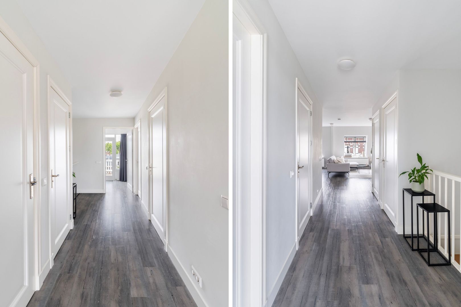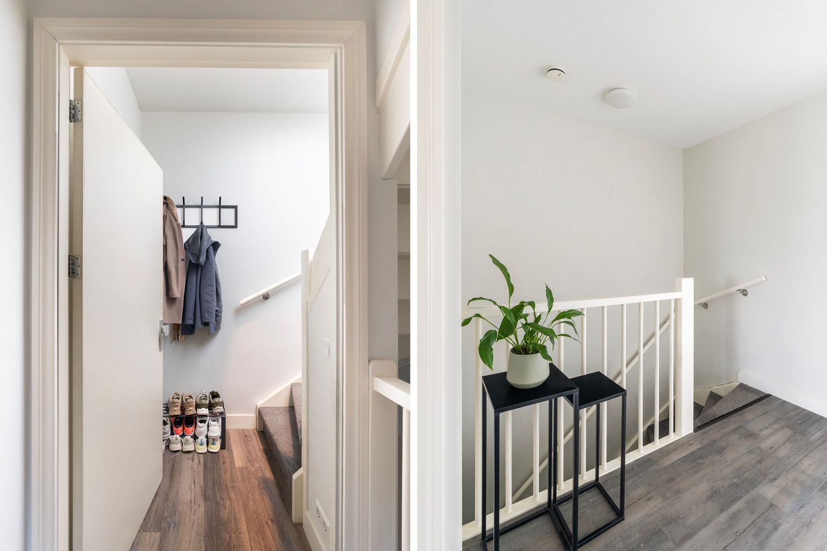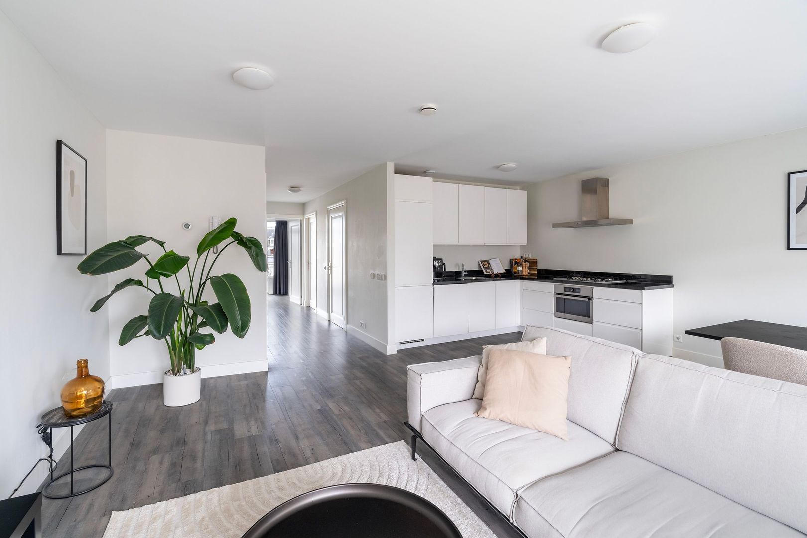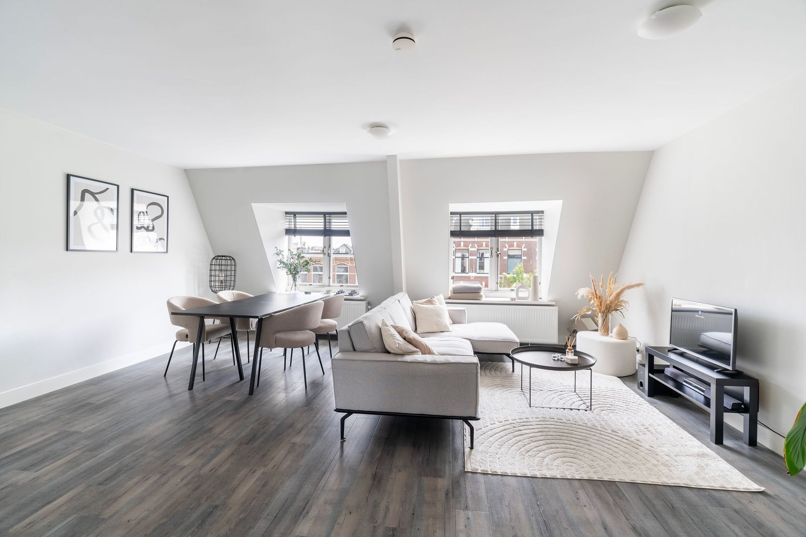 Afgesloten centrale entree met binnentrap naar de woningentree op de 2e etage; trap naar de overloop op de 3e etage; riante woonkamer met 2 dakkapellen aan de voorzijde; moderne open keuken in hoekopstelling welke o.a. is voorzien van een fraai stenen werkblad, 5-pits gasfornuis, afzuigkap, koelkast, vriezer, combimagnetron en vaatwasser; royale 1e slaapkamer aan de achterzijde met openslaande deuren naar het riante dakterras; 2e slaapkamer aan de achterzijde met openslaande deuren naar het dakterras; moderne badkamer met een inloopdouche, ligbad, wastafelmeubel, handdoekradiator en daklicht; modern separaat toilet (wandcloset) met fonteintje; kast met de wasmachine aansluiting en de cv-opstelling;