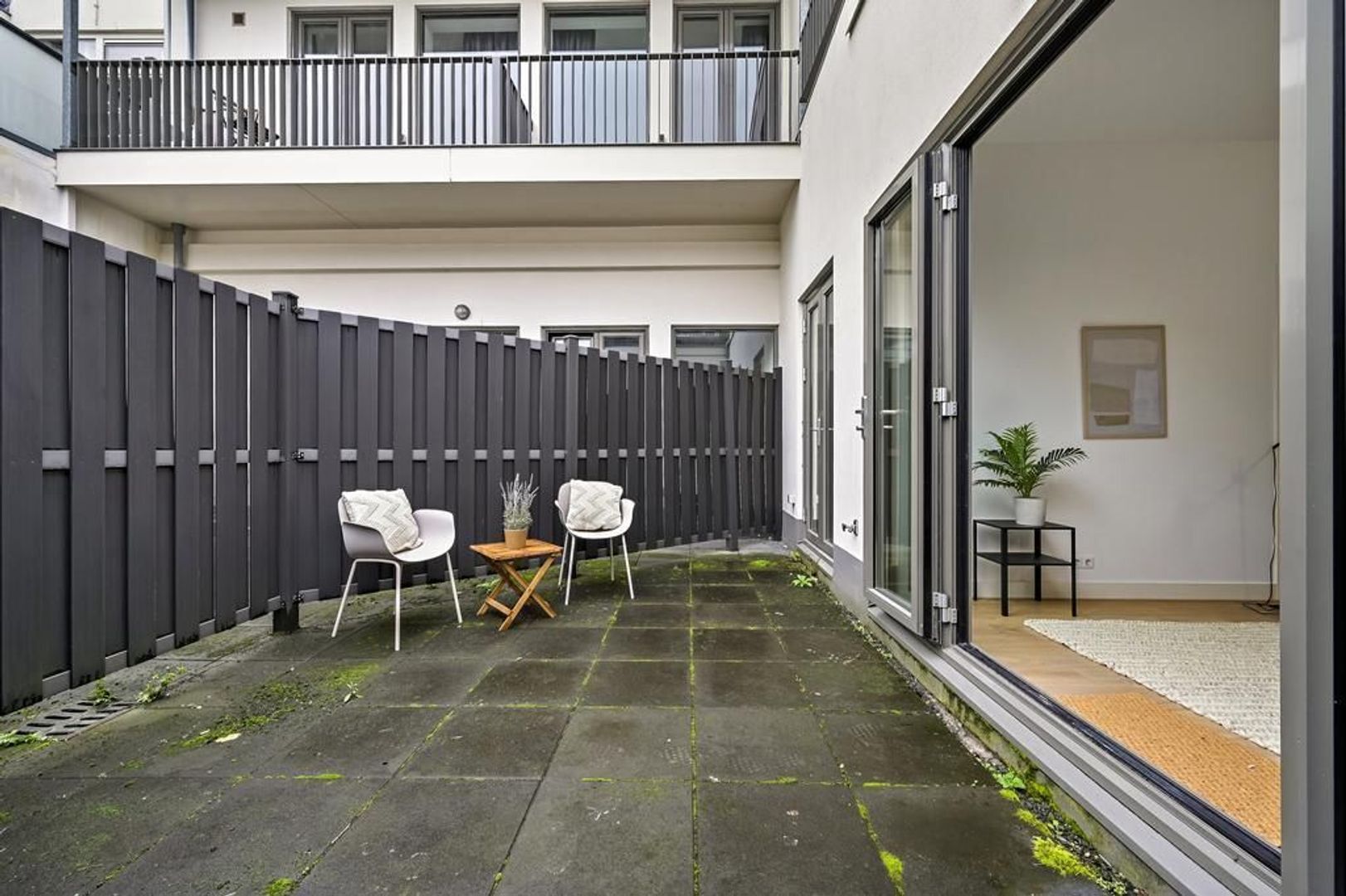 Gemeenschappelijke entree; entree appartement; berging met opstelplaats wasmachine/droger; zonnige woon-/eetkamer ca. 6.41/5.38x4.84 met luxe open keuken voorzien van een inductiekookplaat, afzuigkap, combi-oven, koelkast, vriezer en vaatwasser en via dubbele deuren toegang tot de ruime tuin; 1e ruime slaapkamer ca. 2.81x2.61; 2e slaapkamer met tevens met toegang tot de zonnige tuin, luxe badkamer ca.2.71x1.52 voorzien van inloopdouche, toilet en wastafelmeubel.