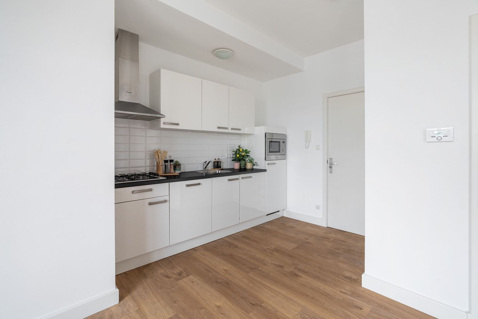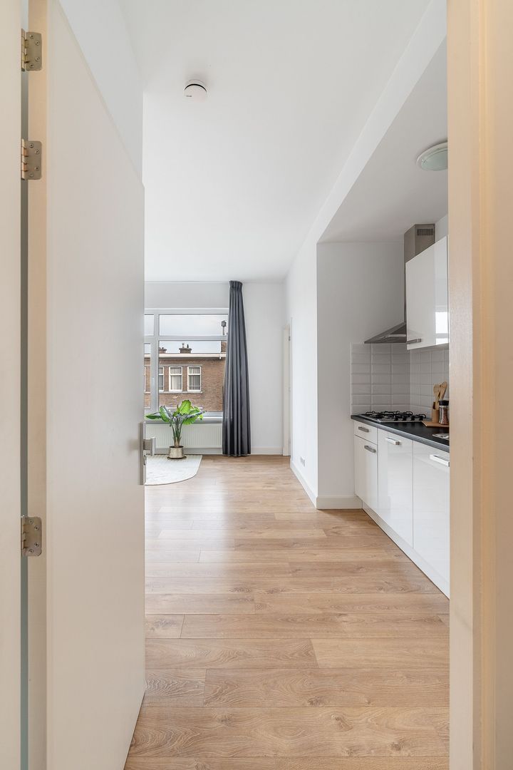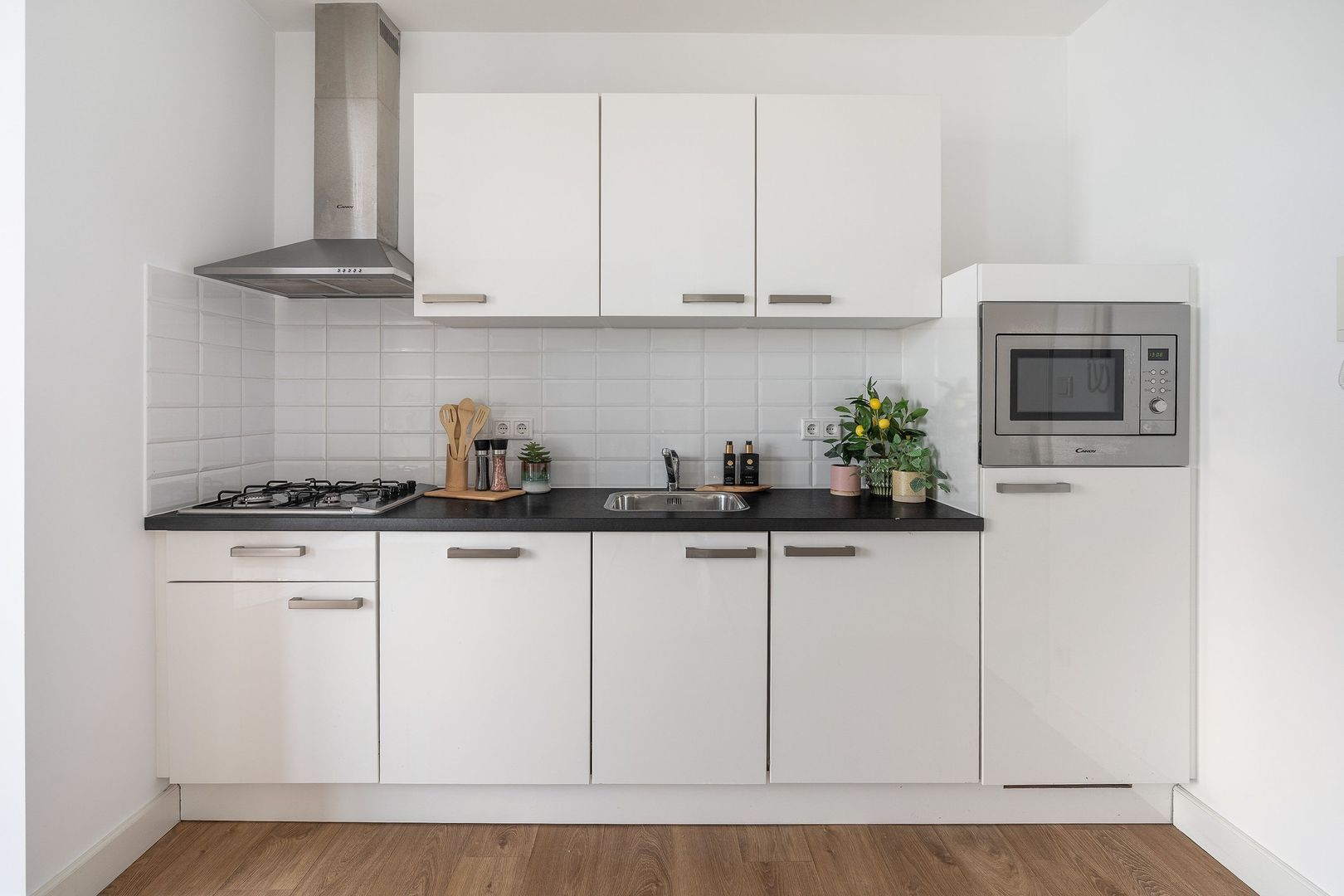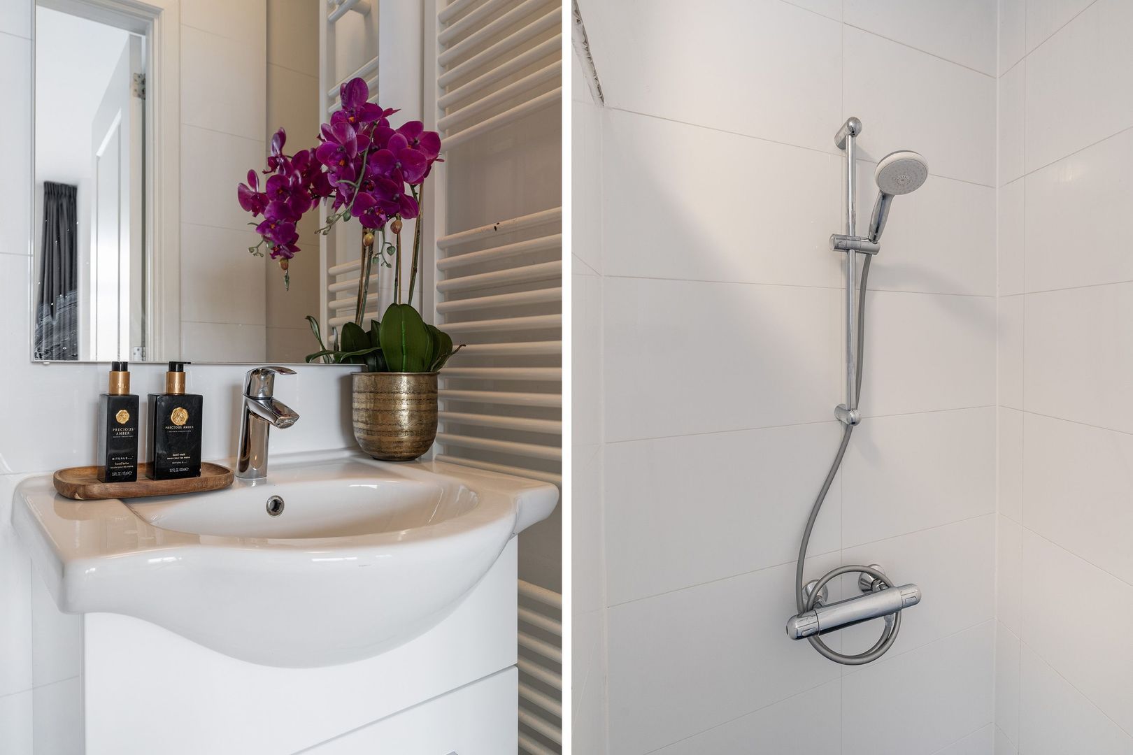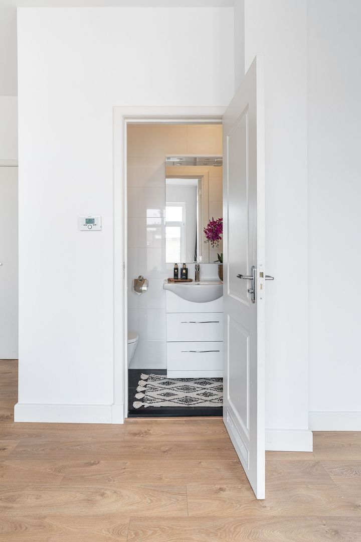 Via een gesloten portiek bereik je de woningentree op de etage; lichte en ruime woon-/eetkamer met grote raampartijen zorgen hier voor een prettige lichtinval en een open uitstraling, een moderne openkeuken met inductieplaat, inbouw apparatuur en afzuigkap; slaapkamer aan de achterzijde; moderne badkamer met inloopdouche, wastafelmeubel, toilet (wandcloset) handdoekradiator en wasmachine ruimte;
