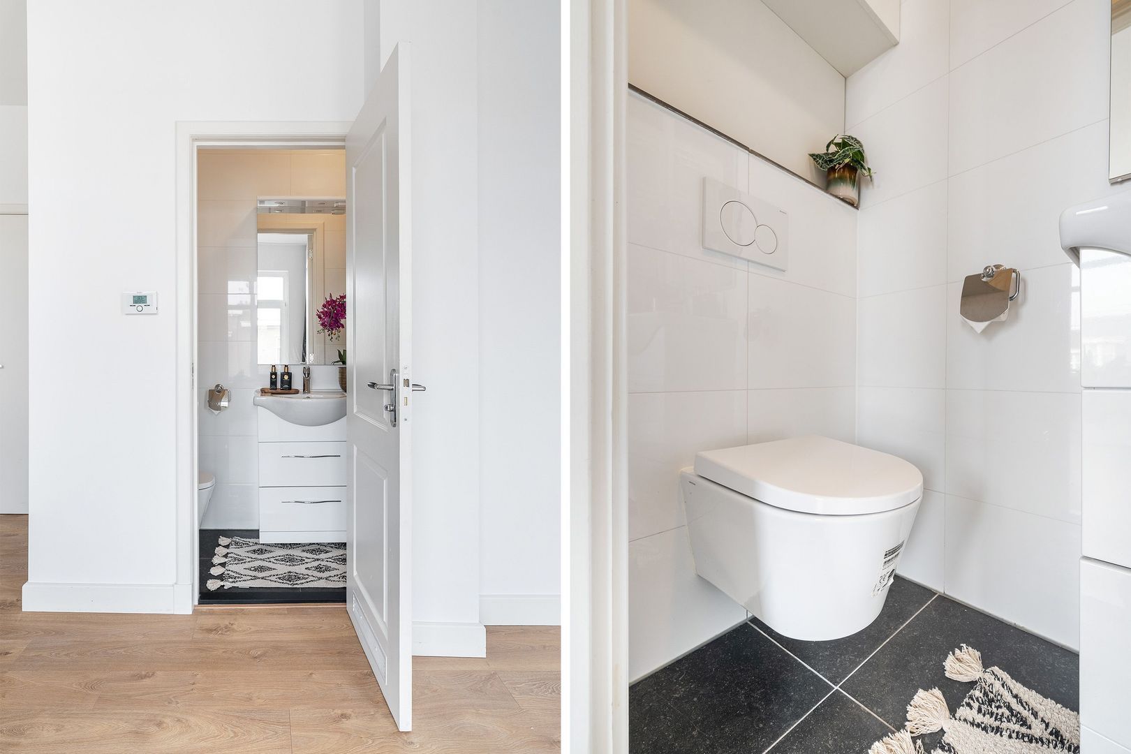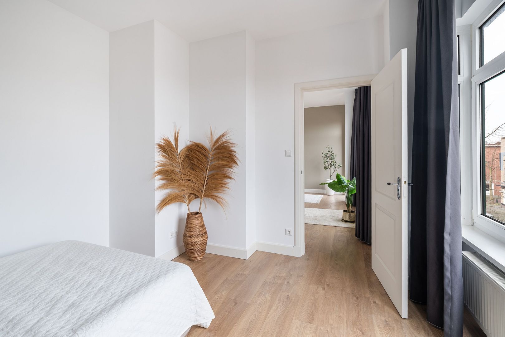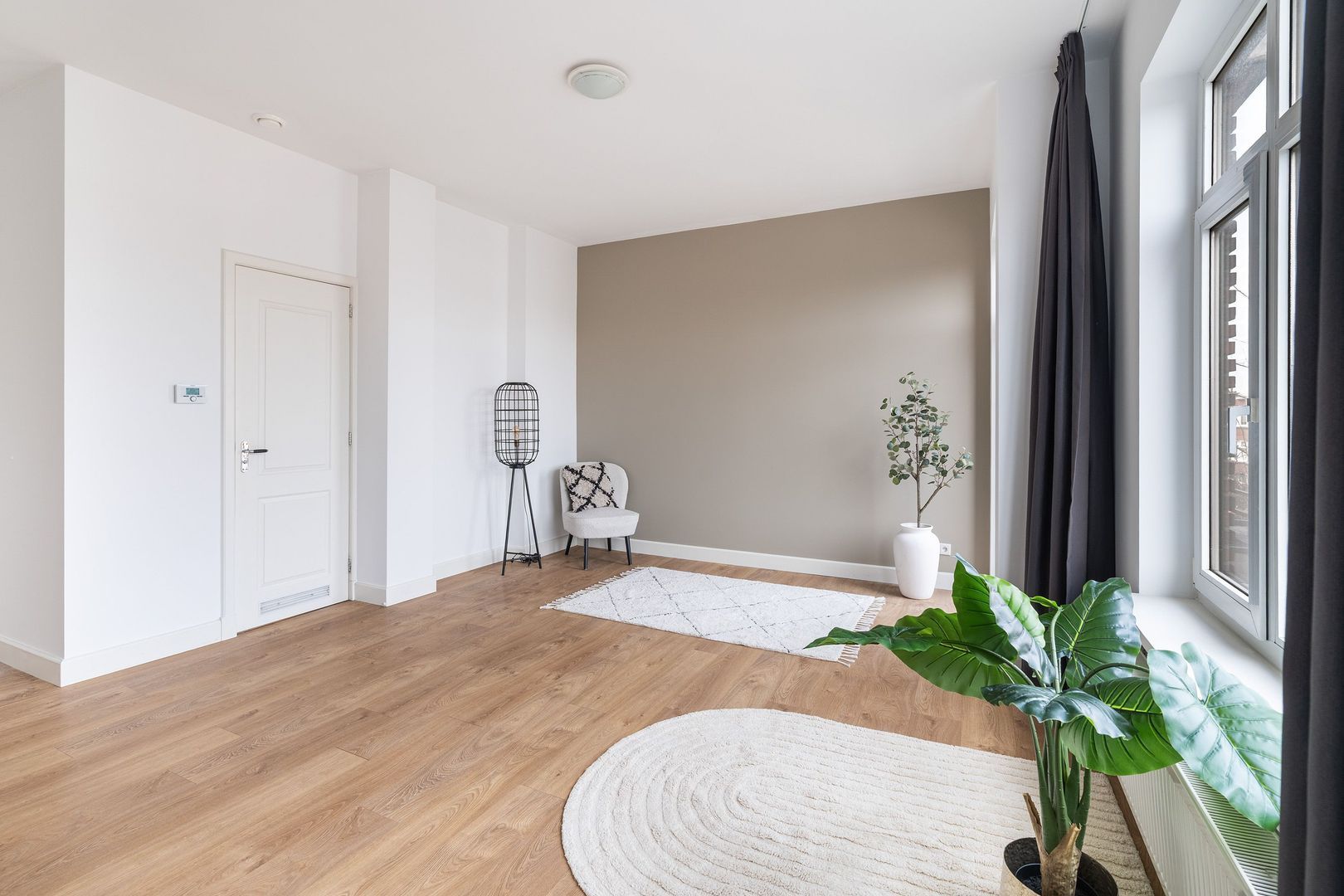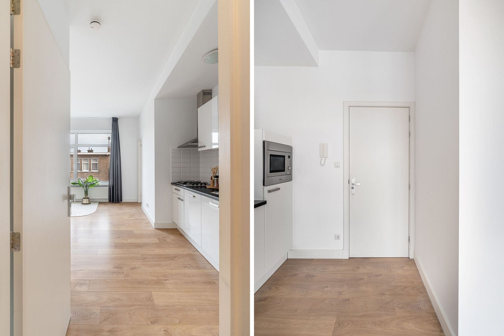 Via een gesloten portiek bereik je de woningentree op de etage; lichte en ruime woon-/eetkamer met grote raampartijen zorgen hier voor een prettige lichtinval en een open uitstraling, een moderne openkeuken met inductieplaat, inbouw apparatuur en afzuigkap; slaapkamer aan de achterzijde; moderne badkamer met inloopdouche, wastafelmeubel, toilet (wandcloset) handdoekradiator en wasmachine ruimte;