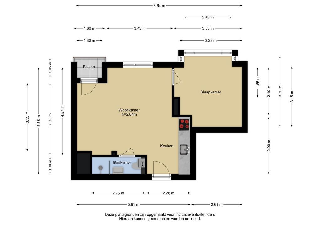 Deze informatie is door ons met de nodige zorgvuldigheid samengesteld. Onzerzijds wordt echter geen enkele aansprakelijkheid aanvaard voor enige onvolledigheid, onjuistheid of anderszins, dan wel de gevolgen daarvan. Alle opgegeven maten en oppervlakten zijn indicatief.