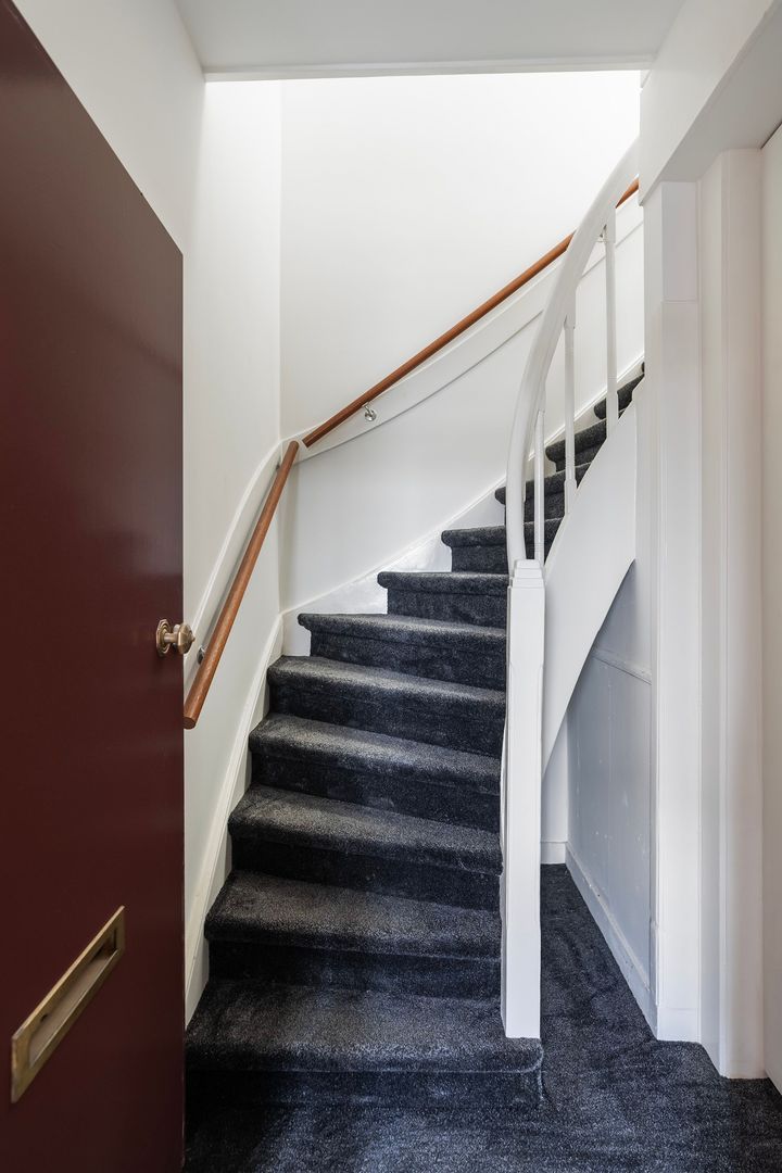 Woningentree via open portiek; hal met meterkast en binnentrap naar de overloop op de 2e etage; overloop met wasmachine en drogeraansluiting; woonkamer met een sfeervolle erker; moderne open keuken voorzien van een fraai stenen werkblad, inductiekookplaat, afzuigkap, oven, vaatwasser en een koel-vriescombinatie; 1e slaapkamer aan de voorzijde; 2e slaapkamer aan de achterzijde; 3e slaapkamer aan de achterzijde; studeerkamer met toegang tot het balkon; moderne badkamer met inloopdouche, wastafelmeubel en handdoekradiator; modern separaat toilet (wandcloset) met fonteintje;