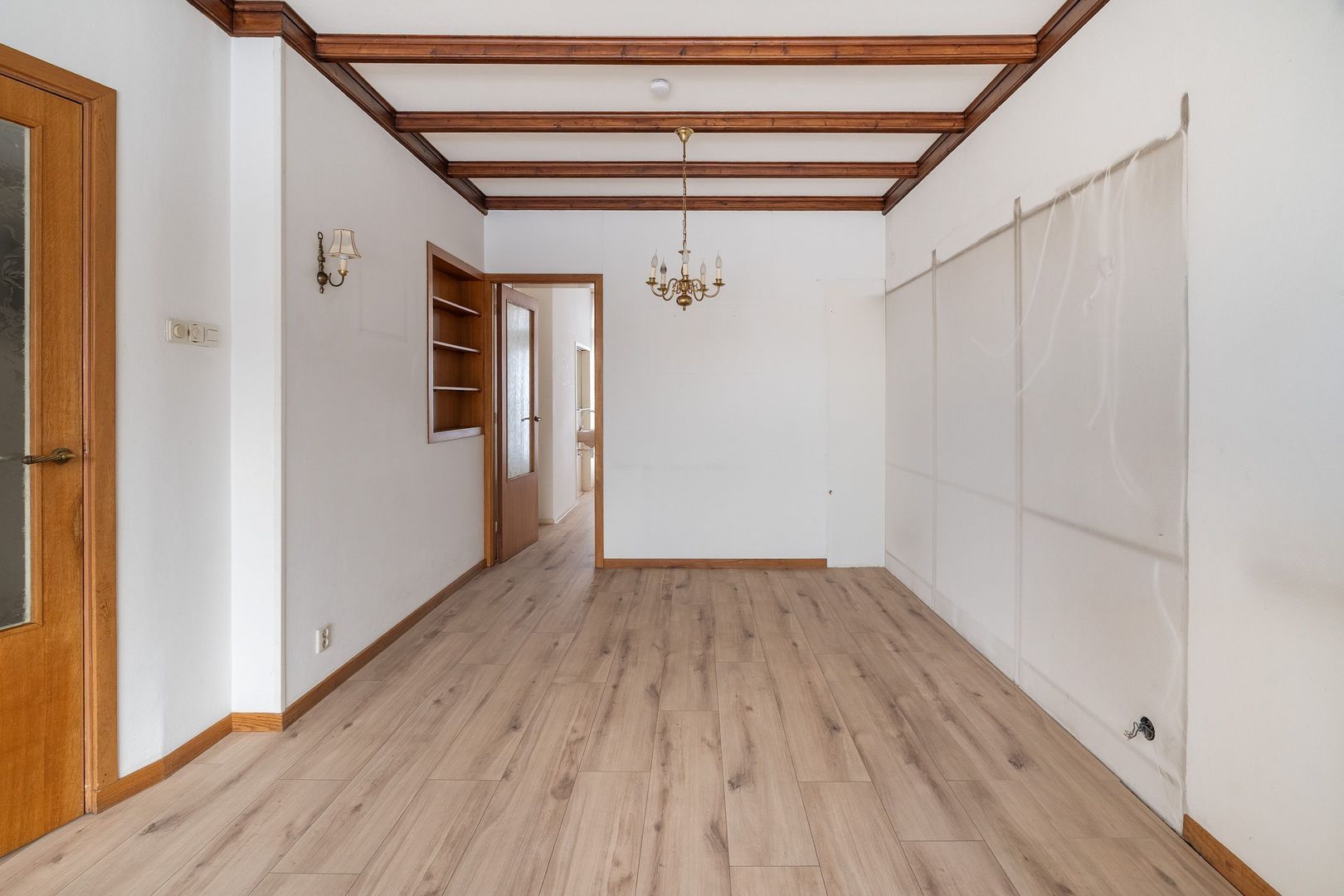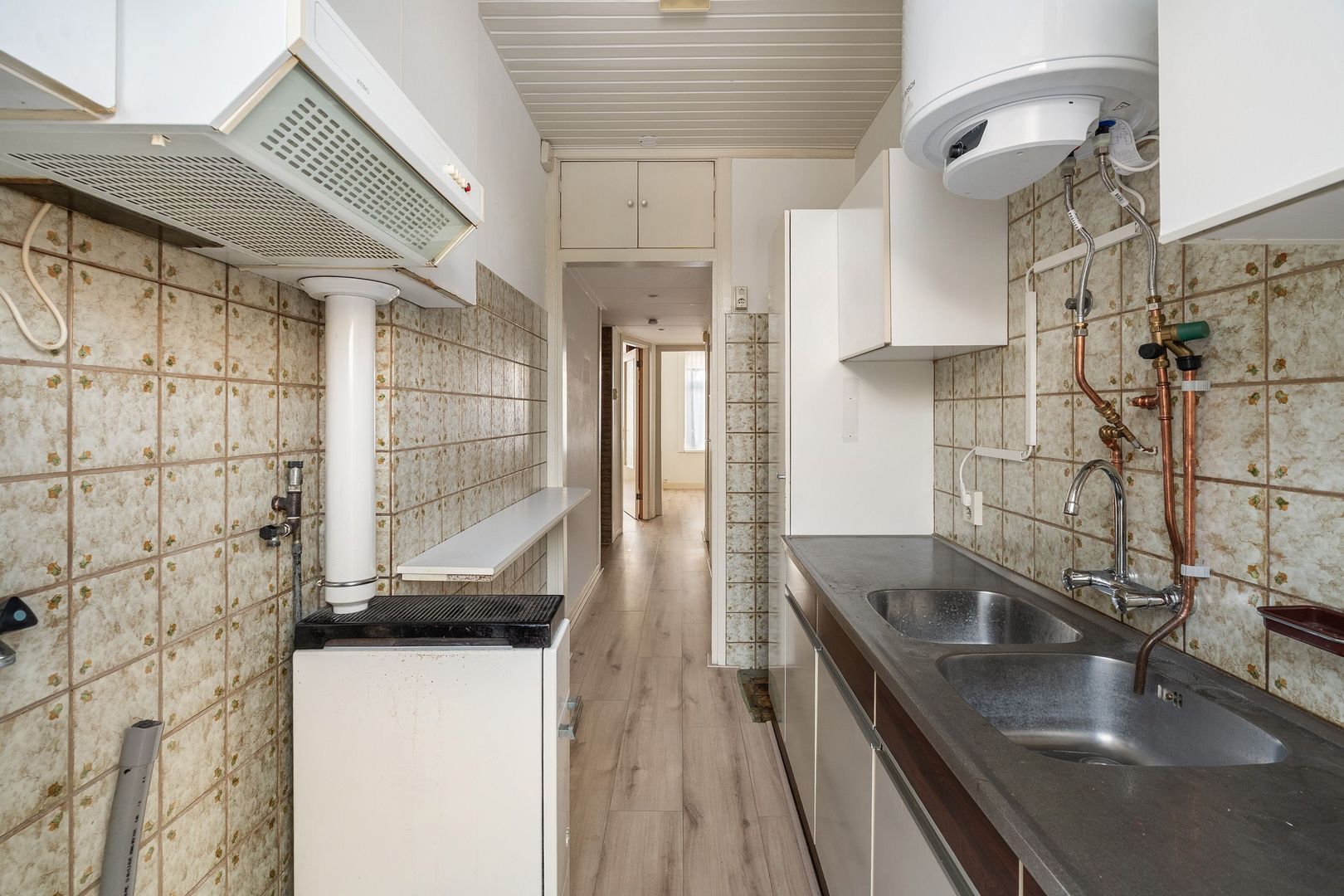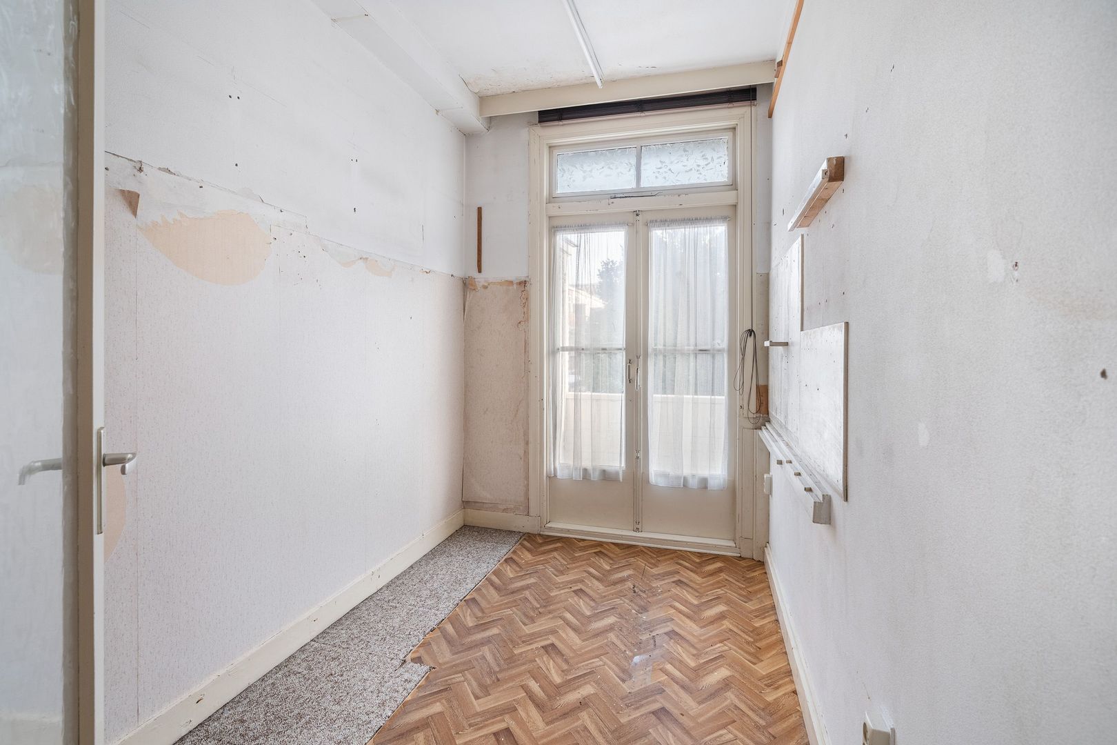 Woningentree via open portiek; gang met vaste kast en de meterkast; ruime woonkamer met sfeervolle erker; eenvoudige keuken voorzien van aanrecht met dubbele spoelbak, wasmachine aansluiting en toegang tot het balkon; 1e slaapkamer aan de voorzijde met een kastenwand; 2e slaapkamer aan de achterzijde met een kastenwand en openslaande deuren naar het balkon; 3e slaapkamer aan de achterzijde met openslaande deuren naar het balkon; eenvoudige doucheruimte; net separaat toilet;
