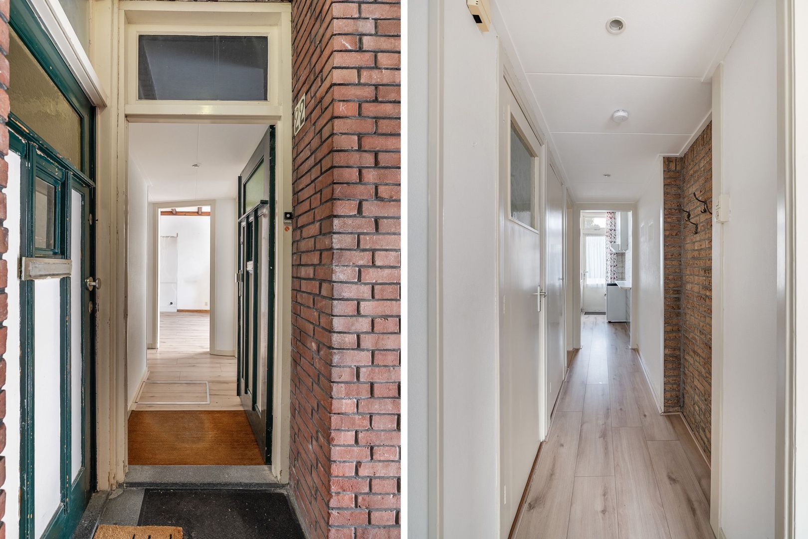 - Voorzijde voorzien van houten kozijnen met dubbel glas