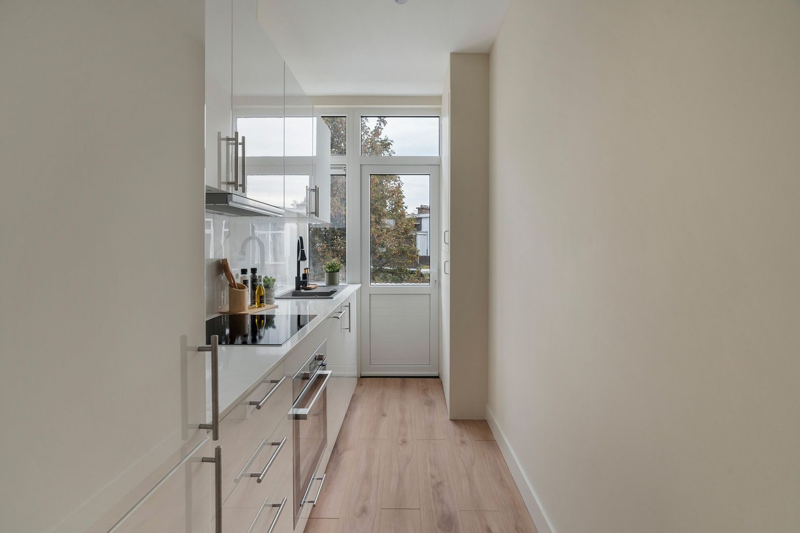 Rustenburg / Oostbroek. Inpandig compleet gerenoveerd 4 kamer hoek appartement (82m²) met achterbalkon. Deze moderne woning is o.a. voorzien van een ruime woonkamer, moderne keuken met inbouwapparatuur, 3 ruime slaapkamers en een moderne badkamer. Daarnaast is de gehele woning voorzien van kunststof kozijnen met dubbel glas, vernieuwde centrale verwarming met radiatoren, strak stuc- en schilderwerk en nieuw leidingwerk (gas/water/elektra). Bovendien wordt geleverd met energielabel A en 6 maanden garantie op de renovatiewerkzaamheden!