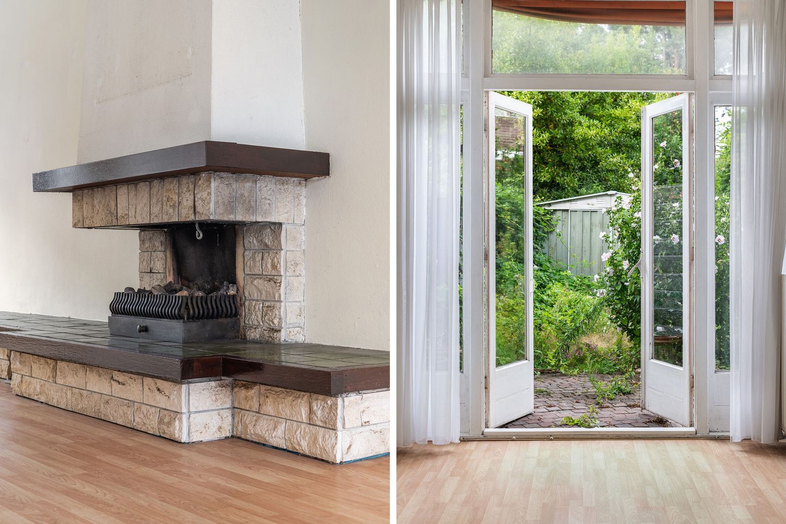 - Achterzijde voorzien van houten kozijnen (enkel glas)