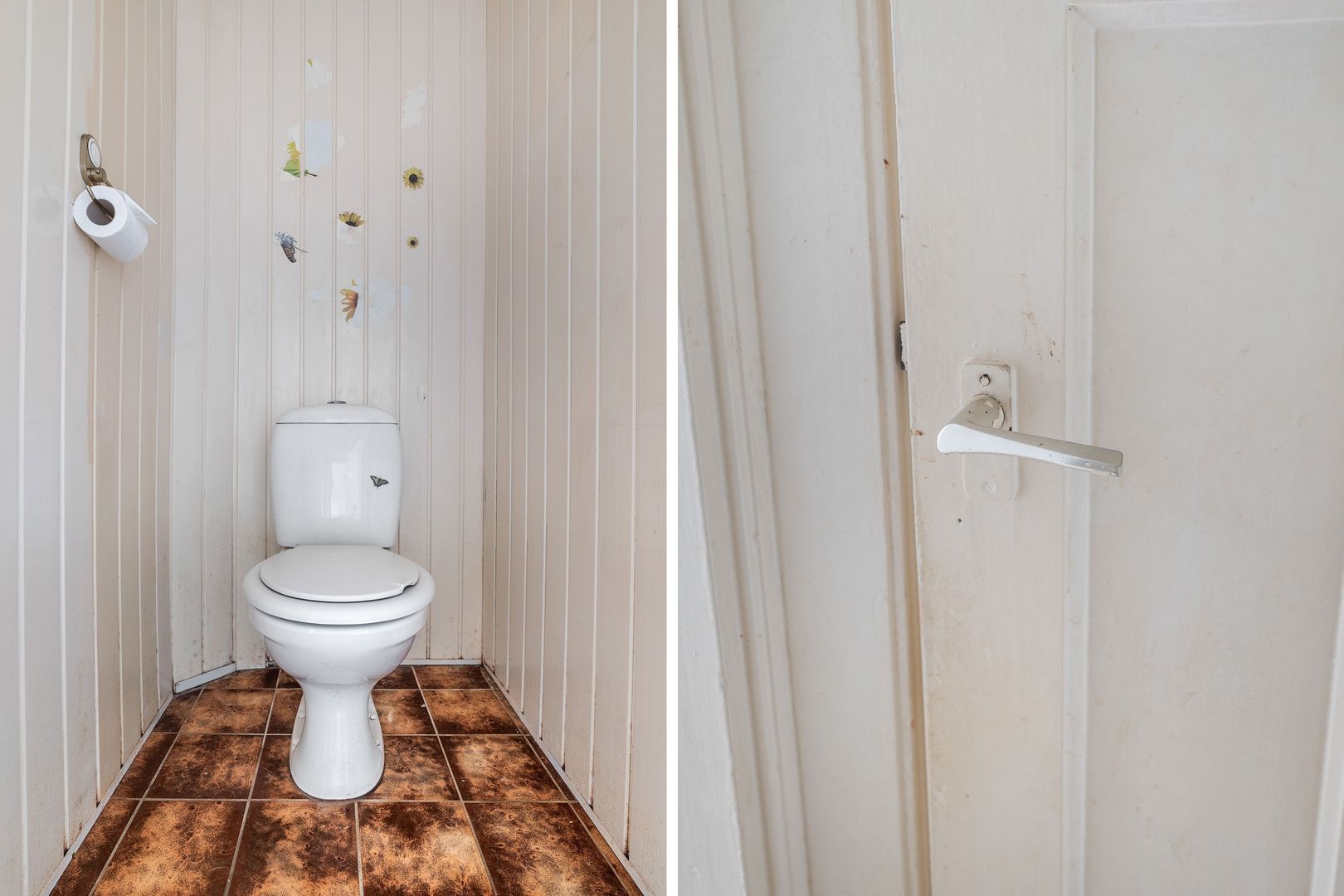 Woningentree; tochtportaal; gang met kastruimte en toilet ; royale doorgebroken woonkamer met open haard en openslaande deuren naar de achtertuin; eenvoudige keuken met toegang tot de achtertuin en 2 schuren; 1e slaapkamer aan de voorzijde; 2e slaapkamer aan de achterzijde met toegang tot de achtertuin middels openslaande deuren; badkamer voorzien van een douche en wastafel; royale diepe achtertuin met 2 schuren