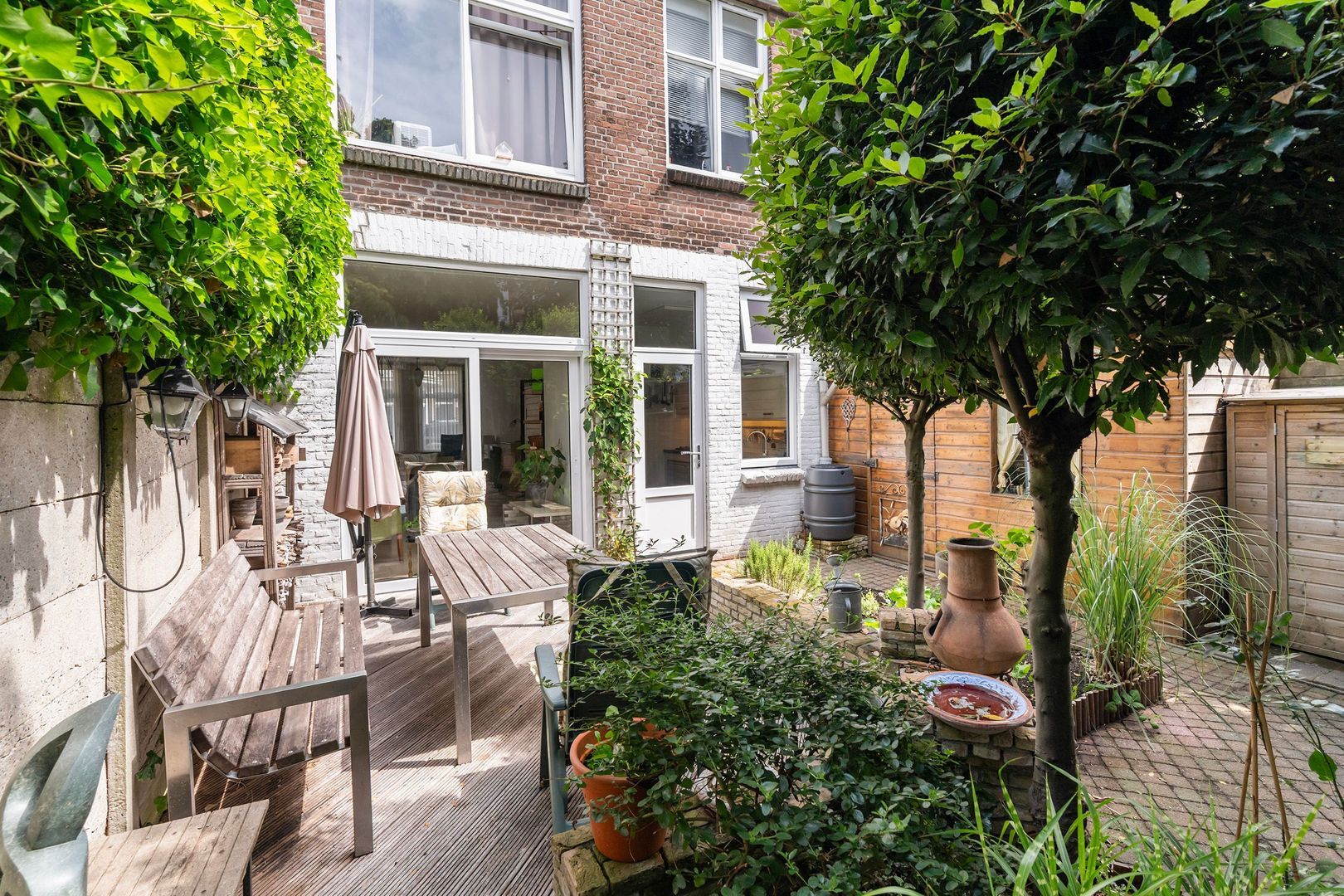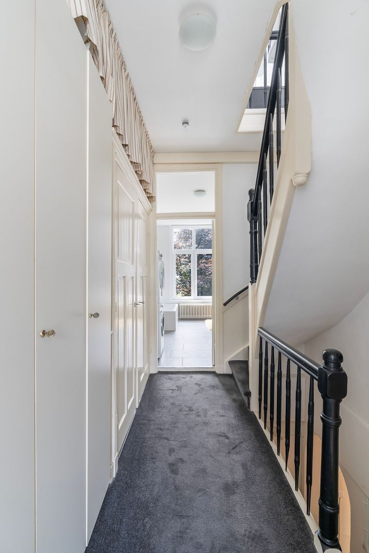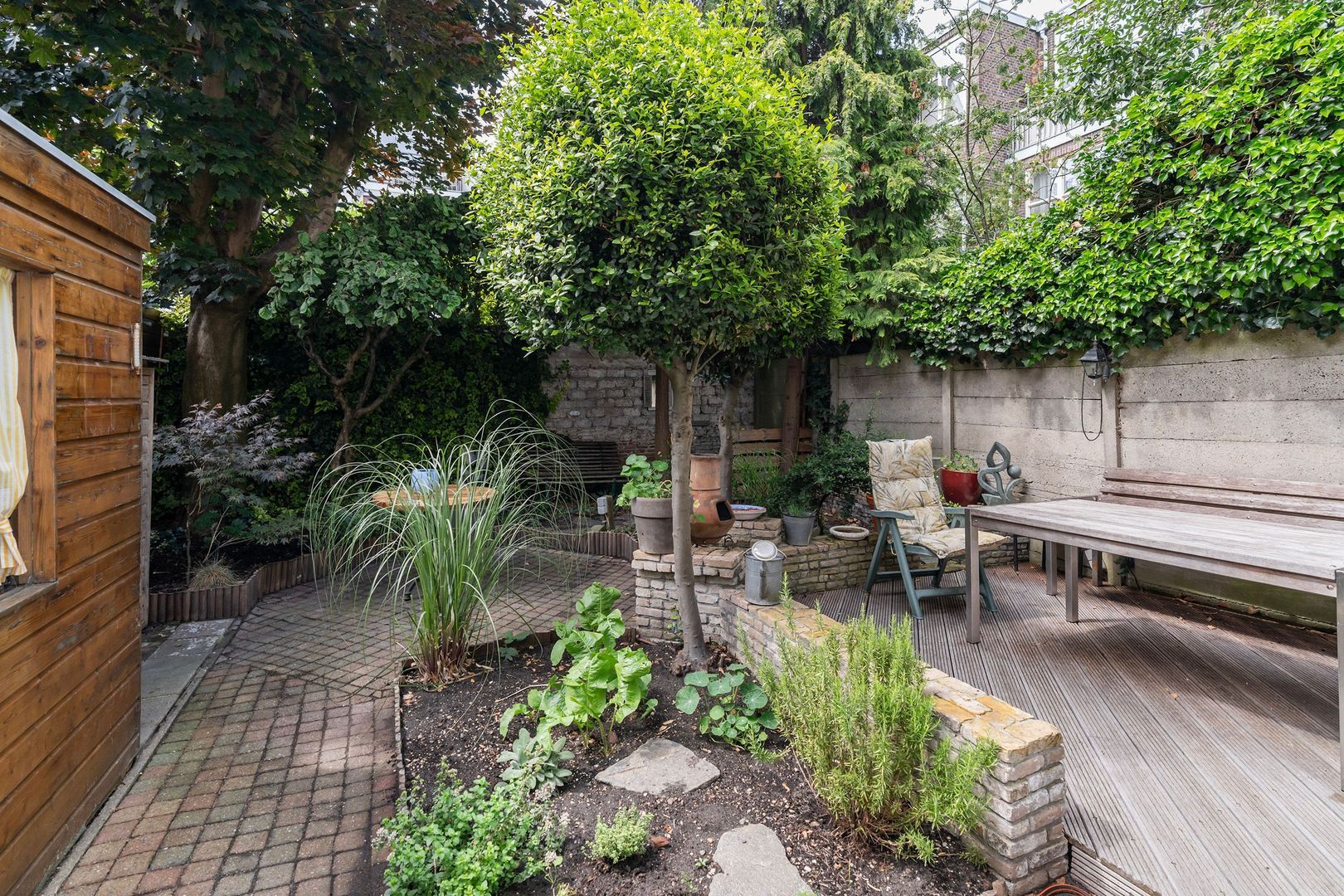 Bijzonder ingedeelde parterrewoning (ca 115m²) met een 2 laags tussenbouw over de volle diepte van het pand. Hierdoor heb je boven het slaapgedeelte geen bovenburen. Deze keurig onderhouden woning heeft een grote doorgebroken woonkamer, een afzonderlijke keuken, een zalige tuin op het Zuidwesten georiënteerd, terras op de 2e etage eveneens op Z-W en de mogelijkheid voor 3 slaapkamers. Uiteraard is de gehele woning voorzien van kozijnen met dubbel glas. De Vereniging van Eigenaren is recent geactiveerd en de woning is gelegen op eigen grond.
