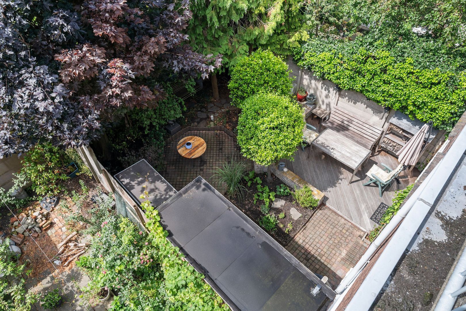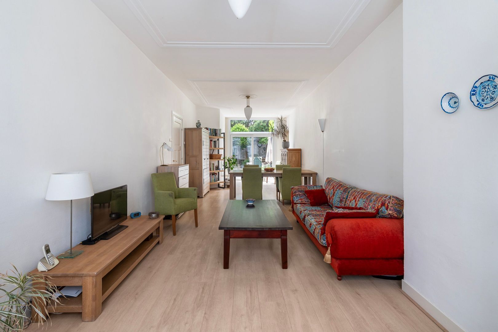 Bijzonder ingedeelde Parterrewoning met een 2 laags tussenbouw over de volle diepte van het pand en een brede achtertuin.