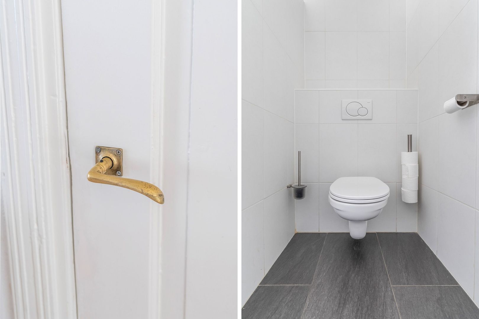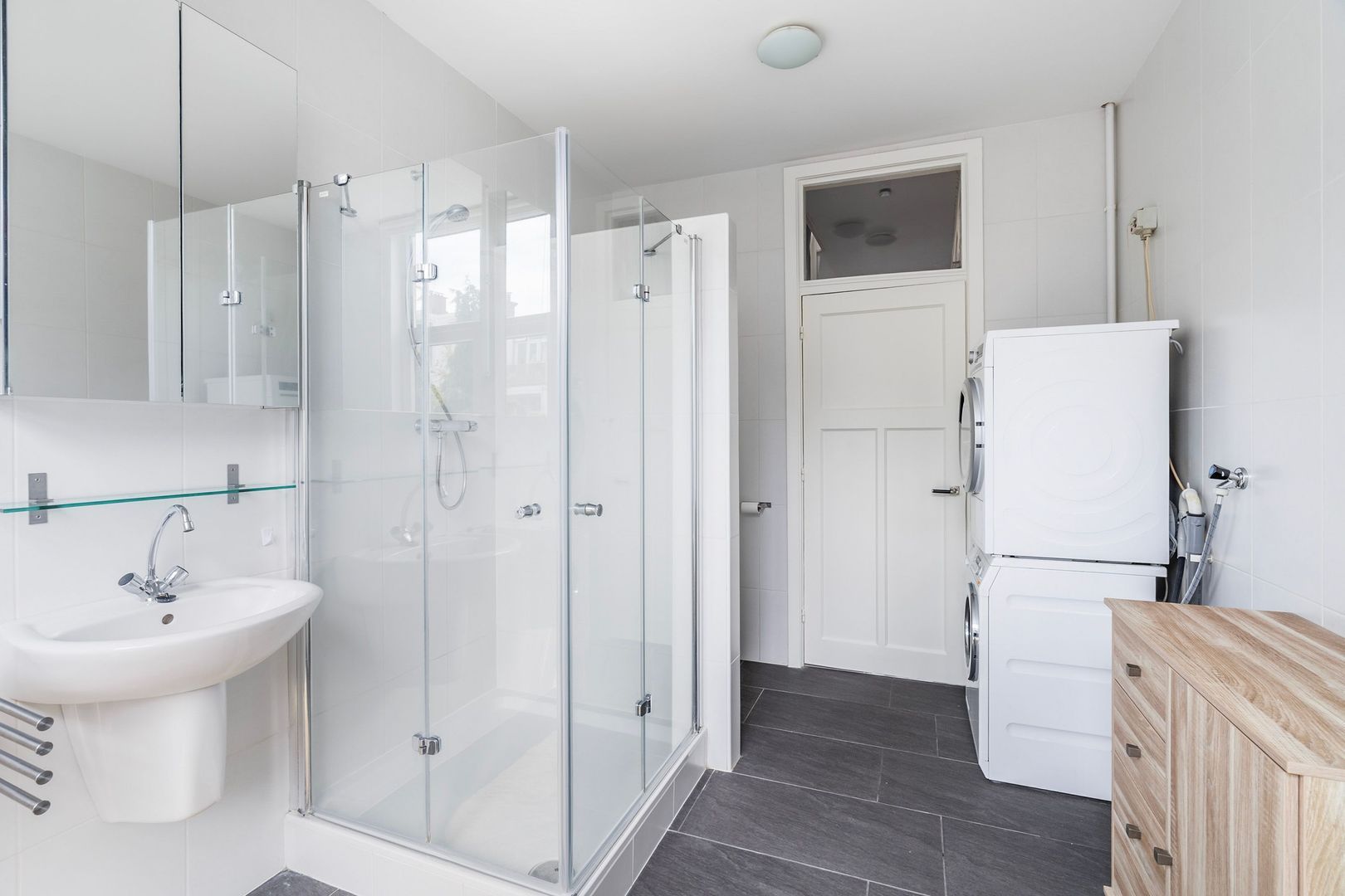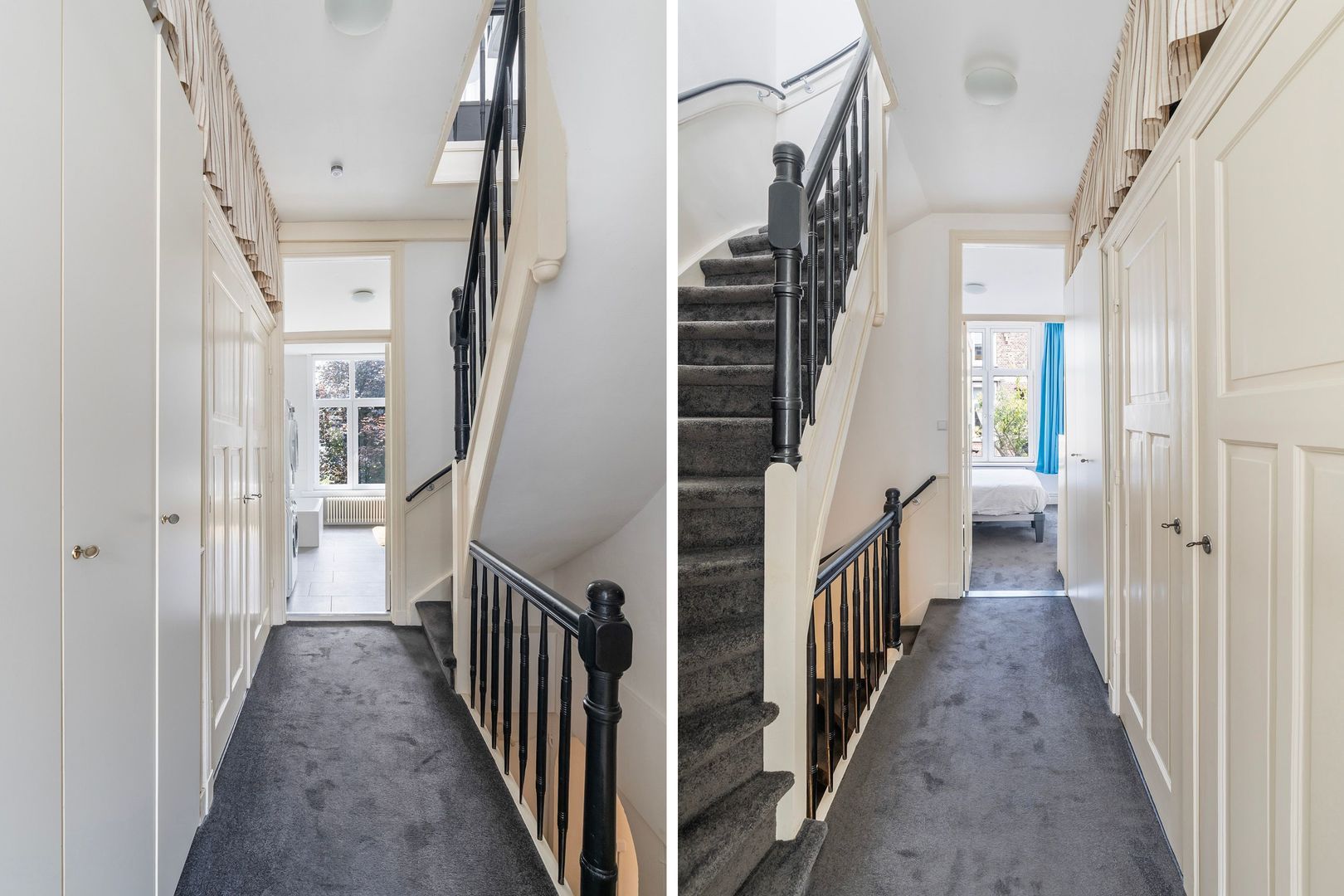 1e etage: royale overloop met kastruimte; royale slaapkamer aan de voorzijde; grote moderne badkamer aan de achterzijde met ligbad, inloopdouche, 2e toilet, wastafel en wasmachine aansluiting; via de overloop trap naar 2e etage.