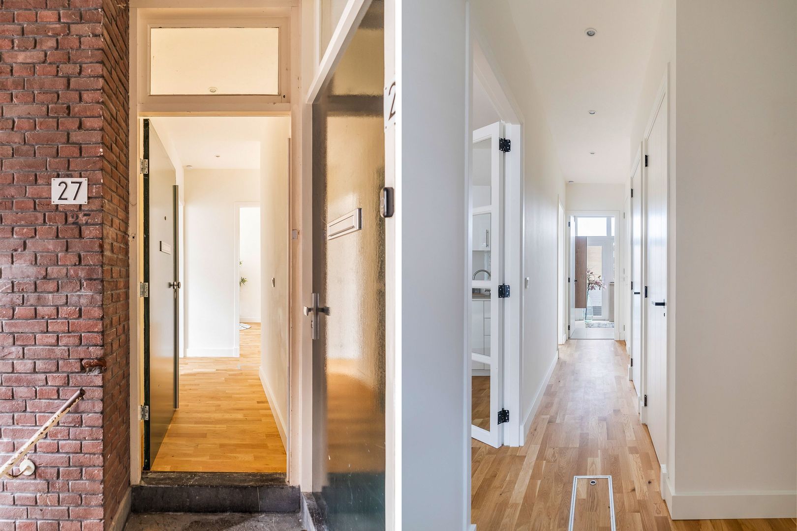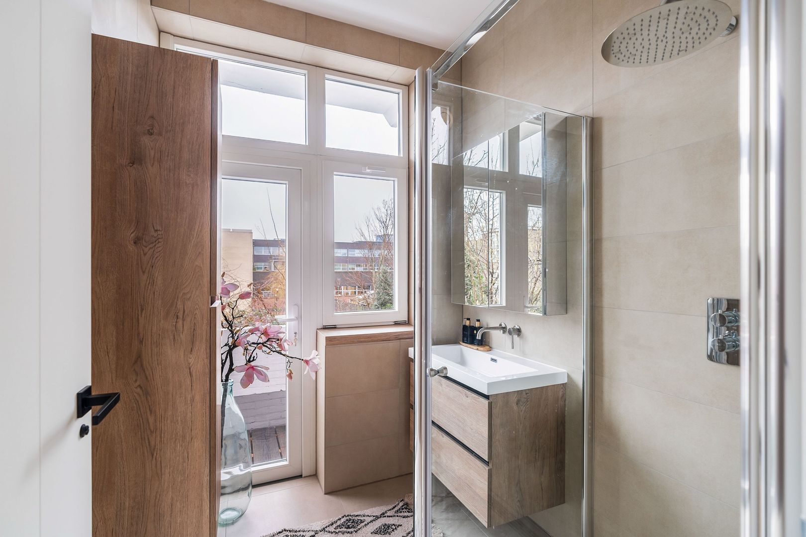Woningentree via open portiek; gang met een vaste kast voorzien van de cv-opstelling en wasmachine aansluiting, 2e vaste kast met electrameter; woonkamer met een sfeervolle erker en een moderne open keuken voorzien van een inductiekookplaat, afzuigkap, oven, vaatwasser, koel-vriescombinatie en veel kastruimte; 1e slaapkamer aan de voorzijde; 2e grote slaapkamer aan de achterzijde; 3e slaapkamer aan de achterzijde; moderne badkamer met een inloopdouche, wastafelmeubel en toegang tot het balkon; modern separaat toilet met fonteintje;