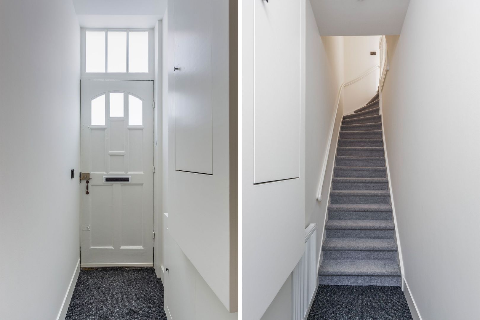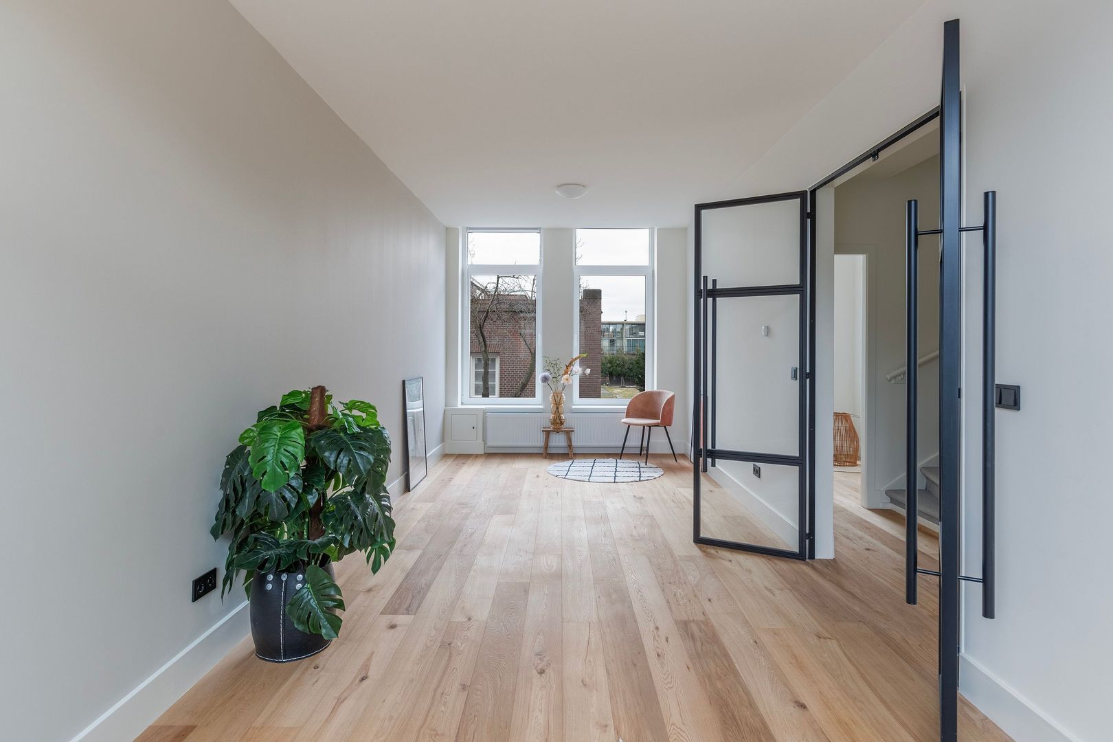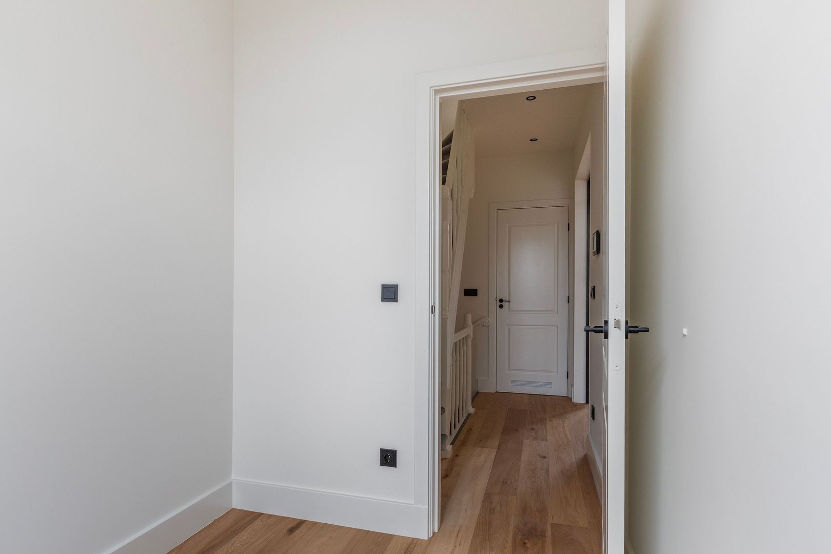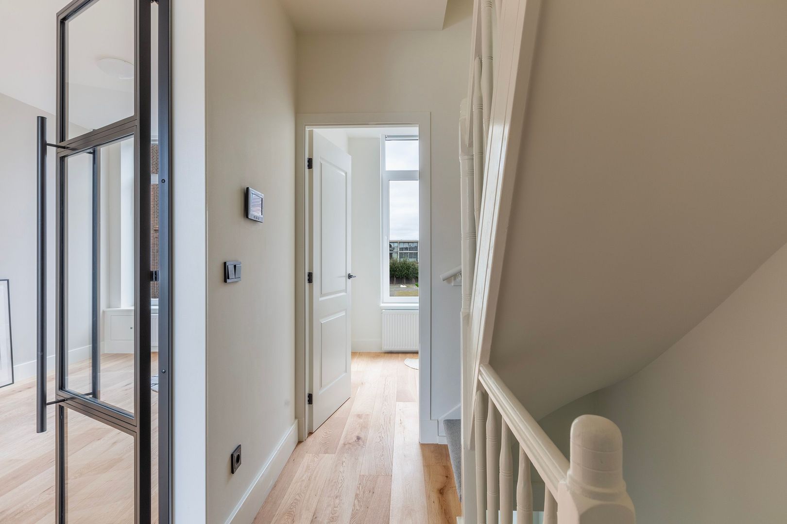 Trap vanaf de overloop naar de overloop op de 2e etage; 2e slaapkamer aan de voorzijde met een sfeervolle schouw; 3e slaapkamer aan de achterzijde met toegang tot het 2e terras; werk-/studeerkamer aan de achterzijde met de cv-opstelling en wasmachine aansluiting; luxe badkamer voorzien van een ruime inloopdouche en dubbel wastafelmeubel.