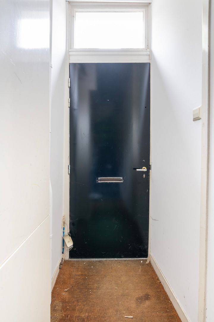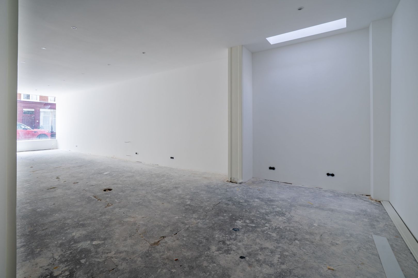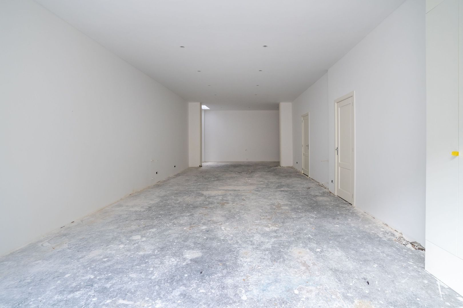 Grote open ruimte ca 13,74x4,81/5.99 met beton vloer en aan de achterzijde een lichtstraat in het plafond; bergruimte onder de trap van het bovenhuis; halletje met keurig toilet.