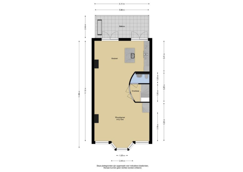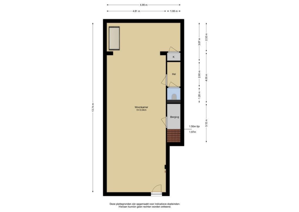 Deze informatie is door ons met de nodige zorgvuldigheid samengesteld. Onzerzijds wordt echter geen enkele aansprakelijkheid aanvaard voor enige onvolledigheid, onjuistheid of anderszins, dan wel de gevolgen daarvan. Alle opgegeven maten en oppervlakten zijn indicatief.