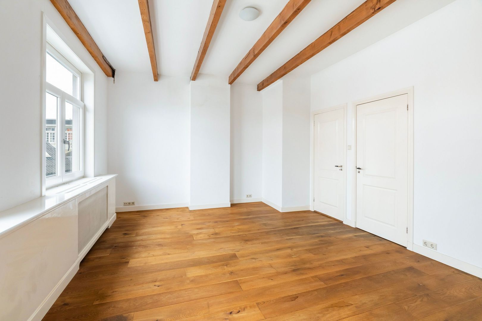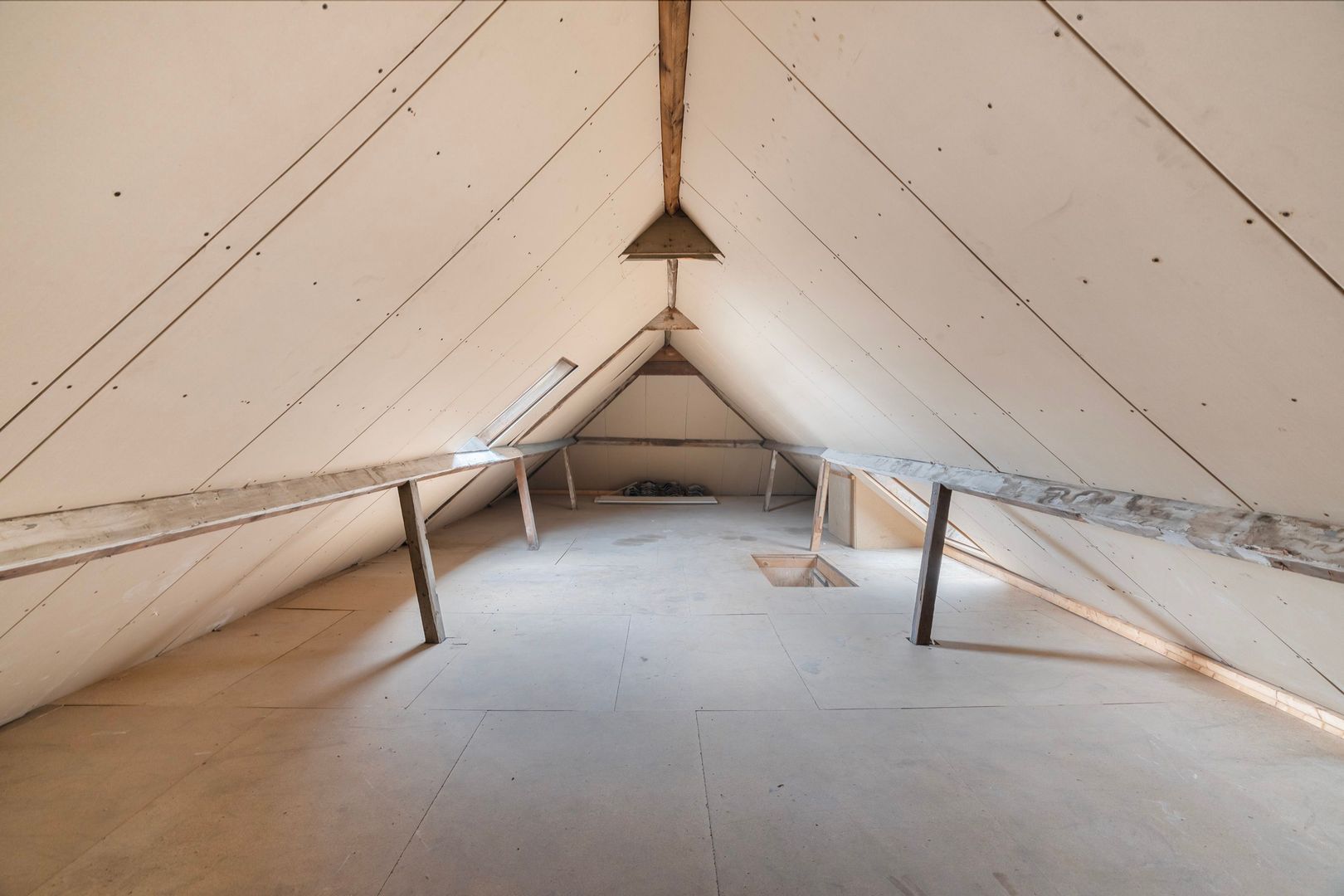 2e etage: overloop met opstelplaats cv ketel en toegang tot de badkamer met ligbad, separate douche, toilet, dubbele wastafel en aansluiting voor wasmachine; 3 slaapkamers waarvan de grootste aan de achterzijde ca. 4.22x6 en 2 aan de voorzijde ca. 4.18x3.77 en ca. 2.96x2.24. Fraai is dat de balken plafonds mooi in zicht liggen. Via de overloop is de zolder bereikbaar die thans niet meetelt in het vloeroppervlakte (voor deze zolder is er het verbouwingsplan getekend)