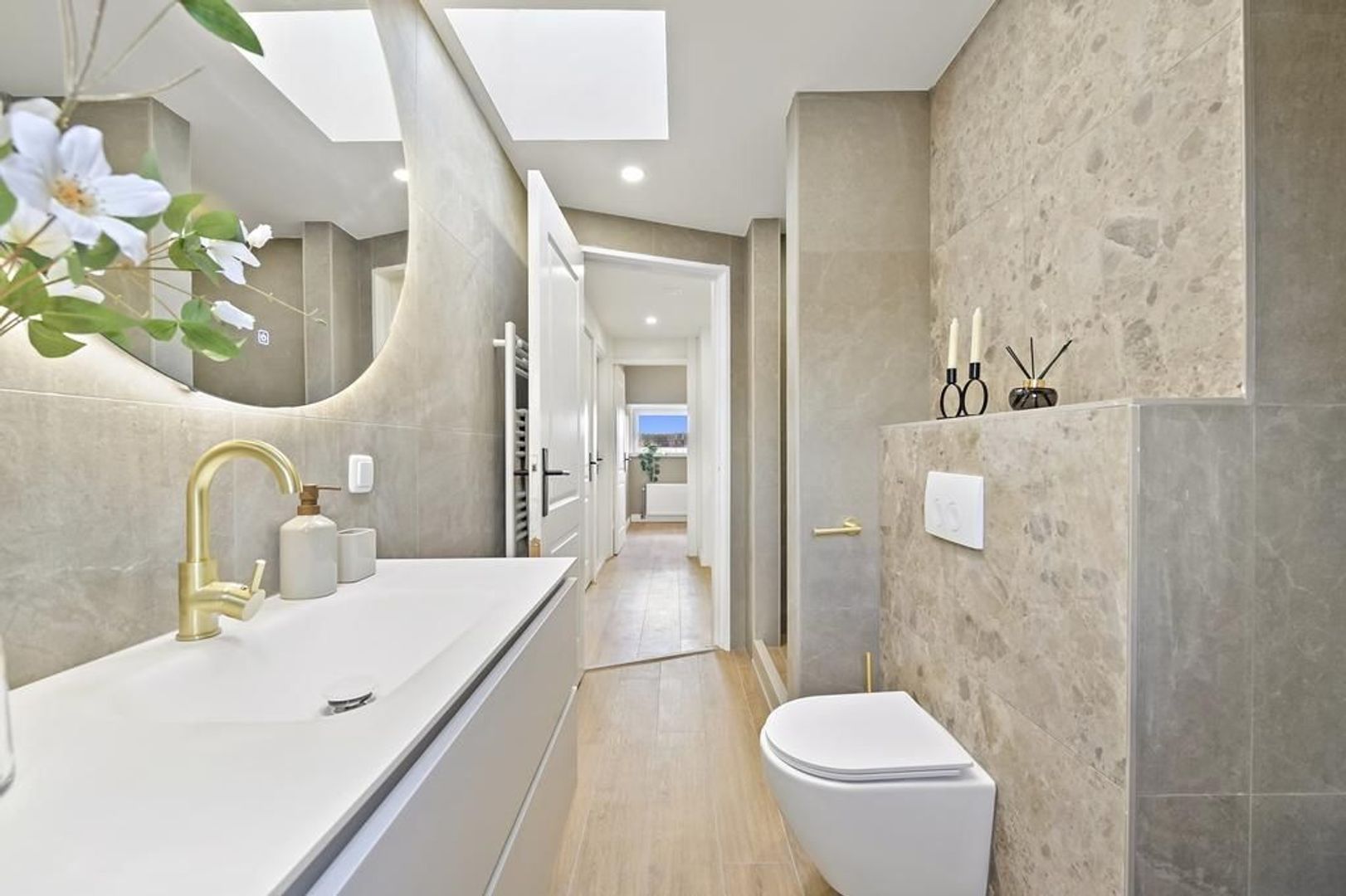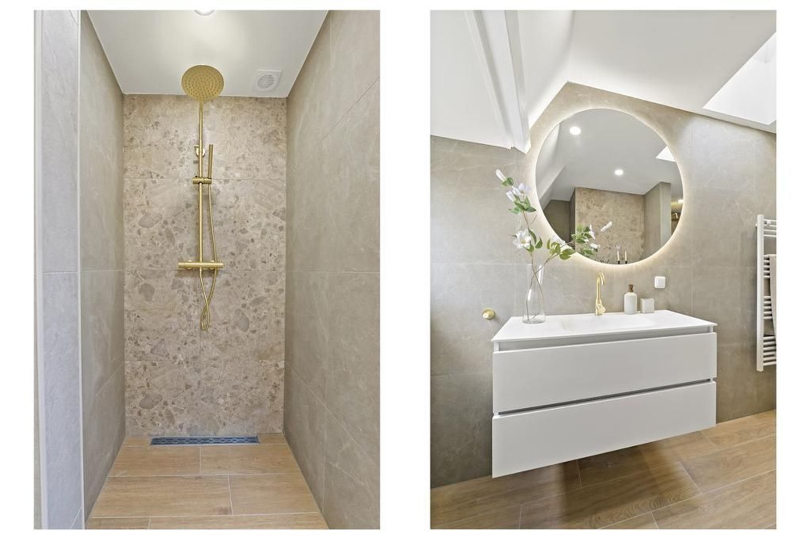 Trap naar 2e verdieping; overloop toegang tot de royale slaapkamer aan de voorzijde met dakkapel ca. 4.39x3.38; ruime slaapkamer aan de achterzijde ca. 4.26x3.48; voor-zij kamer 2.78x2.16; luxe nieuwe badkamer ca. 3.27x2.11 voorzien van inloopdouche en wastafelmeubel, toilet en opstelplaats wasmachine/droger
