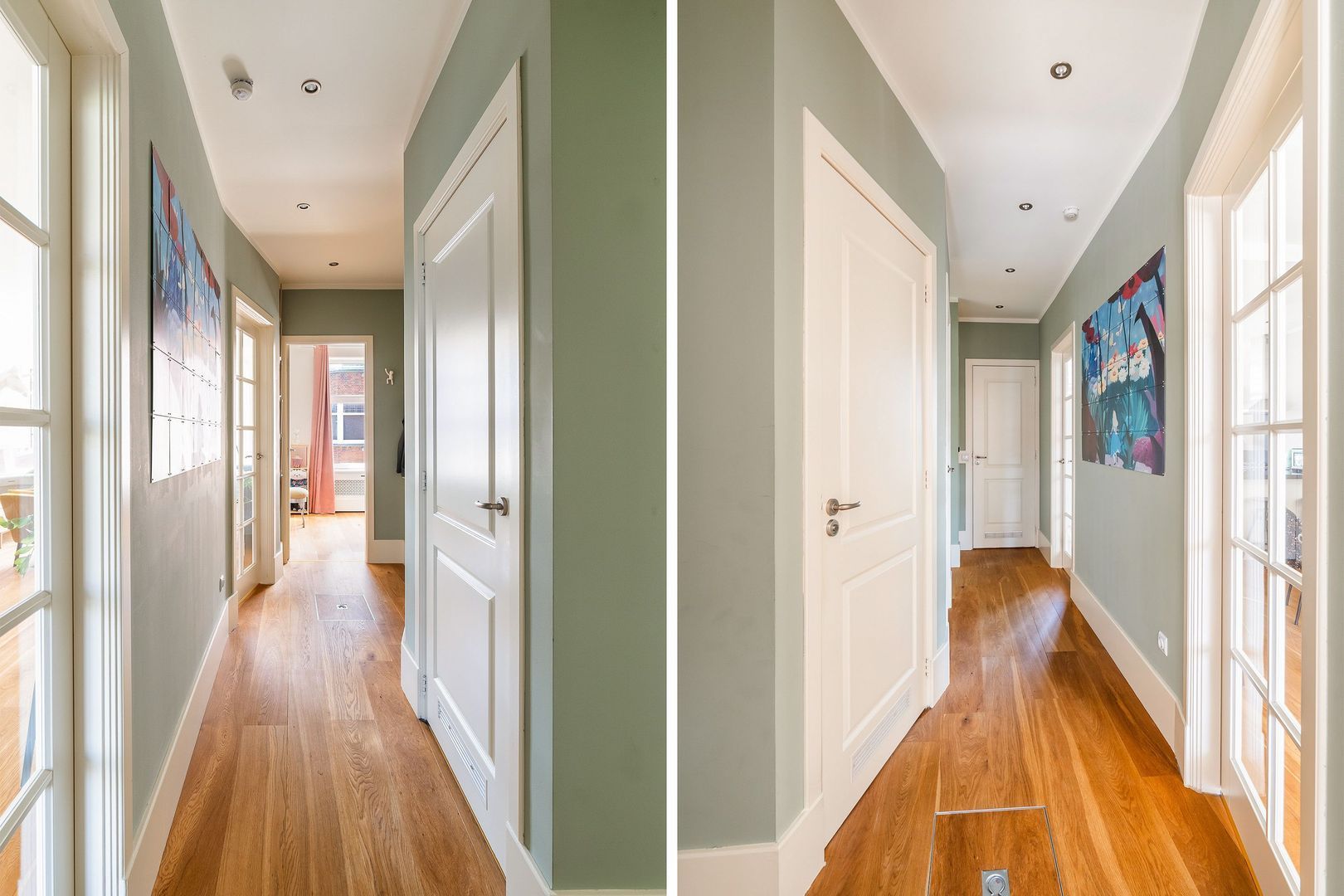 Entree via Haags portiek op de 1e etage: gang met meterkast met wasmachine aansluiting; modern toilet (wandcloset) met fontein; woonkamer ca. 10.44 x3.41(3.08); luxe open keuken in L-vorm opstelling met een fraai natuurstenen aanrechtblad, 4-pits gaskookplaat, afzuigkap, oven, koelkast, vriezer, vaatwasser ;1 slaapkamer aan de voorzij ca. 2.87x2.92; 2e slaapkamer van de achterzijde ca. 1.99x4.02 met openslaande deuren naar het balkon; moderne badkamer ca. 2.13x1.82 met een douchecabine, wastafelmeubelen toegang het balkon;