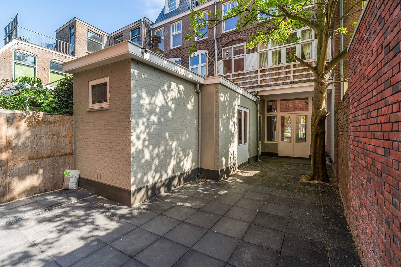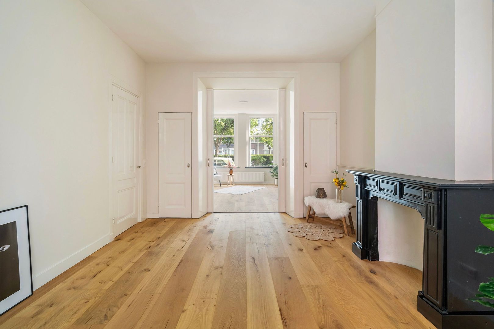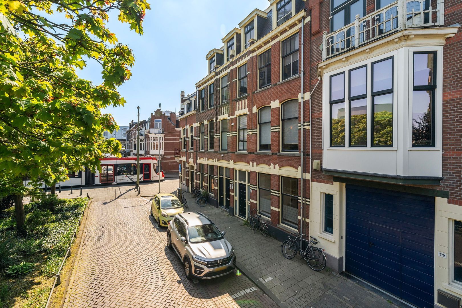 De woning is gelegen aan een mooi rustig plein tussen twee statige en recent compleet gerenoveerde pleinen; het Oranjeplein en het Huygenspark. In de buurt (Het Haagse Quartier Latin genoemd) zijn tal van winkeltjes, supermarkten en volop restaurants o.a. aan de Bierkade (Avenue Culinair) met leuke terrassen op de gracht. Tram- en busverbindingen liggen om de hoek en het Station Hollands Spoor ligt eveneens op loopafstand. Vanuit deze woning bereikt u op eenvoudige wijze de gezelligheid van de binnenstad, terwijl u zelf in een oase van rust woont.