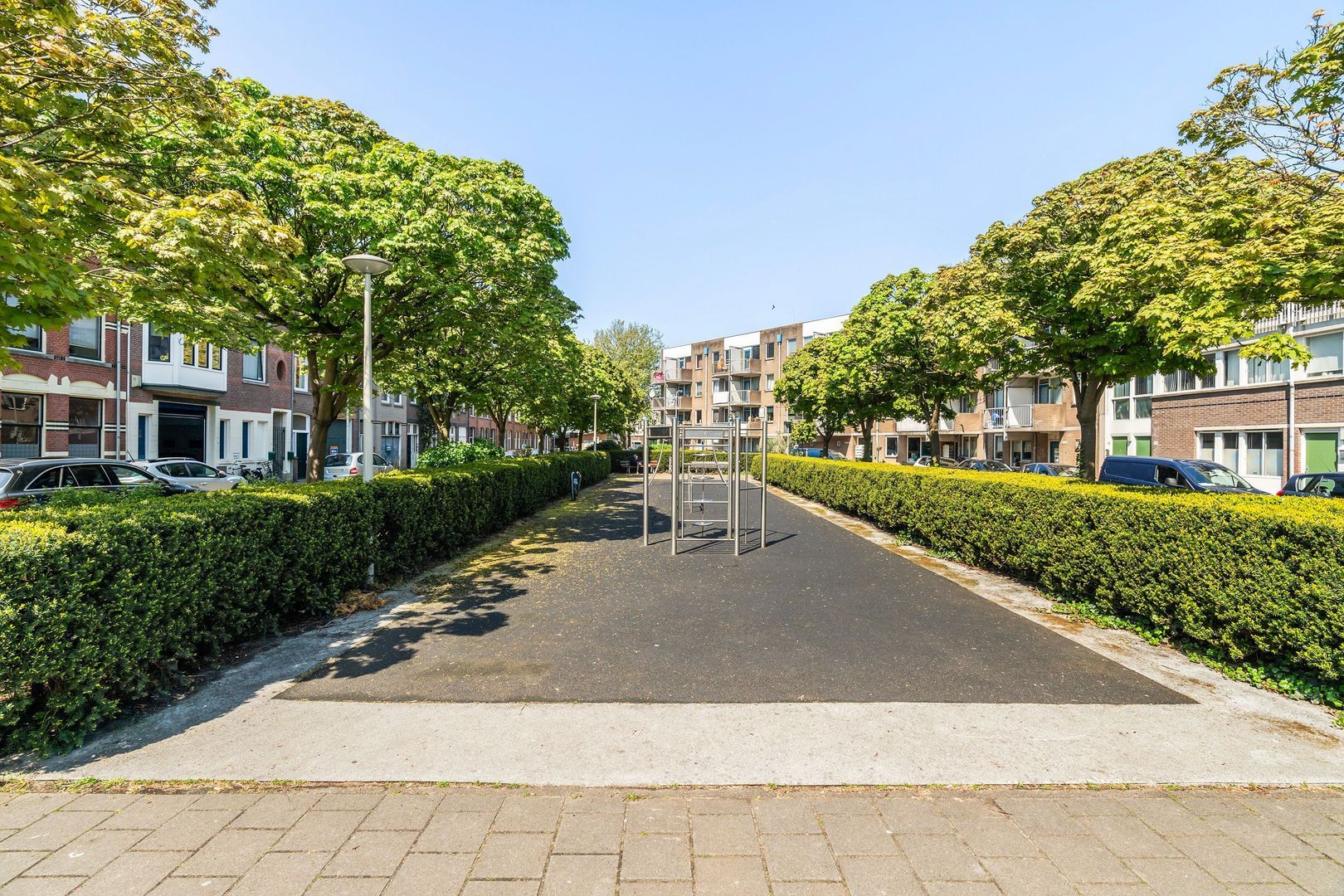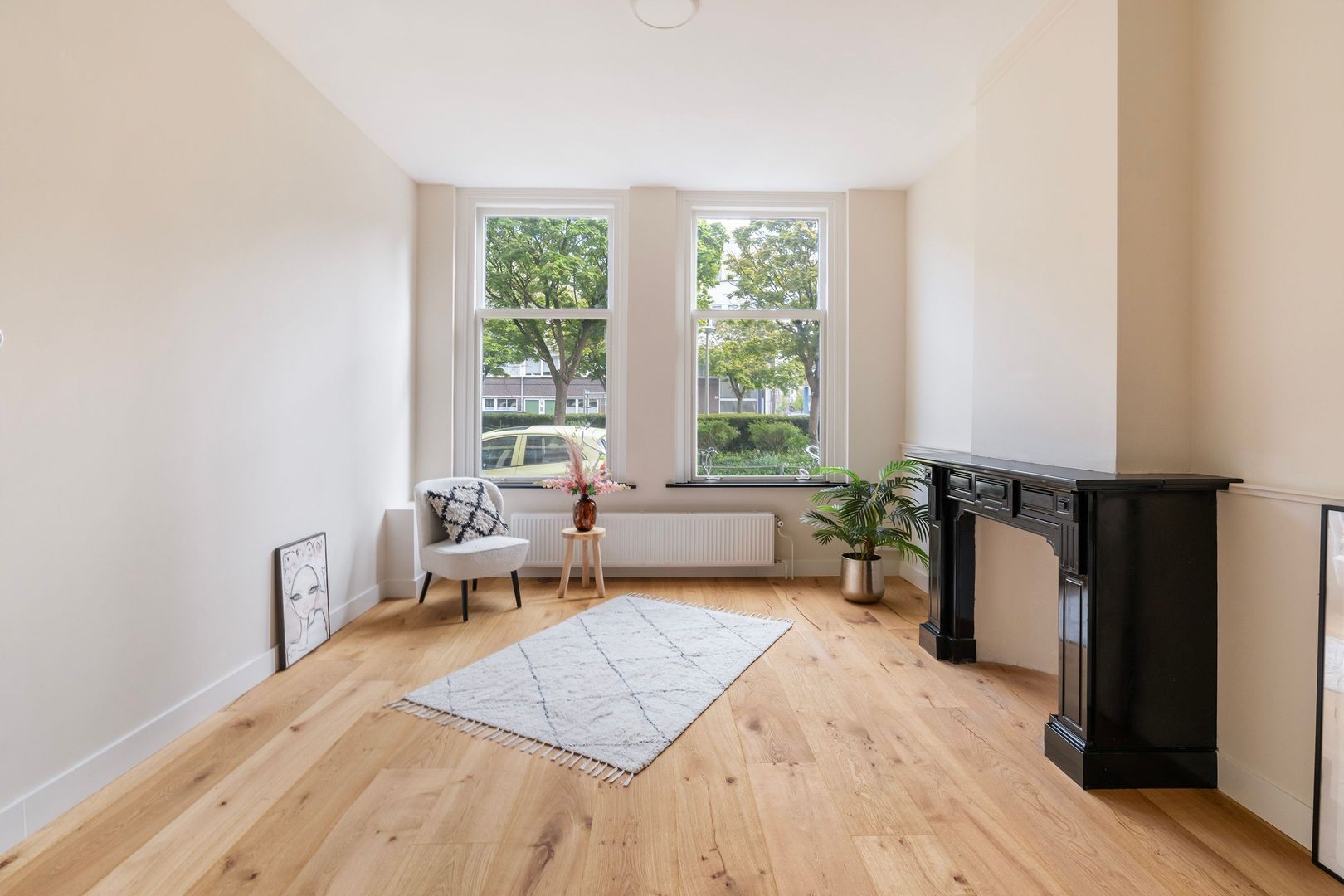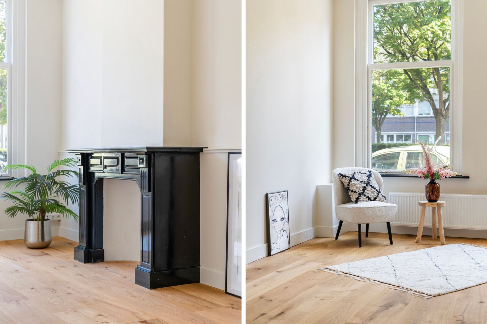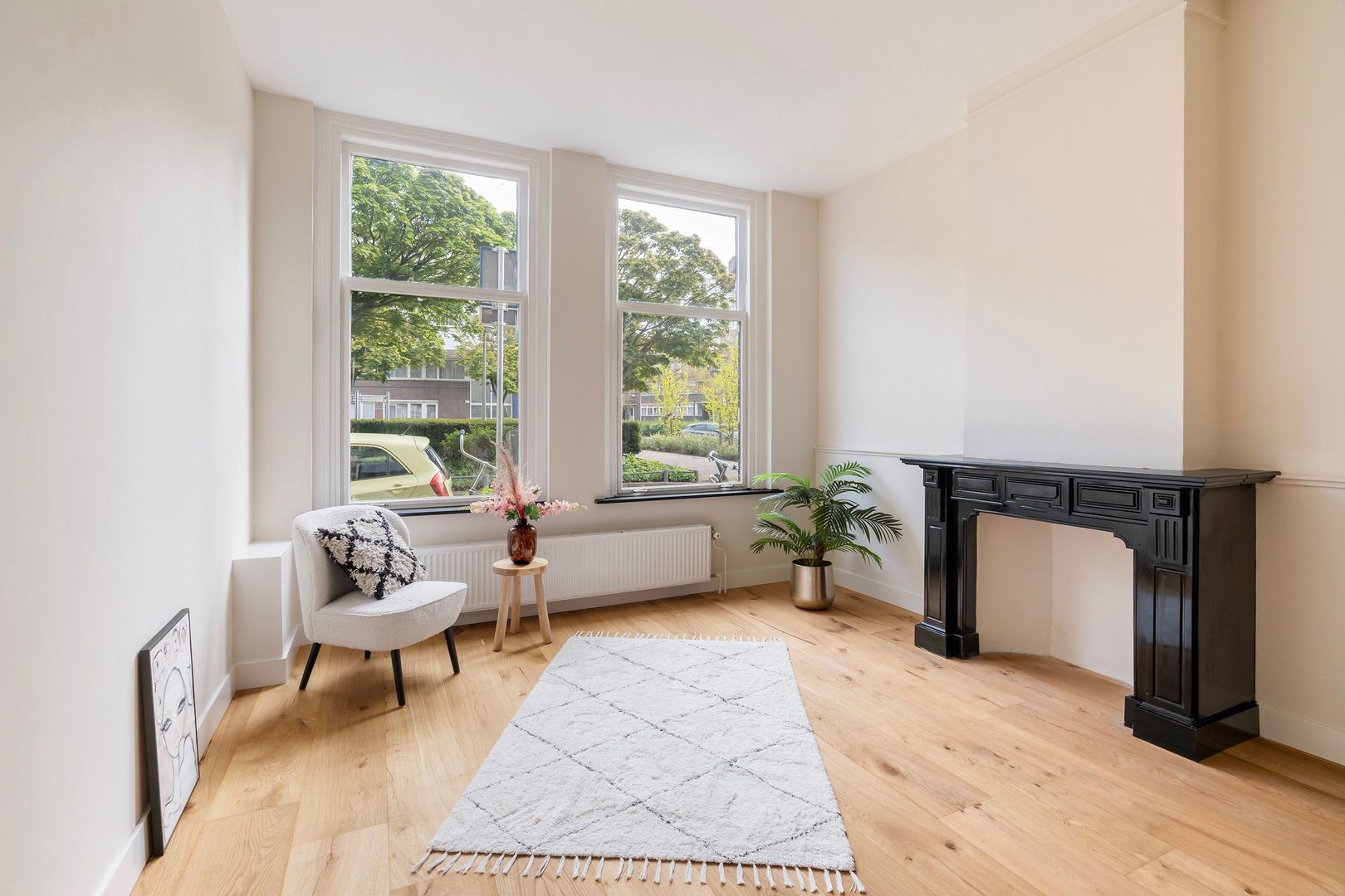 De woning is gelegen aan een mooi rustig plein tussen twee statige en recent compleet gerenoveerde pleinen; het Oranjeplein en het Huygenspark. In de buurt (Het Haagse Quartier Latin genoemd) zijn tal van winkeltjes, supermarkten en volop restaurants o.a. aan de Bierkade (Avenue Culinair) met leuke terrassen op de gracht. Tram- en busverbindingen liggen om de hoek en het Station Hollands Spoor ligt eveneens op loopafstand. Vanuit deze woning bereikt u op eenvoudige wijze de gezelligheid van de binnenstad, terwijl u zelf in een oase van rust woont.
