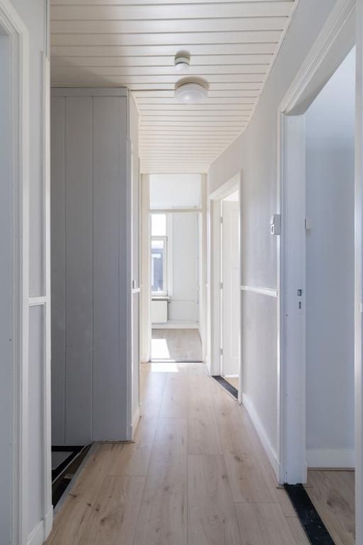 Woningentree via open portiek; hal met binnentrap naar de overloop op de 2e etage; woonkamer ca. 4.79x3.41; nette keuken ca. 2.85x1.73 met een gaskookplaat, afzuigkap, veel kastruime en toegang tot het balkon; 1e slaapkamer aan de voorzijde ca. 3.73x3.05; 2e slaapkamer aan de achterzijde ca. 5.51x3.13 met 2 vaste kasten; 3e slaapkamer aan de achterzijde ca. 4.07x2.19 met vaste kast; ruime badkamer ca. 2.11x2.68/1.75 met douchecabine, wastafel en wasmachine aansluiting;