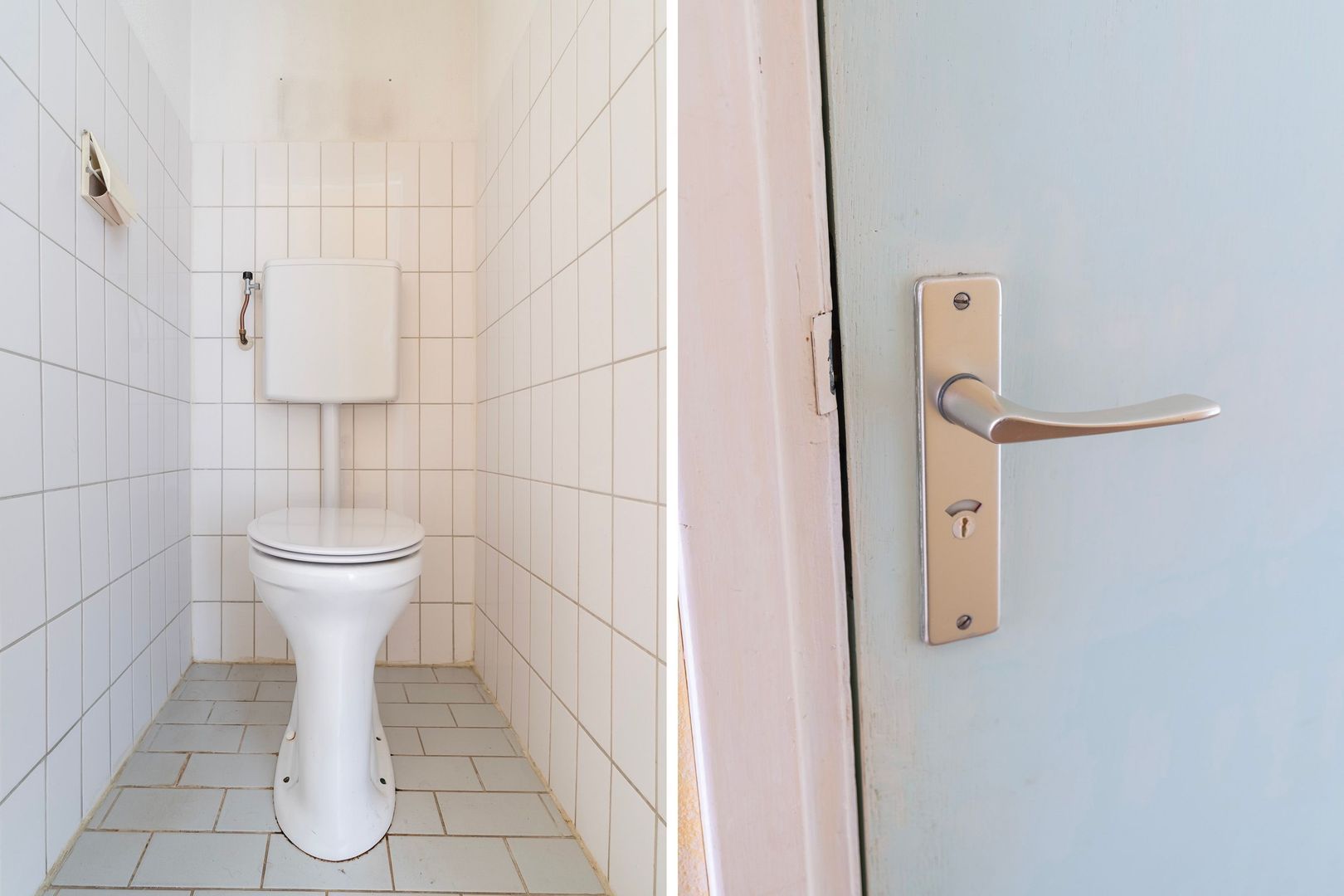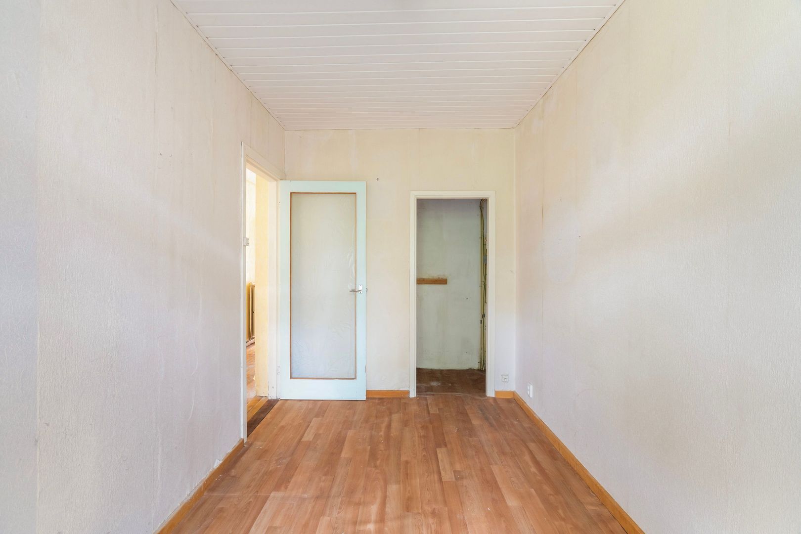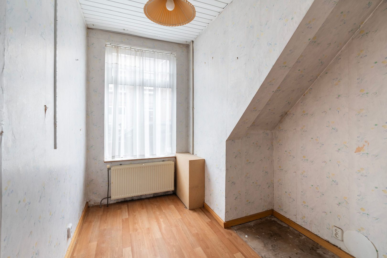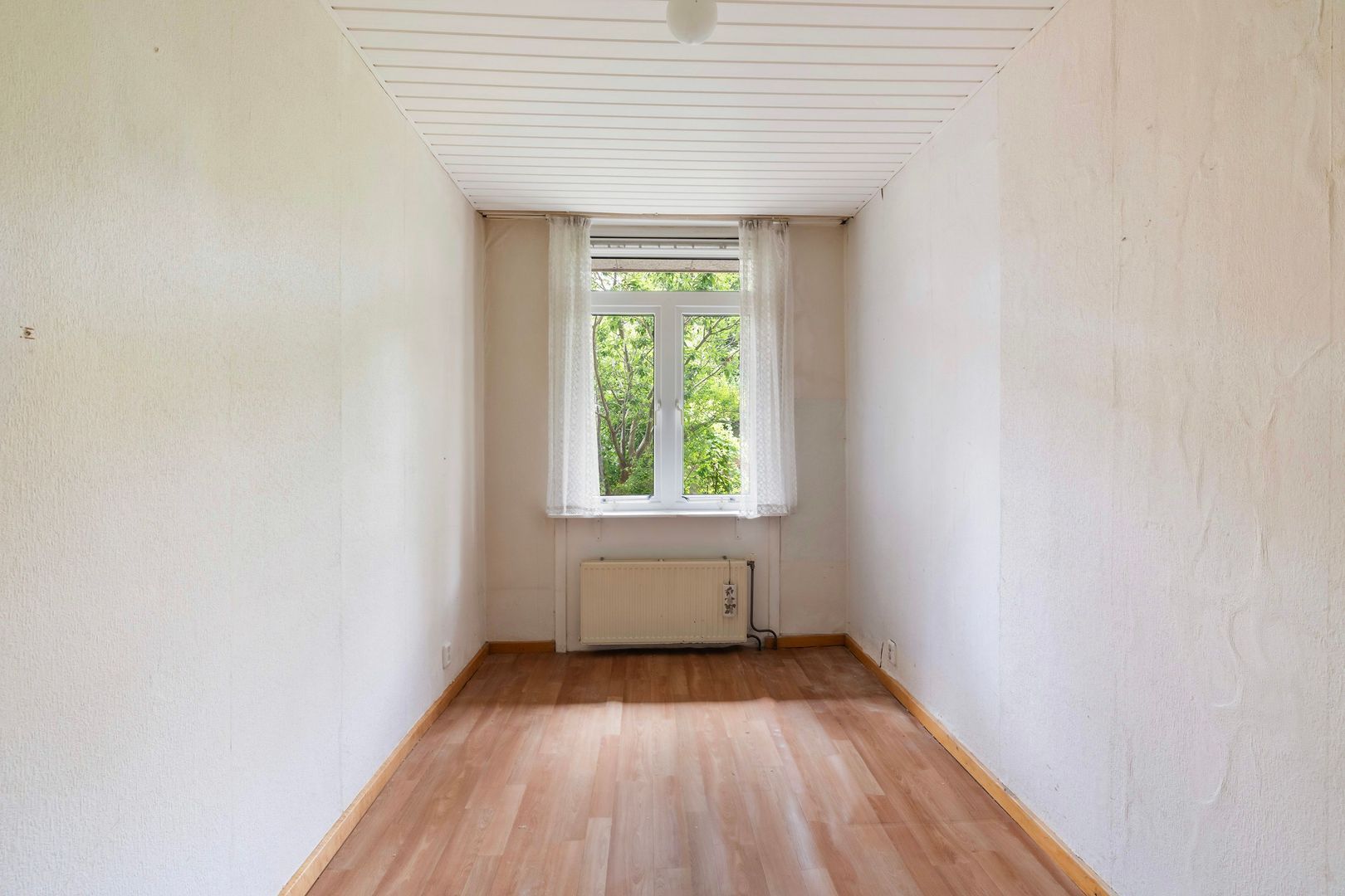 badkamer met douche en wastafel; gesloten keuken met eenvoudig keukenblok en deur naar de achtertuin; achtertuin op het zuiden, van bijna 11,5 meter diep, met schuur.