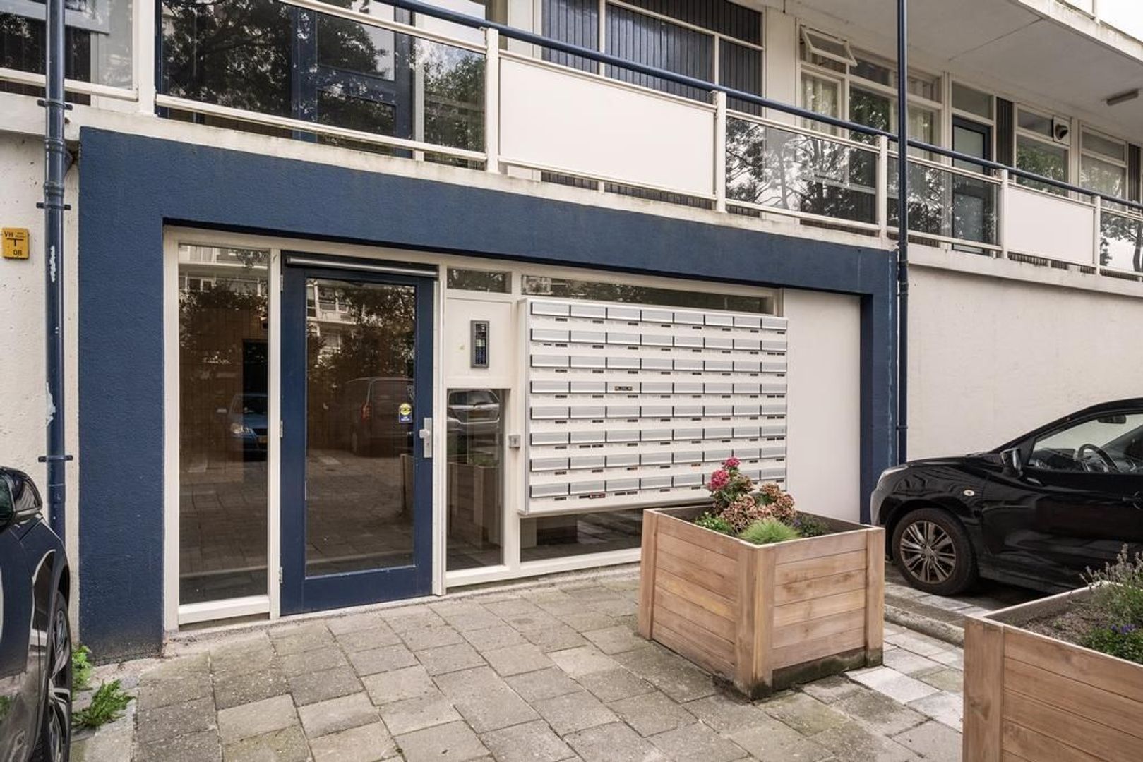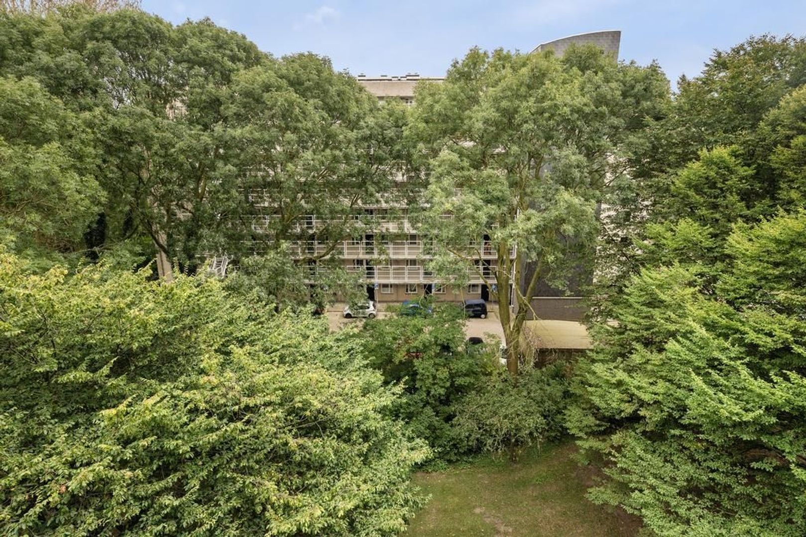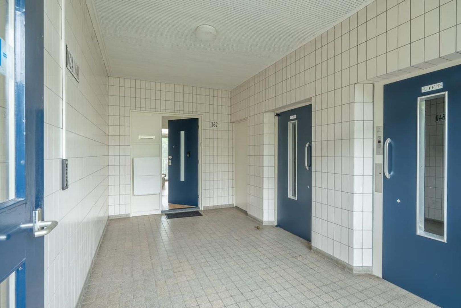 Toegang tot het gebouw via het gemeenschappelijke en afgesloten parkeerterrein, gesloten portiek met bellentableau lift naar de 5e verdieping.