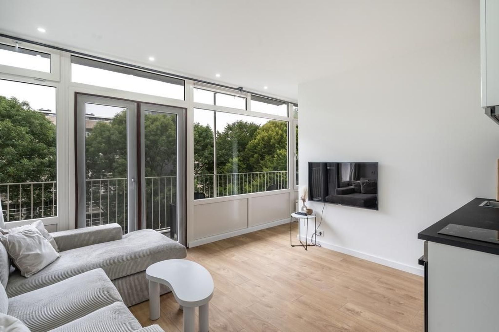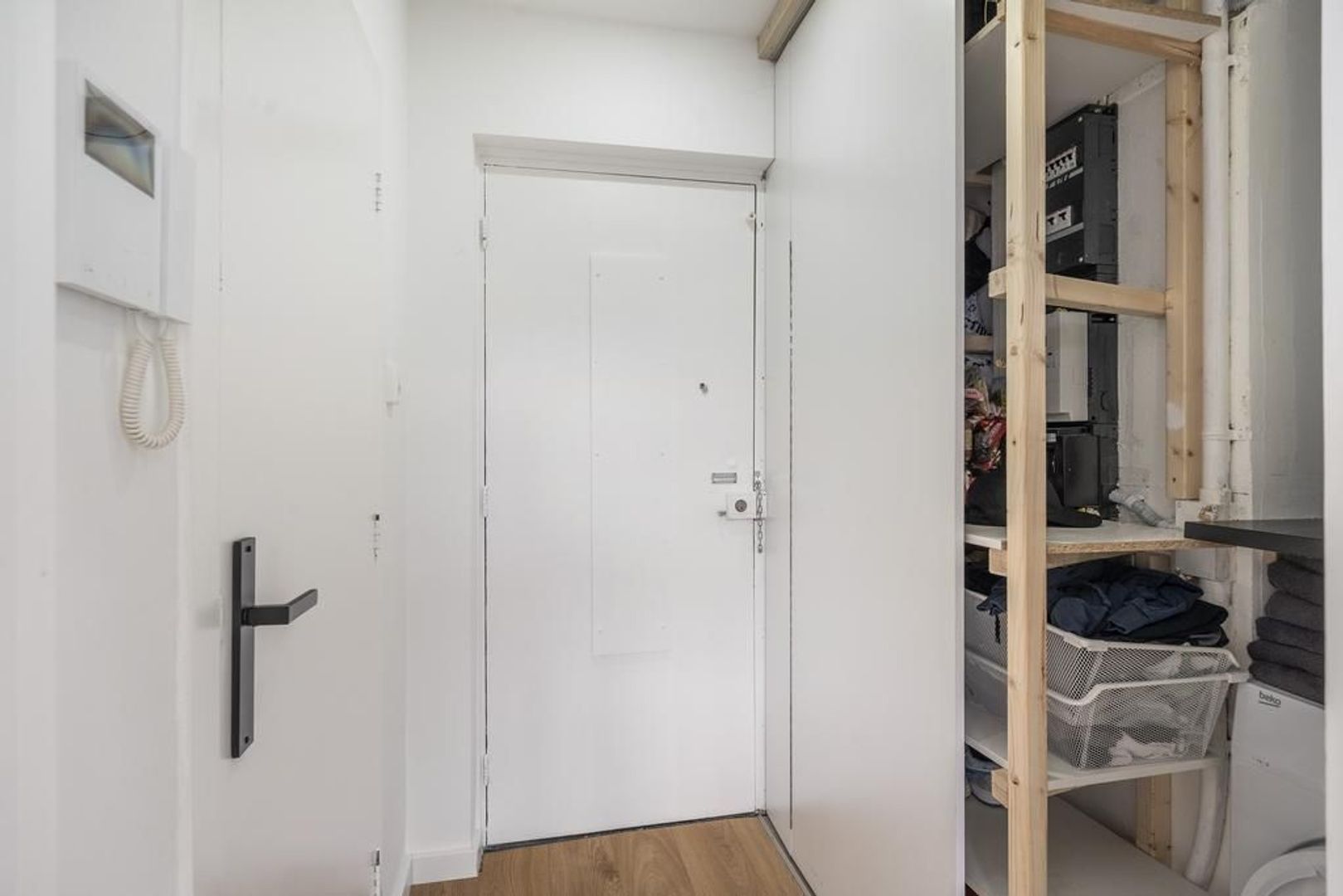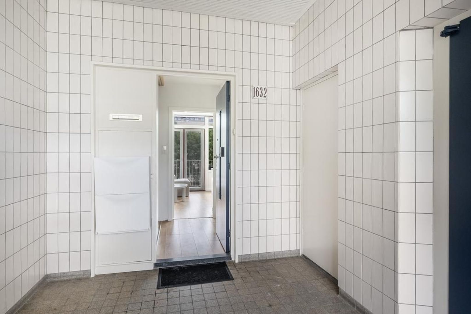 entree appartement; gang met goede bergruimte met opstelplaats voor de koelkast; sfeervolle en lichte woon-/eetkamer met keukenopstelling en ingebouwde inductiekookplaat, afzuigkap en wasmachine. Van de woonkamer afgescheiden slaapgedeelte. Via de woonkamer toegang tot het over de volle breedte liggende balkon die zuidelijk georrienteerd is.
