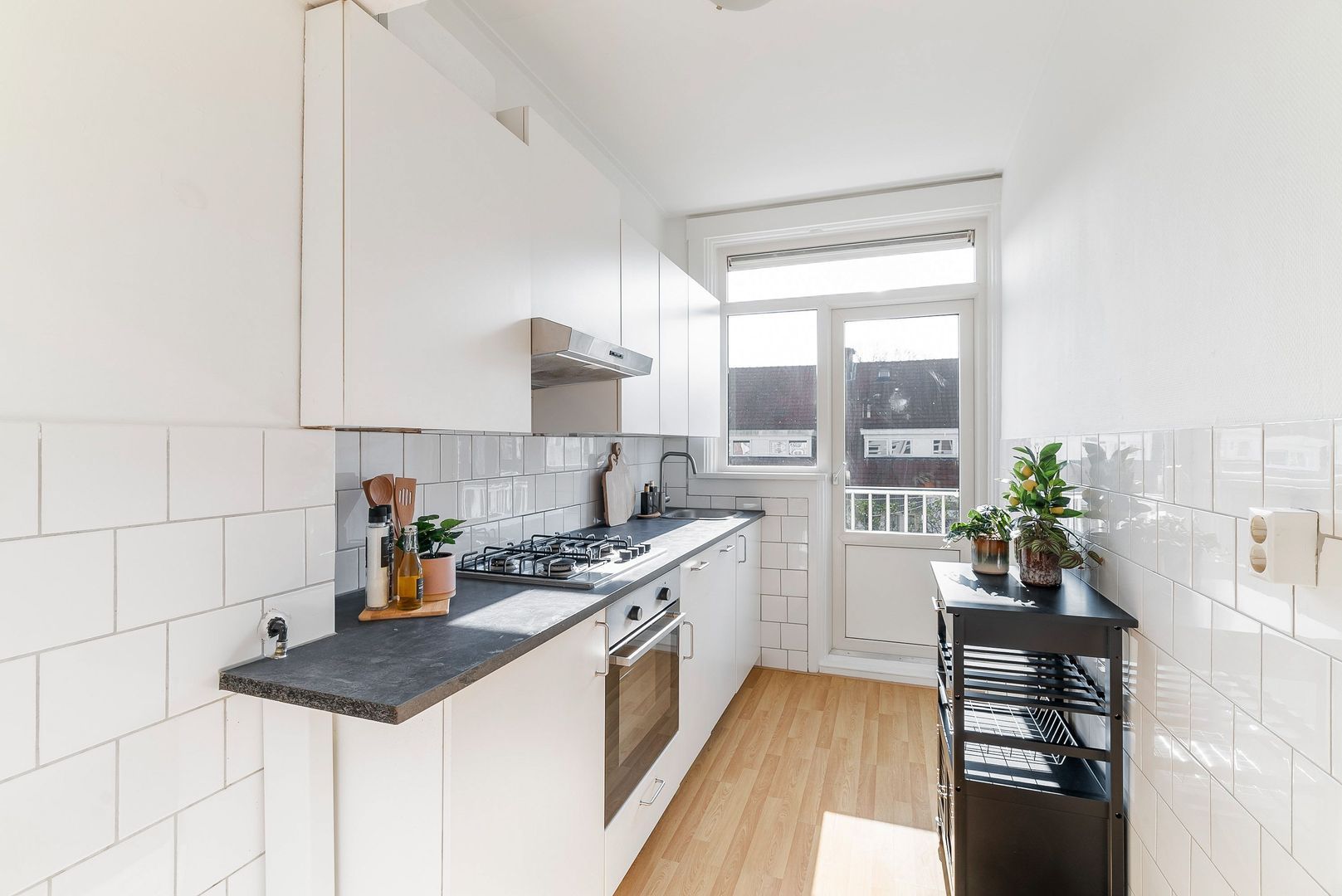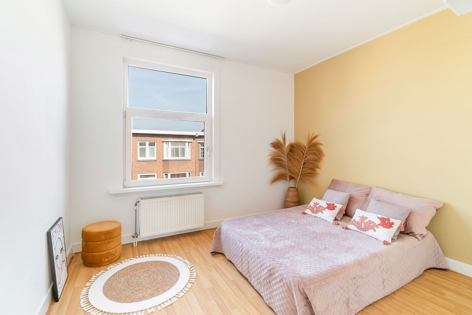 Laakkwartier. Keurig verzorgd en royaal (86m²) 4-kamer topetage appartement met een balkon op het Zuiden. Deze woning is onder andere voorzien van een kamer ensuite met keurige schuifseparatie met kasten en met lijstwerk plafonds, nieuwe badkamer, nette keuken met apparatuur, nieuw fris schilderwerk, kunststof kozijnen met dubbel glas. Zo te betrekken.