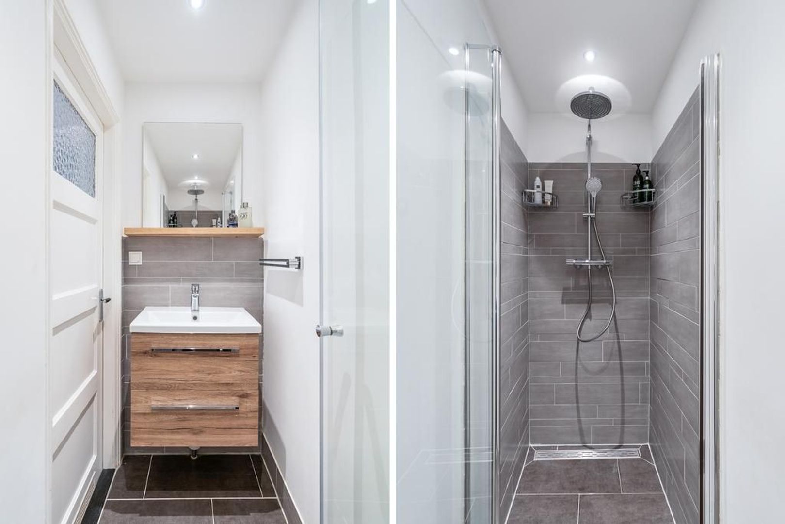 - Voorzijde voorzien van kunststof kozijnen met dubbel glas