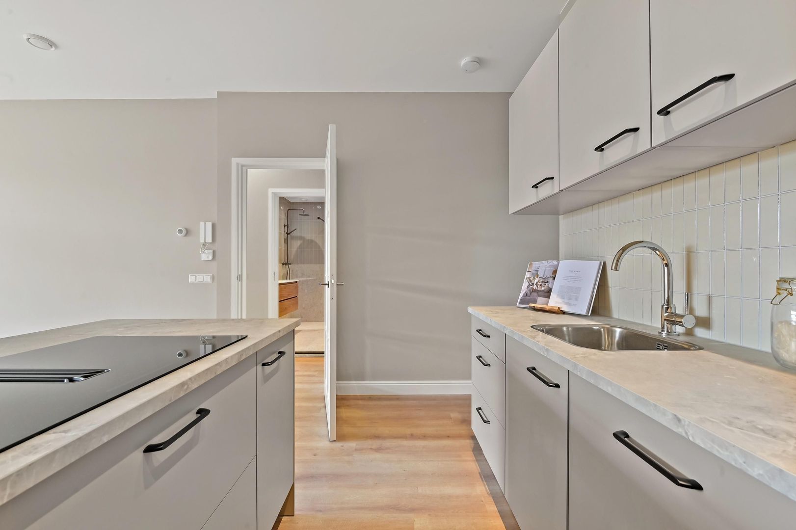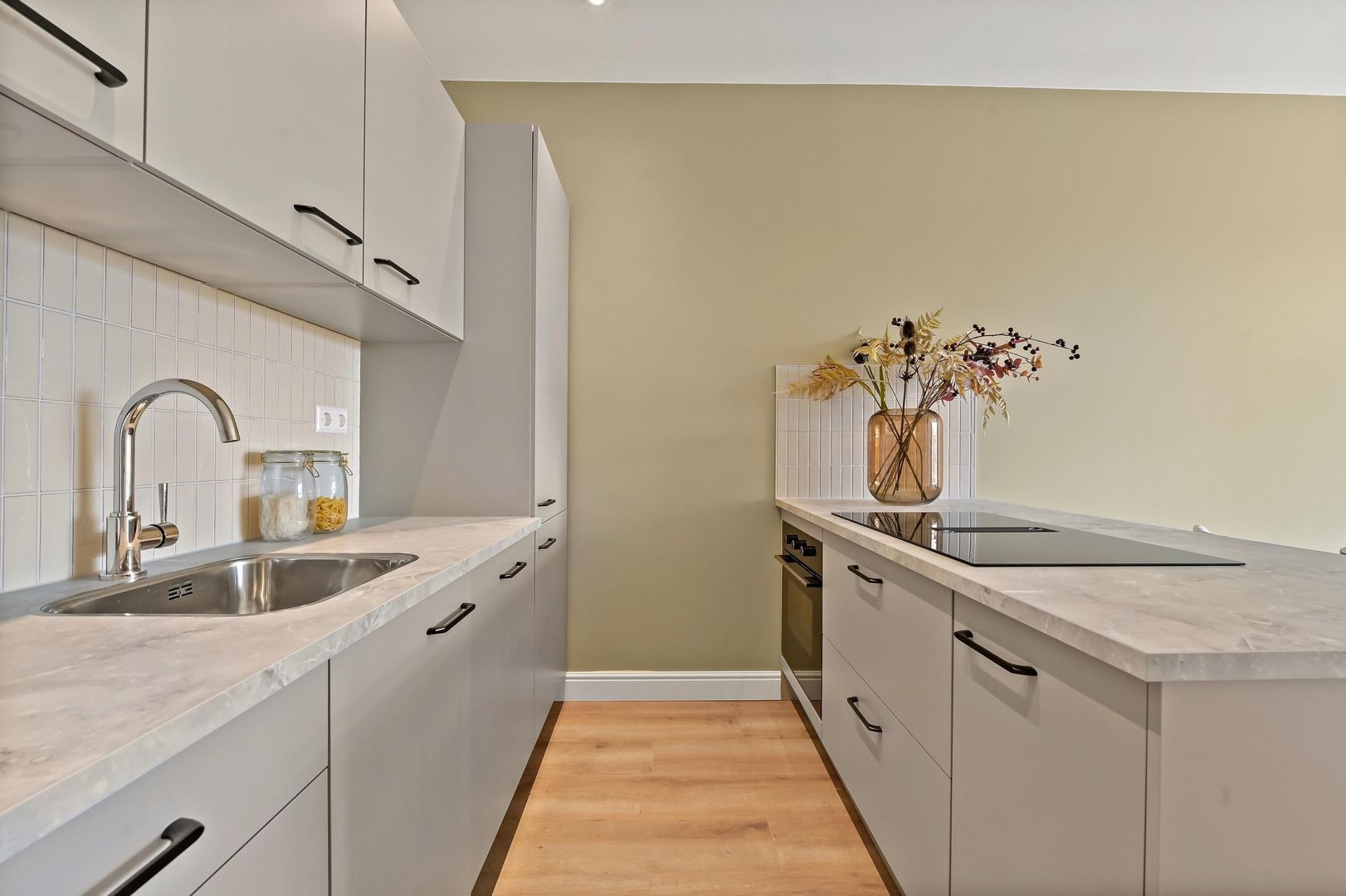 De ruime woon-/eetkamer van ca. 3.37x8.97 is voorzien van grote raampartijen die zorgen voor veel natuurlijk licht. Aansluitend bevindt zich de open keuken, uitgerust met een inductiekookplaat, afzuigkap, combi-oven, koelkast, vriezer en vaatwasser.