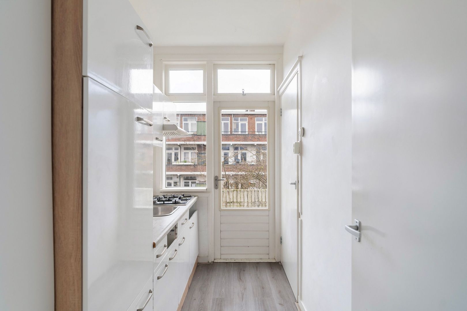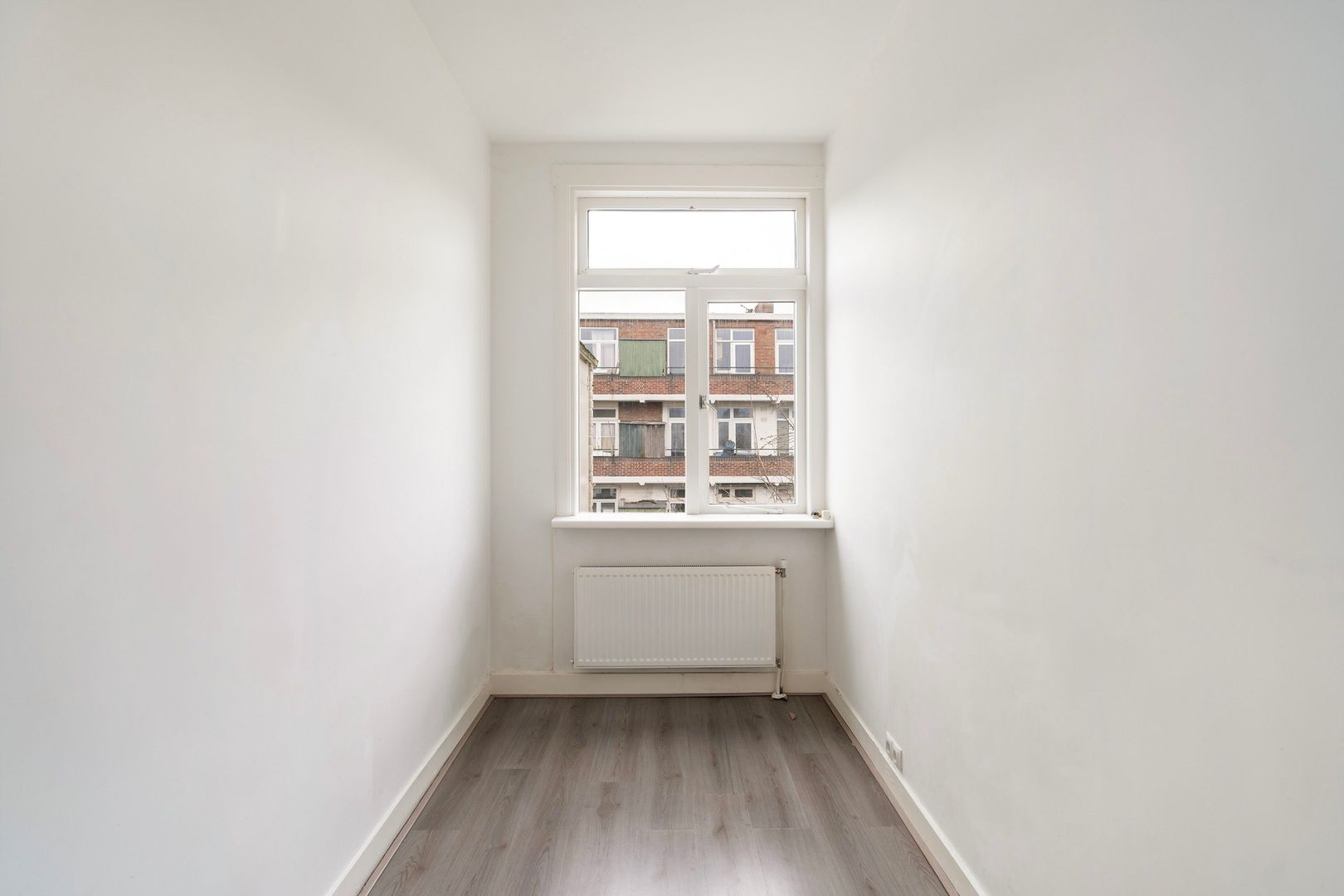 Overloop met toegang tot de verschillende vertrekken. De lichte woonkamer van ca. 5.98 x 3.33 m aan de voorzijde heeft een charmante uitstraling dankzij de erker en biedt ruimte voor een royale zithoek. Aan de achterzijde bevindt zich een ruime slaapkamer van ca. 4.35 x 1.91 m met toegang naar het balkon op het zuidoosten. Tweede slaapkamer aan de achterzijde ca.3.96x1.79 met toegang tot het balkonDe gesloten keuken van ca. 3.19 x 1.91 m geeft eveneens toegang tot het balkon.