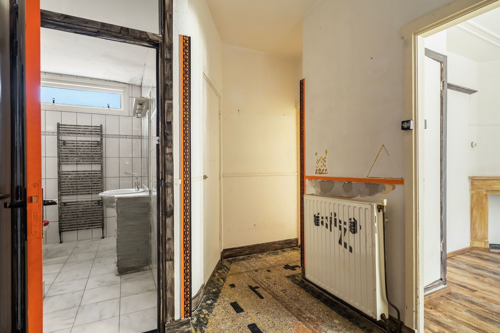 Woningentree; hal met een vaste kast voorzien van de wasmachine aansluiting; woonkamer met een vaste kast en openslaande deuren naar de achtertuin; open keuken voorzien van een gaskookplaat, afzuigkap, koel-vriescombinatie en toegang tot de achtertuin; 1e ruime slaapkamer aan de voorzijde met een vaste kast; 2e slaapkamer aan de voorzijde; eenvoudige ruime badkamer met douche, wastafelmeubel en toilet; royale ruim 13 meter diepe achtertuin met een grote vrijstaande berging;