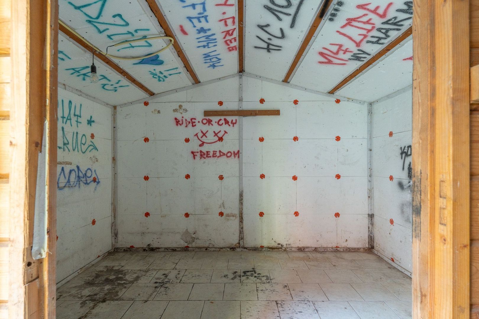 - Achterzijde voorzien van houten kozijnen met dubbel glas