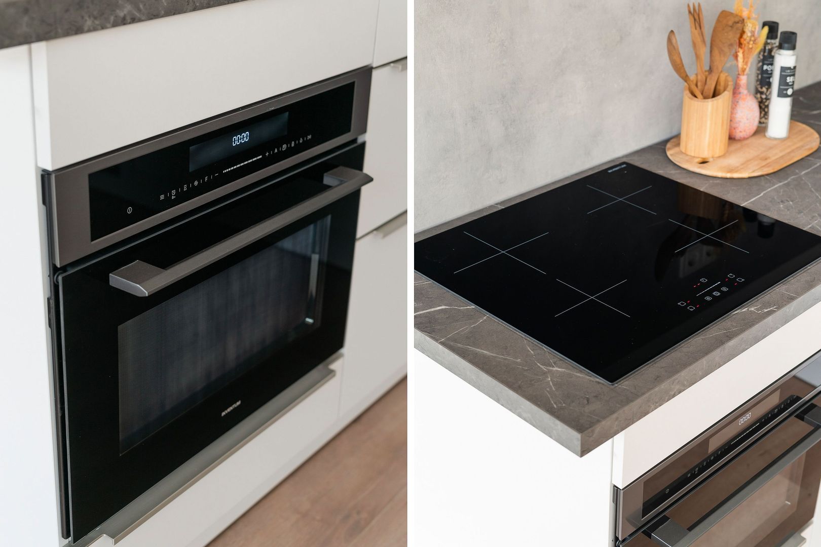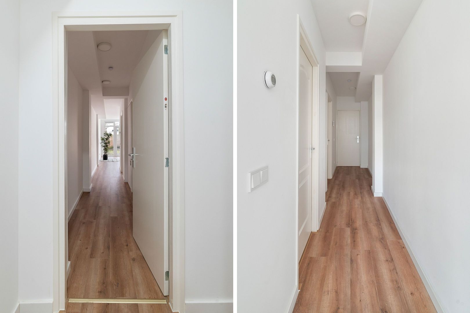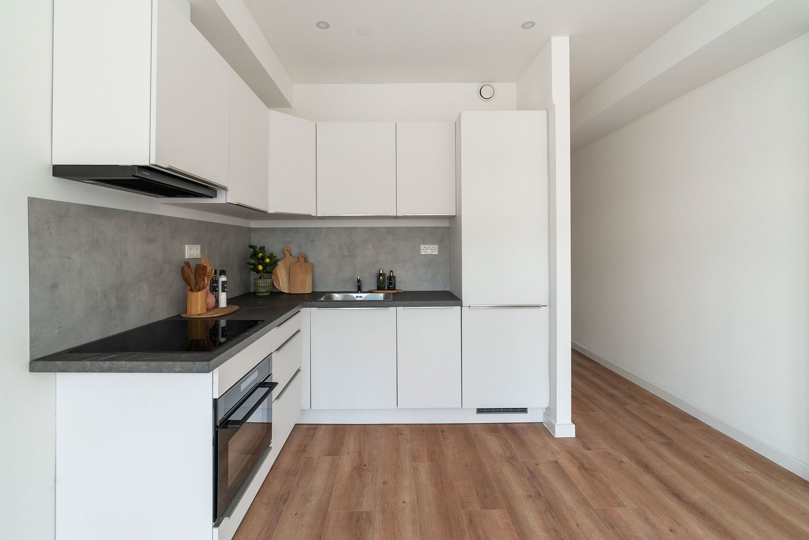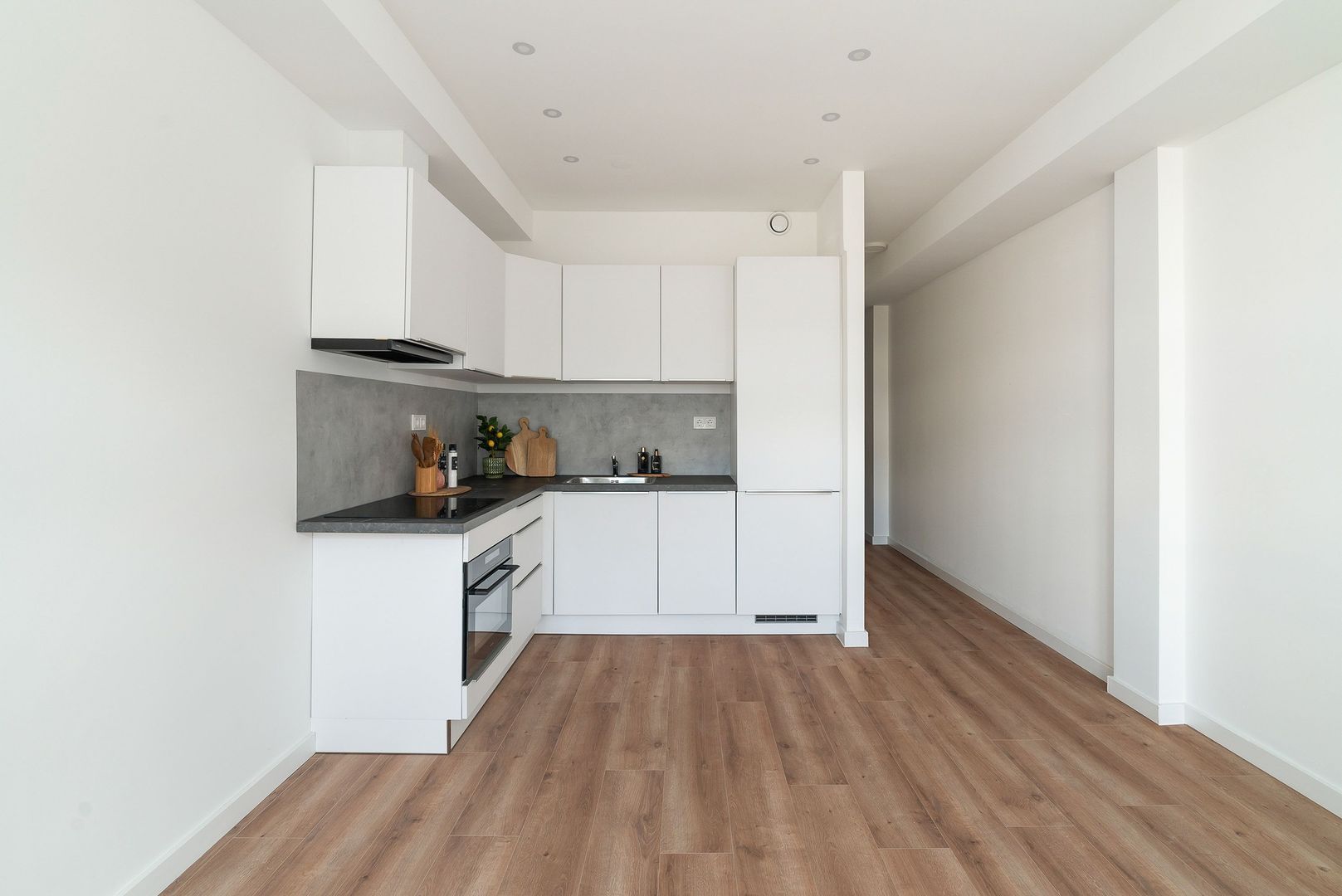 Entree appartement, woon-/eetkamer ca. 5.54x3.53 met zeer veel daglicht door de grote raampartijen voorzien van open keuken voorzien van een inductiekookplaat , afzuigkap, combi-oven, koelkast, vriezer en vaatwasser en toegang tot de ruime achtertuin; luxe badkamer ca. 1.81x1.90 met toilet, inloopdouche en wastafelmeubel; ruime slaapkamer ca.2.16x2.58 met ruime kast met opstelplaats wasmachine/droger opstelling.
