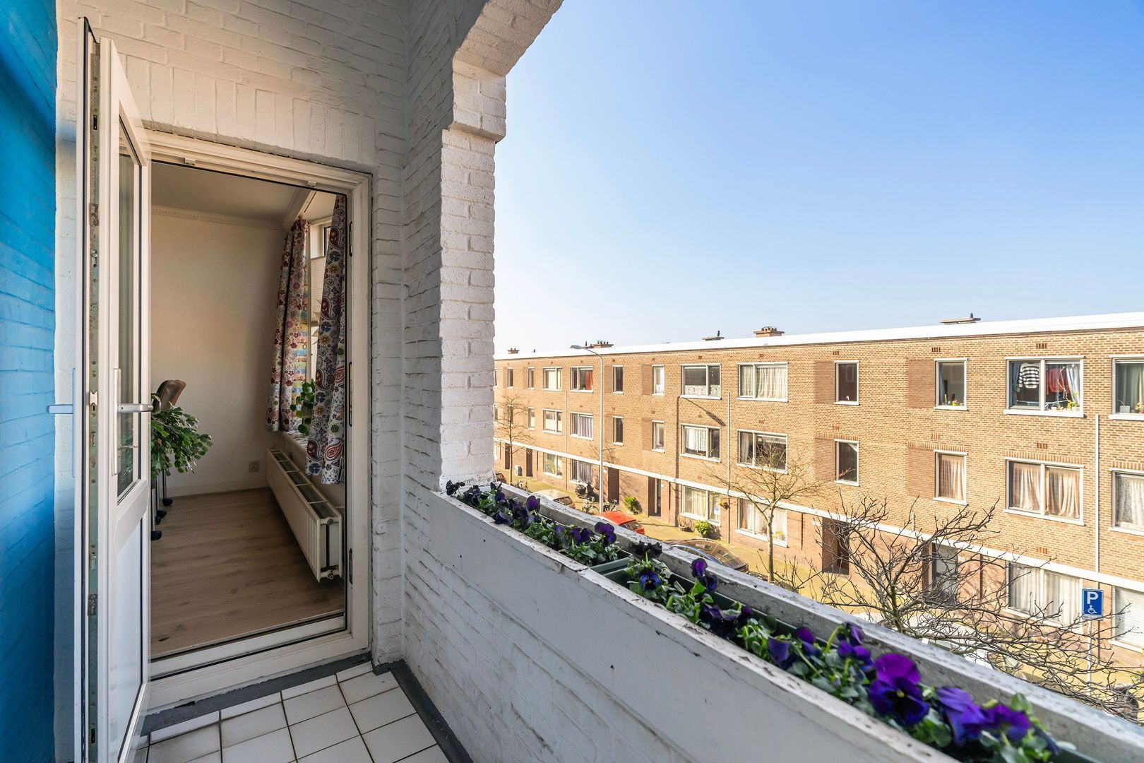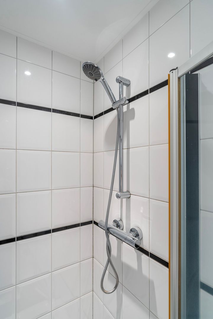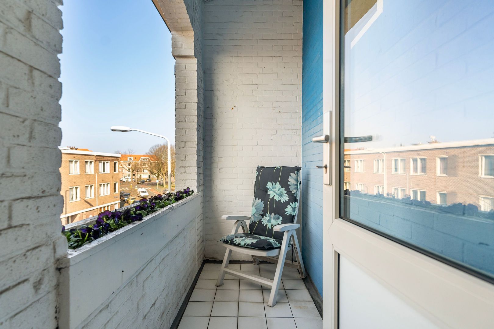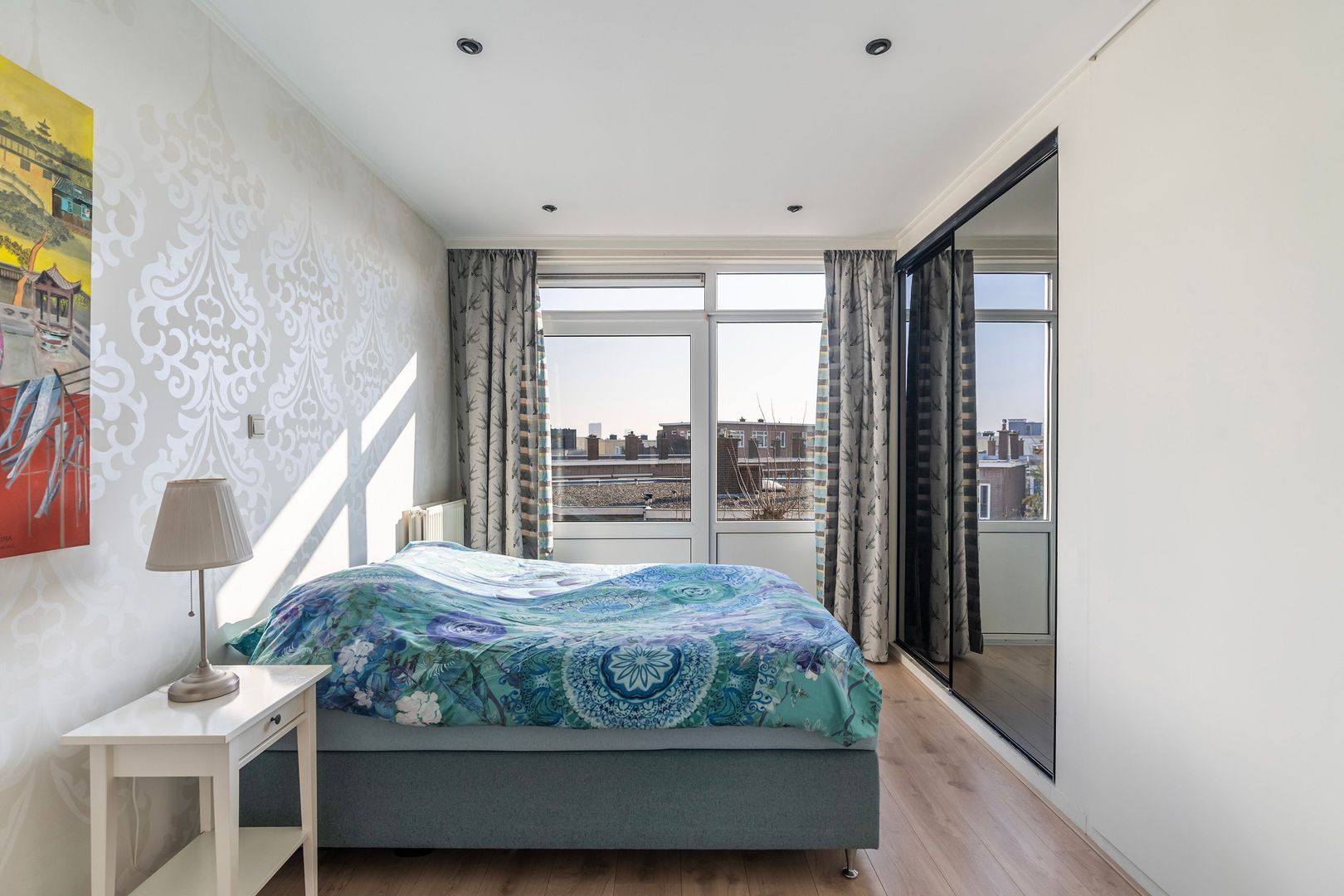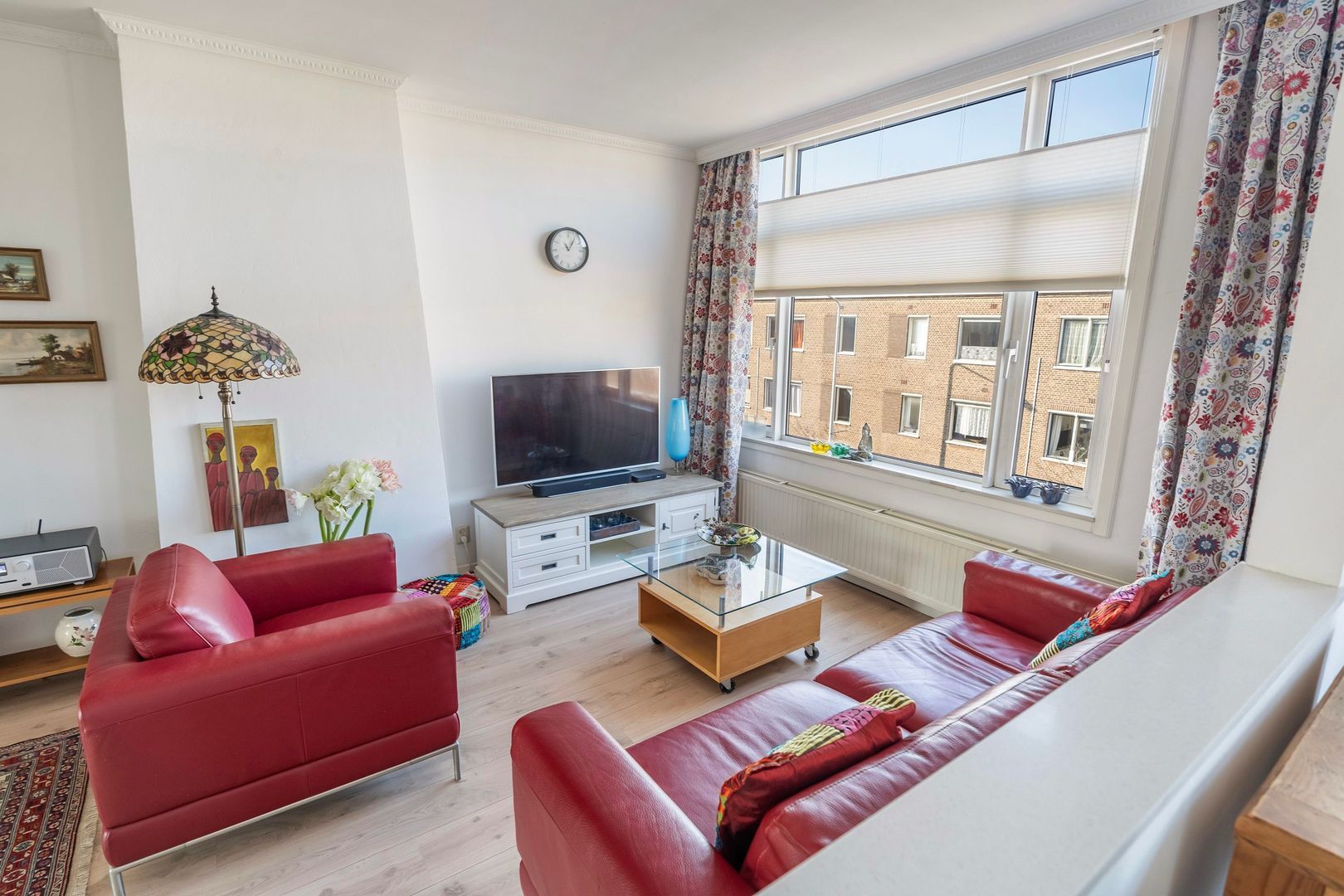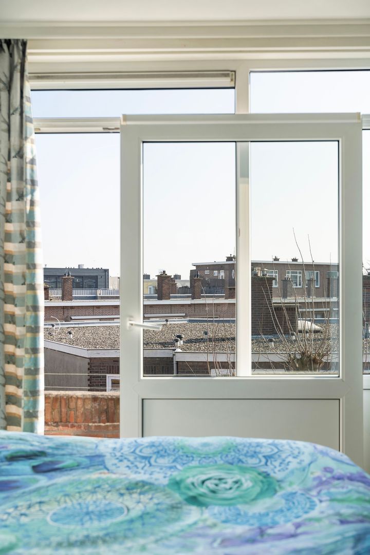 De zeer lichte woon-/eetkamer is gelegen over de volle breedte van de woning aan de voorzijde en heeft hierdoor veel zon- en lichtinval; doorloop naar de eetkamer met toegang tot het zonnige voorbalkon op het zuidwesten georiënteerd. Royale keuken aan de achterzijde in een L-opstelling met dubbele spoelbak, witte en RVS kastfronten, 5-pits gaskookplaat, vlakscherm afzuigkap; vanuit de keuken is er ook toegang tot het achterbalkon met ochtendzon. Aan de achterzijde is de hoofdslaapkamer gelegen met een vaste kasten. Via een kunststof schuifpui toegang tot het royale achterbalkon met ochtendzon; 2e slaapkamer aan de achterzijde; het toilet is ruim van afmeting met duoblok en fonteintje; moderne badkamer voorzien van douche en wastafel, alles in zwart-witte kleurstelling.