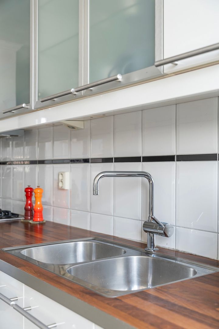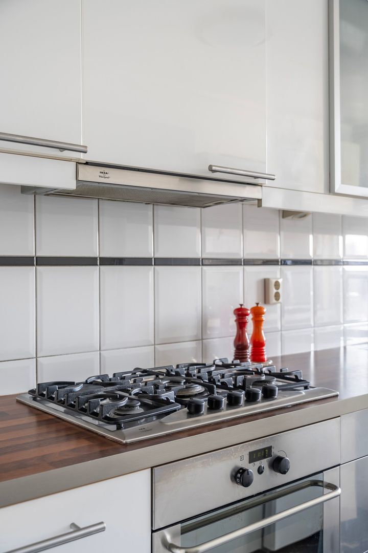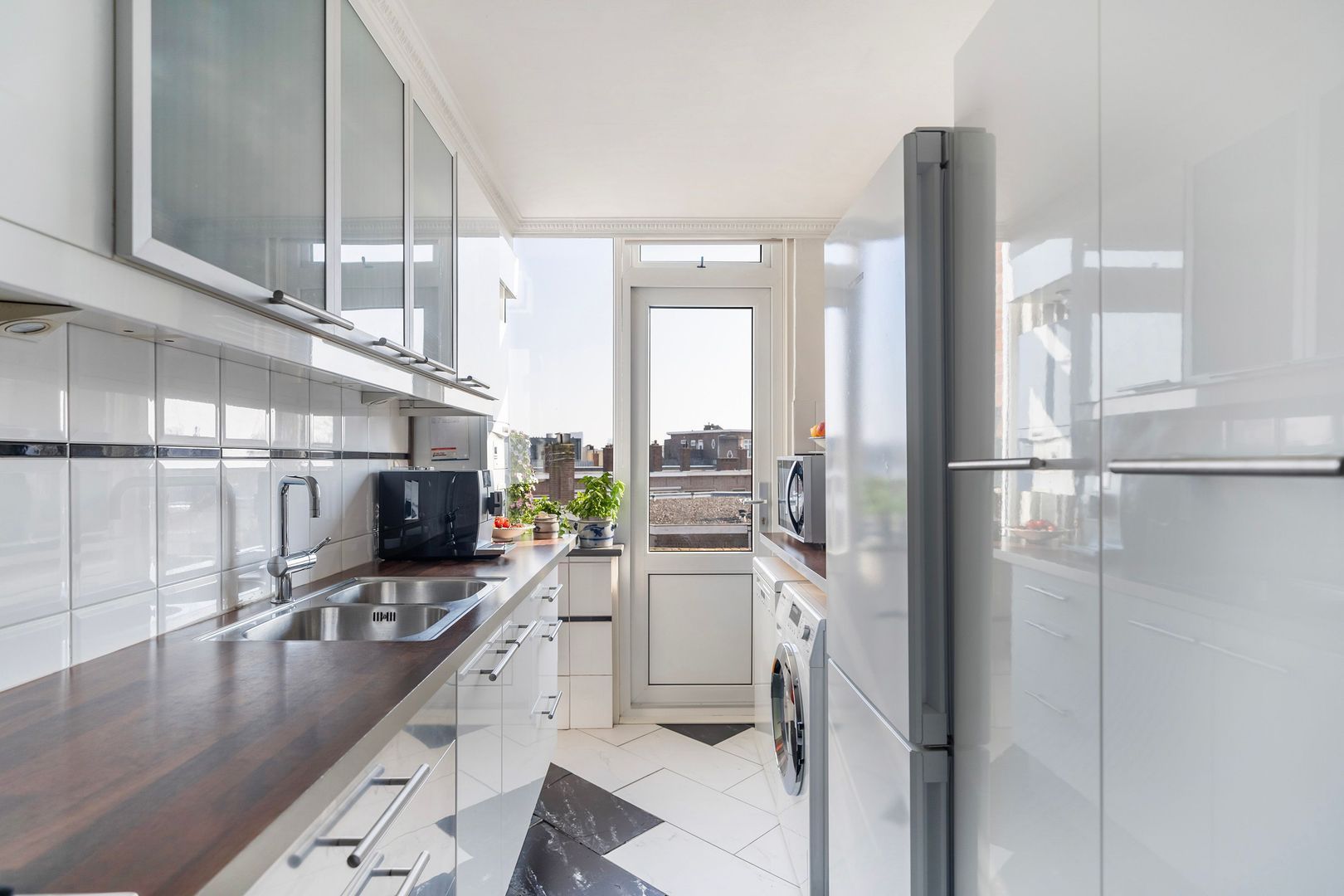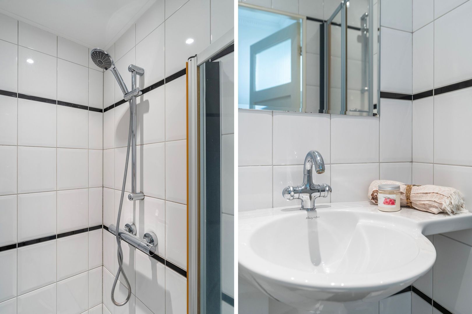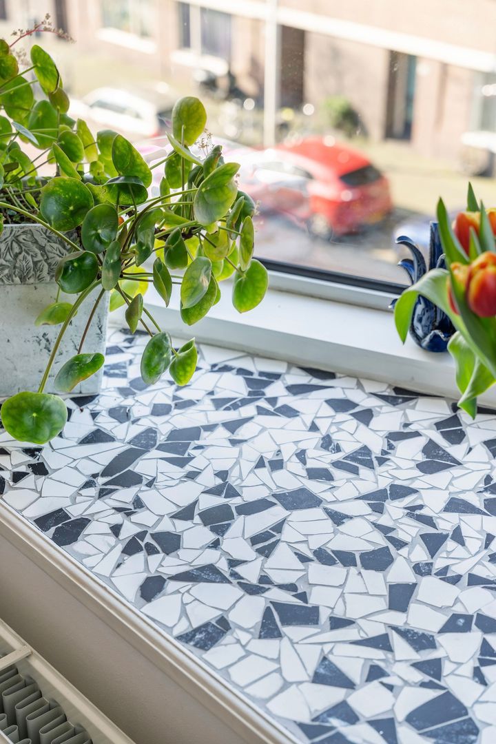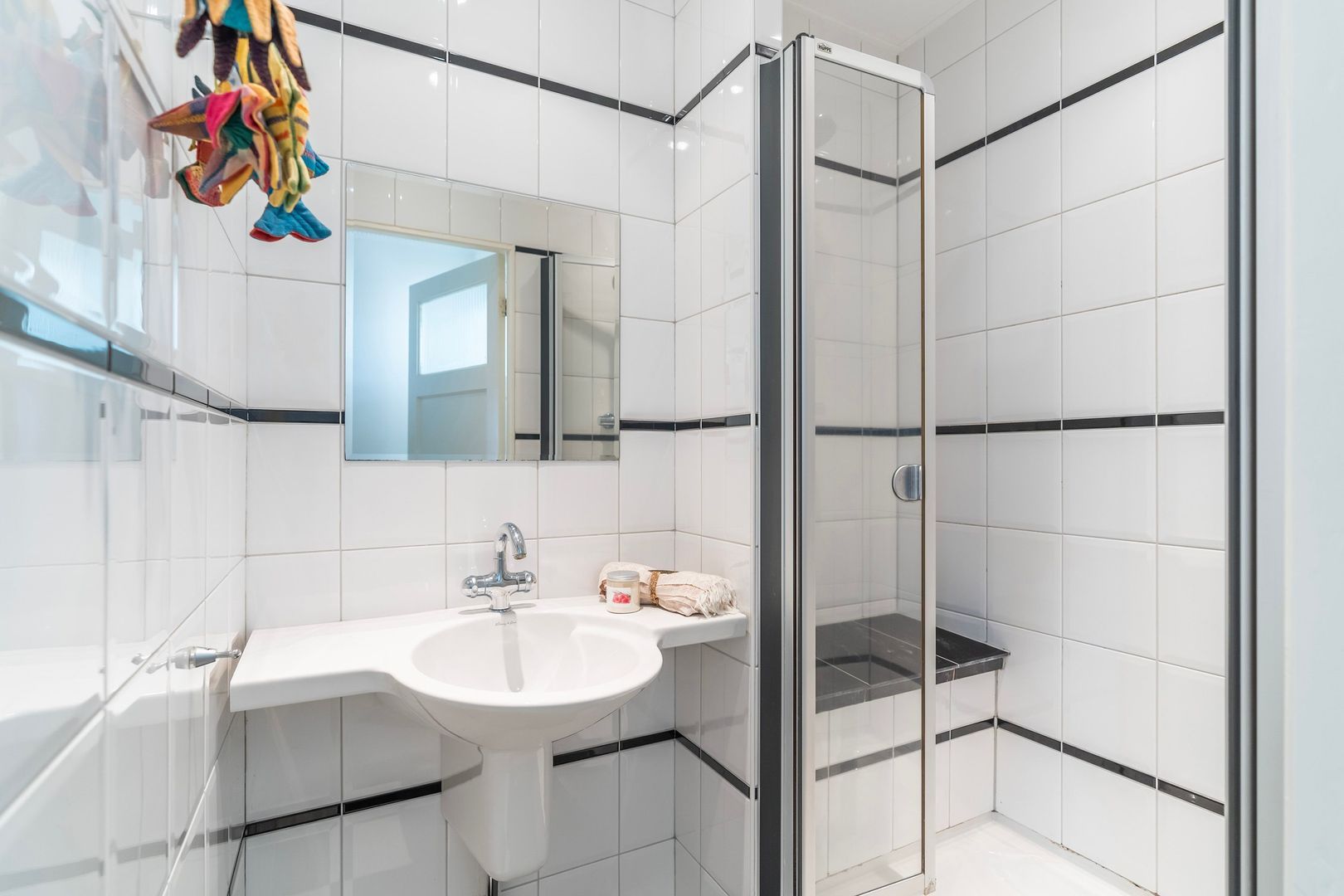 De zeer lichte woon-/eetkamer is gelegen over de volle breedte van de woning aan de voorzijde en heeft hierdoor veel zon- en lichtinval; doorloop naar de eetkamer met toegang tot het zonnige voorbalkon op het zuidwesten georiënteerd. Royale keuken aan de achterzijde in een L-opstelling met dubbele spoelbak, witte en RVS kastfronten, 5-pits gaskookplaat, vlakscherm afzuigkap; vanuit de keuken is er ook toegang tot het achterbalkon met ochtendzon. Aan de achterzijde is de hoofdslaapkamer gelegen met een vaste kasten. Via een kunststof schuifpui toegang tot het royale achterbalkon met ochtendzon; 2e slaapkamer aan de achterzijde; het toilet is ruim van afmeting met duoblok en fonteintje; moderne badkamer voorzien van douche en wastafel, alles in zwart-witte kleurstelling.