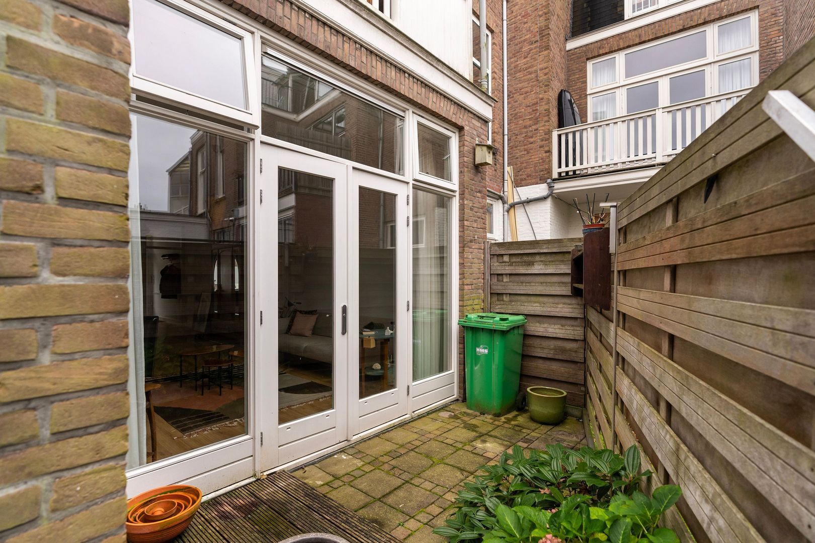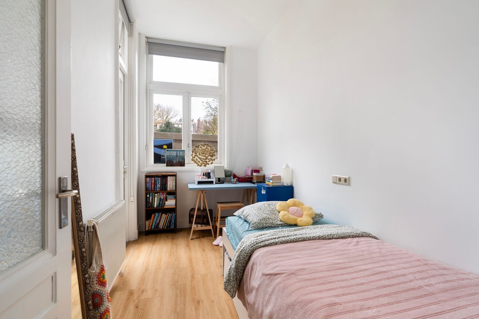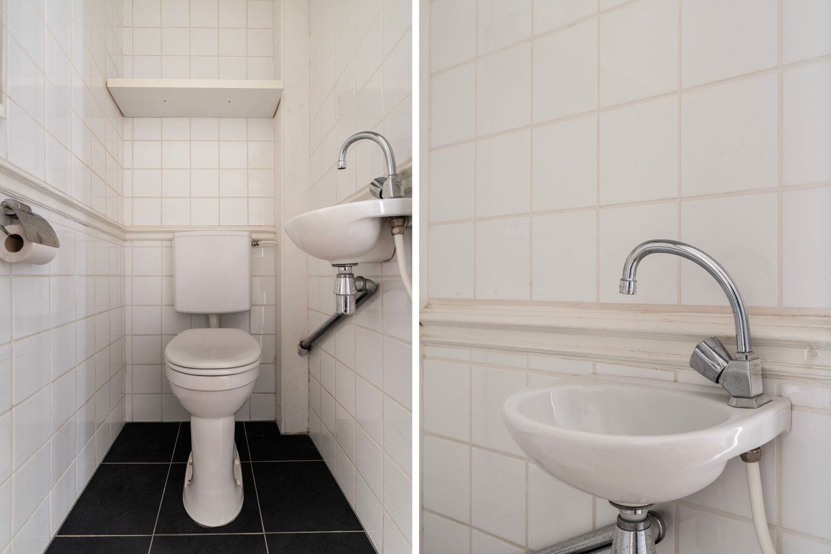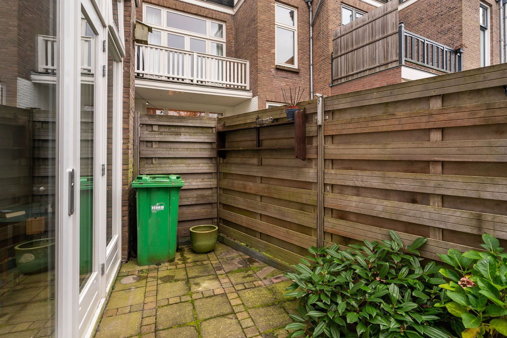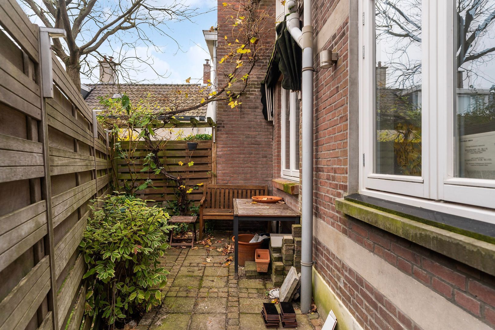 Entree aan de straatzijde. Halletje. De riante woonkamer is ca 12 meter diep en heeft een breedte van meer dan 4 meter en heeft openslaande deuren naar de achtertuin. Aan de voorzijde is de open keuken (2024) geïnstalleerd met een groot kook-werkeiland met apparatuur. Het grote raamkozijn aan de voorzijde geeft veel licht naar binnen. Vanuit de woonkamer toegang tot de gang met bergruimten, toilet, en trap naar het souterrain. Via de gang toegang tot 2 slaapkamers aan de achterzijde ca. 3.78x2.24 en ca. 3.78x2.11. Moderne badkamer (2024) met retro tegelwerk, inloopdouche en wastafel. Souterrain ca. 3.41x3.75 met koekoek voor lichtinval en nieuw kozijn met dubbel glas. Smalle beschutte achtertuin/plaats op het Noord-Westen over de volle breedte ca. 9x1.20/3.
