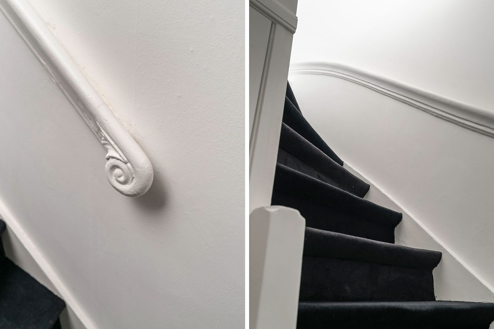 Open portiek, entree met meterkast en trapopgang naar de woonverdieping.