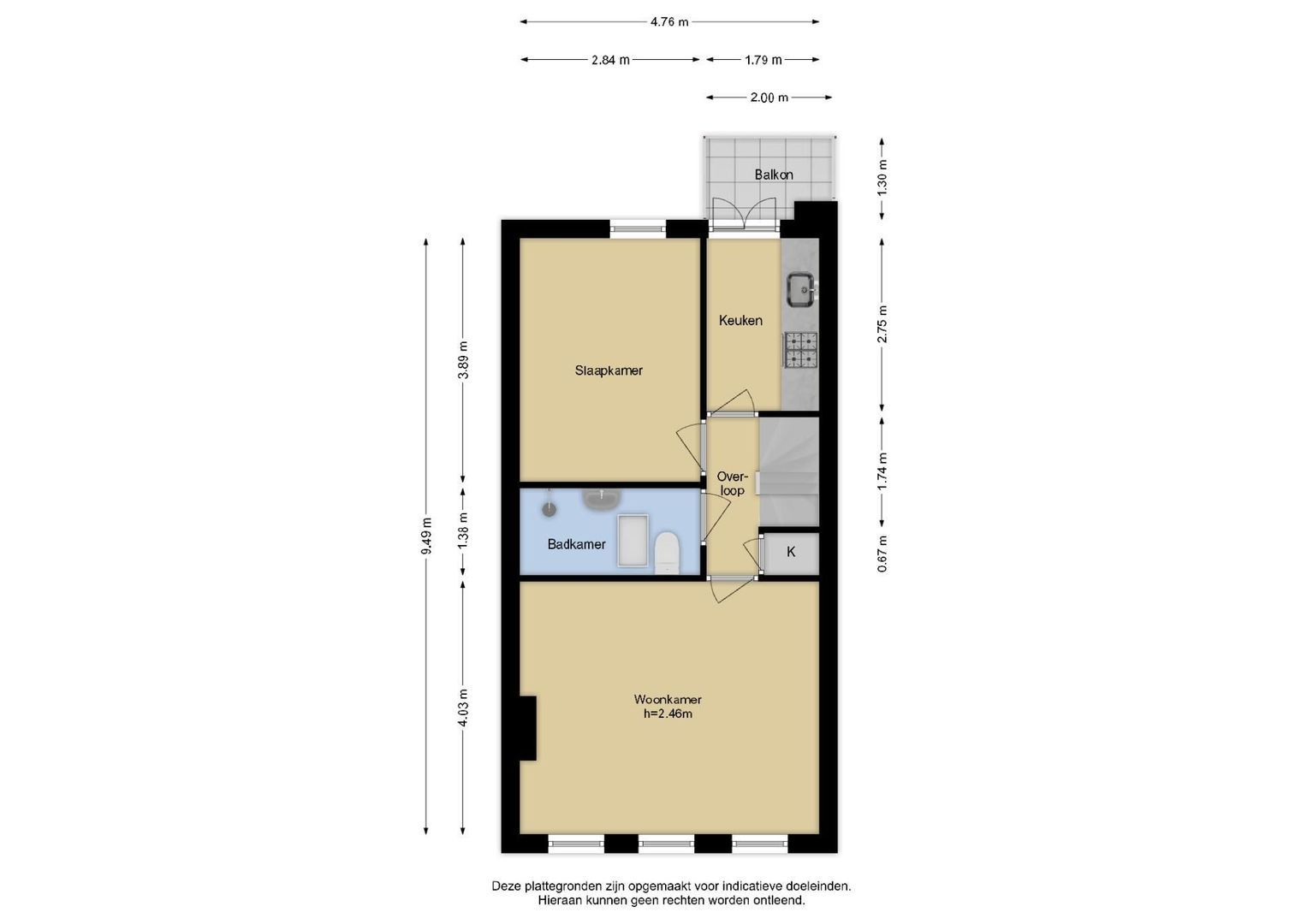 De slaapkamer (ca. 2.84 m x 3.89 m) is ruim opgezet en biedt voldoende plek voor een tweepersoonsbed en kastruimte. De keuken (ca. 2.75 m x 1.79 m) is praktisch ingericht en beschikt over voldoende werk- en opbergruimte. Aangrenzend bevindt zich het balkon (ca. 2.00 m x 1.29 m), waar je heerlijk kunt genieten van de buitenlucht.
