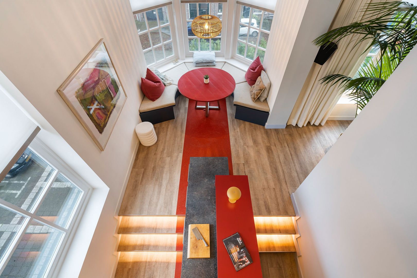 Regentessekwartier. Als je vindt dat je uniek bent en daardoor natuurlijk uniek wilt wonen dan is dit echt iets voor jou. In een historisch voormalig schoolgebouw ligt dit High-end Design loft appartement (ca 164m2) dat door een interieurarchitect ontworpen is en met een heerlijk terras en een eigen parkeerplaats op een afgesloten terrein. Deze moderne en sfeervolle woning heeft een speelse indeling met kleine niveauverschillen. Goede zichtlijnen naar alle richtingen van de living en naar buiten. De woning heeft een riante woonkamer met hoog plafond en grote raampartijen, een erker zithoek, speelse open keuken met eetbar, werk/slaapruimte, 2 slaapkamers en een badkamer. Dit bijzondere complex, de “Oude Burgerschool” (bouwjaar 1912) is in 2015 tot unieke appartementen verbouwd met elk zijn eigen karakter. Daarnaast heeft het complex een gemeenschappelijke tuin.