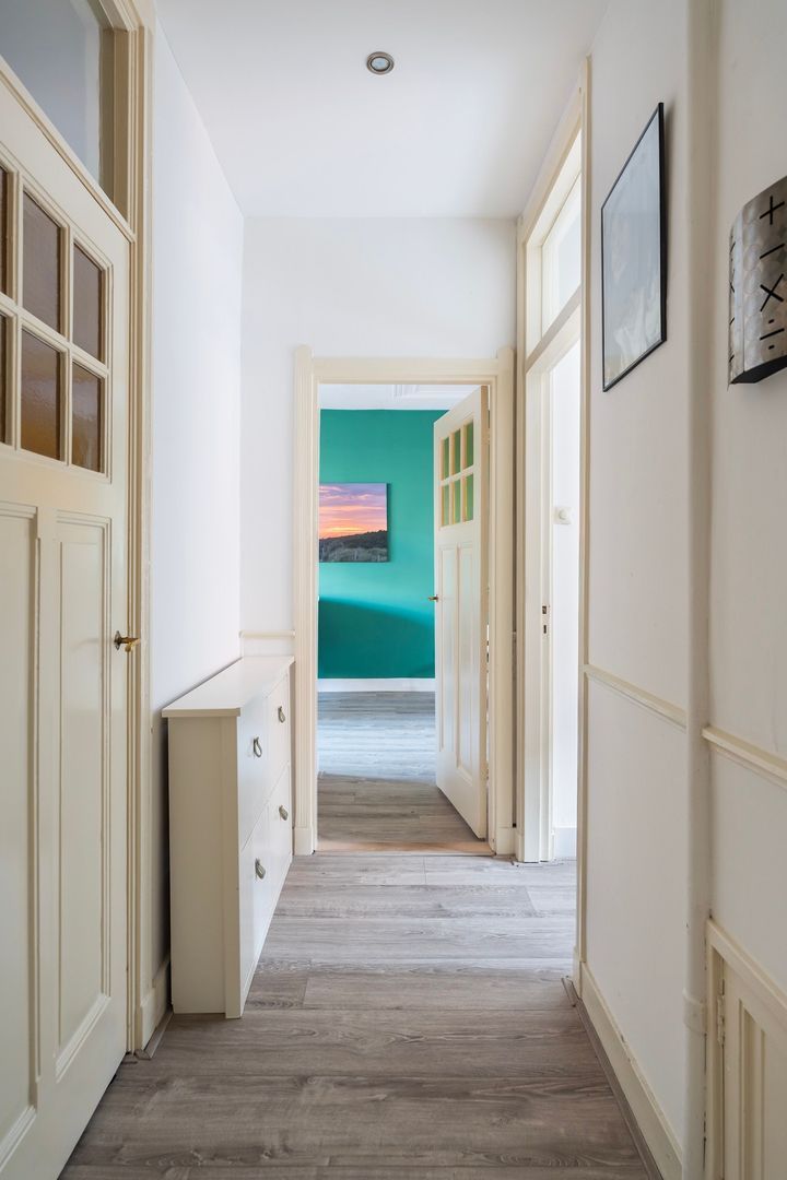 Bloemenbuurt. In een rustige autoluwe straat gelegen keurig onderhouden 3 kamer appartement (66m²) op de 1e etage met verdiept ruim balkon. Deze moderne woning is in 2021 grotendeels verbouwd en is o.a. voorzien van een royale woonkamer met houtkachel, airconditioning en een moderne open keuken met inbouwapparatuur, 2 slaapkamers en een moderne badkamer. Alle kozijnen zijn van kunststof met dubbel glas. Bovendien is de Vereniging van Eigenaren actief.