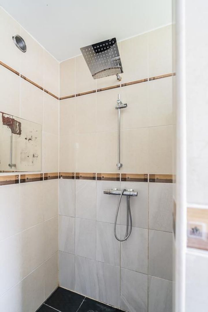 - Achterzijde voorzien van houten kozijnen met dubbel glas m.u.v. de keuken