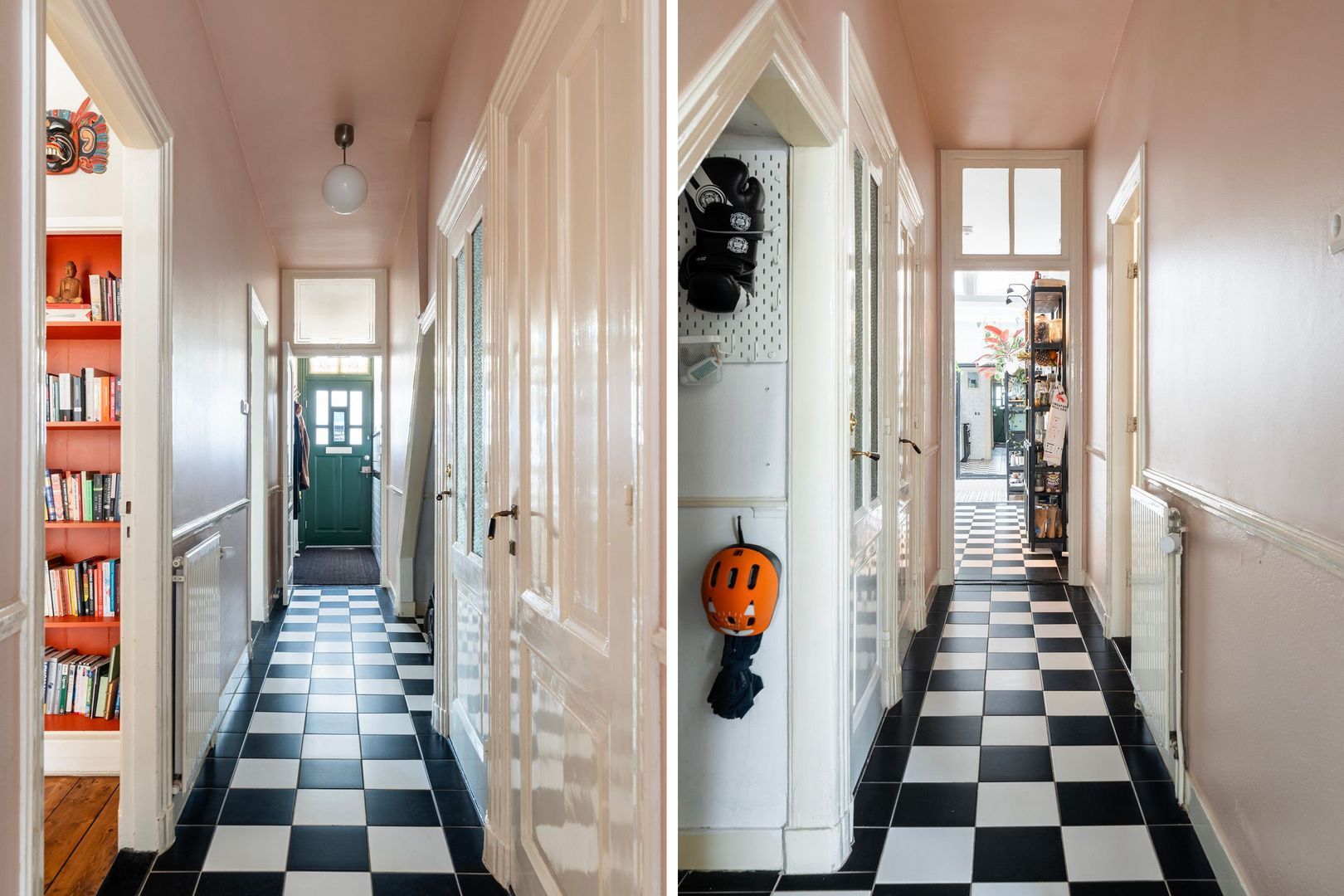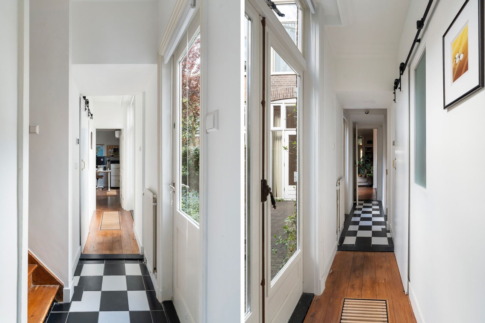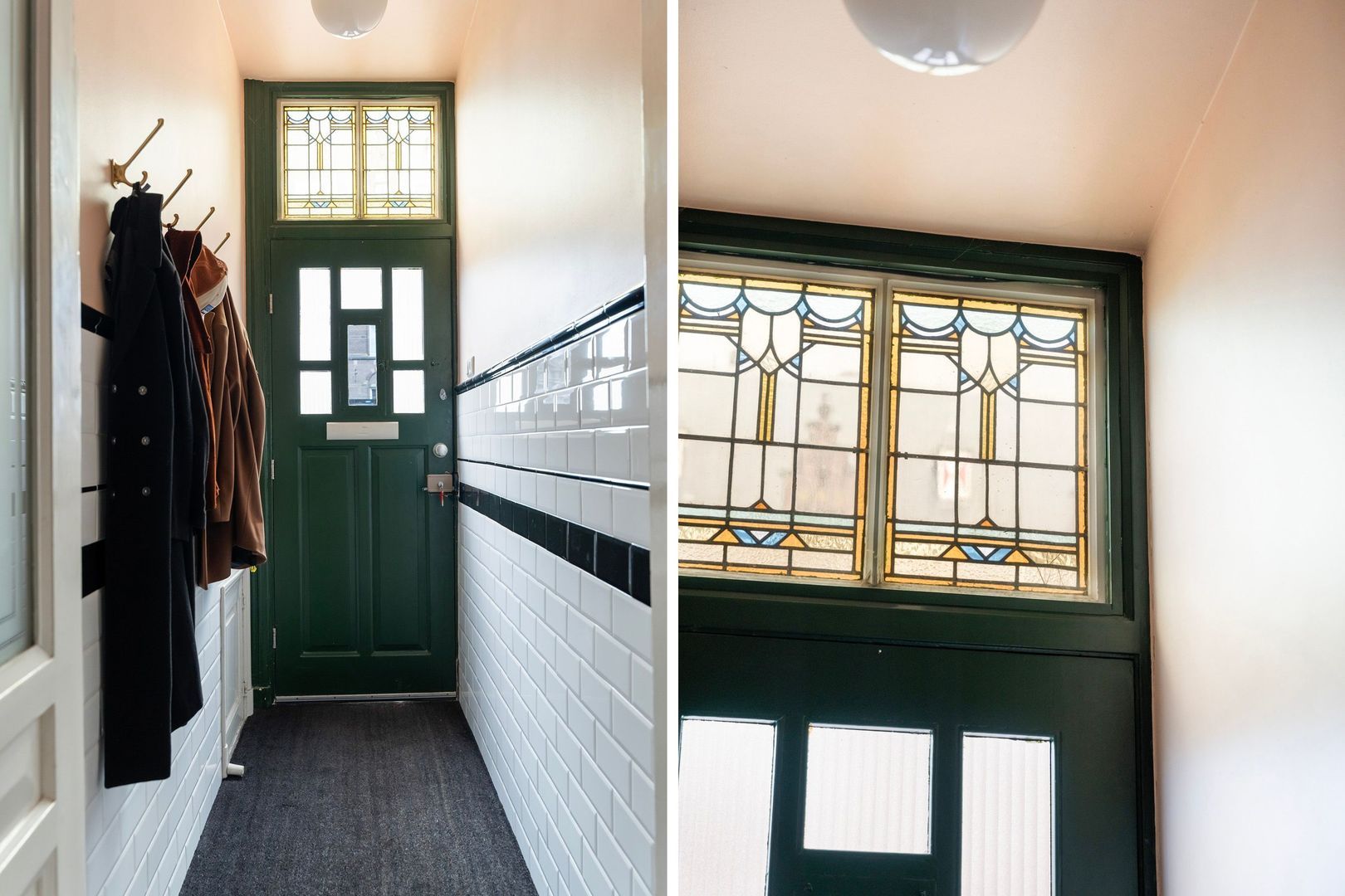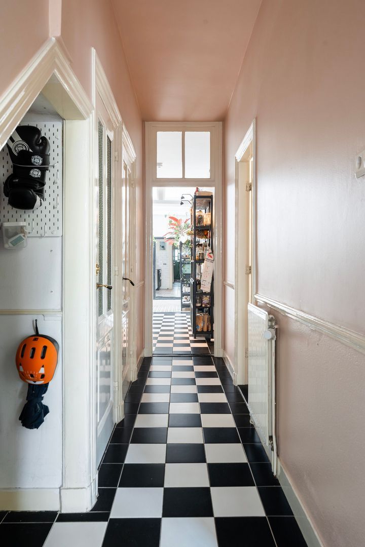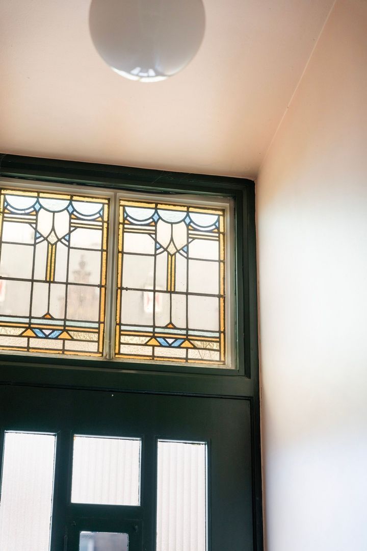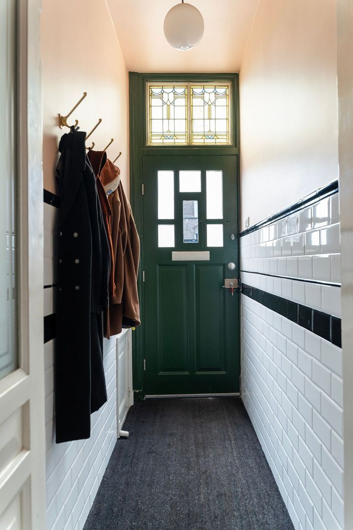 Entree straatniveau met eigen voordeur en ramen met glas in lood bovenlichten; tochtportaal; gang met ruime berging onder de trap van de bovenburen; modern toilet met fonteintje; toegang tot kelder met opstelplaats warmtepomp, boiler en wasmachineaansluiting.